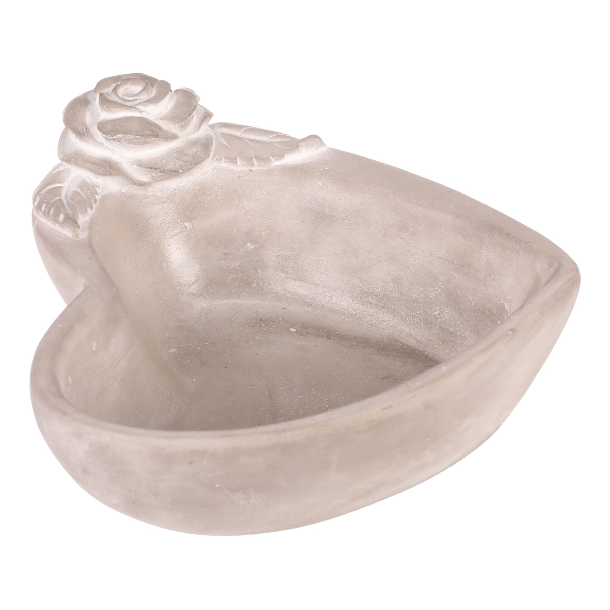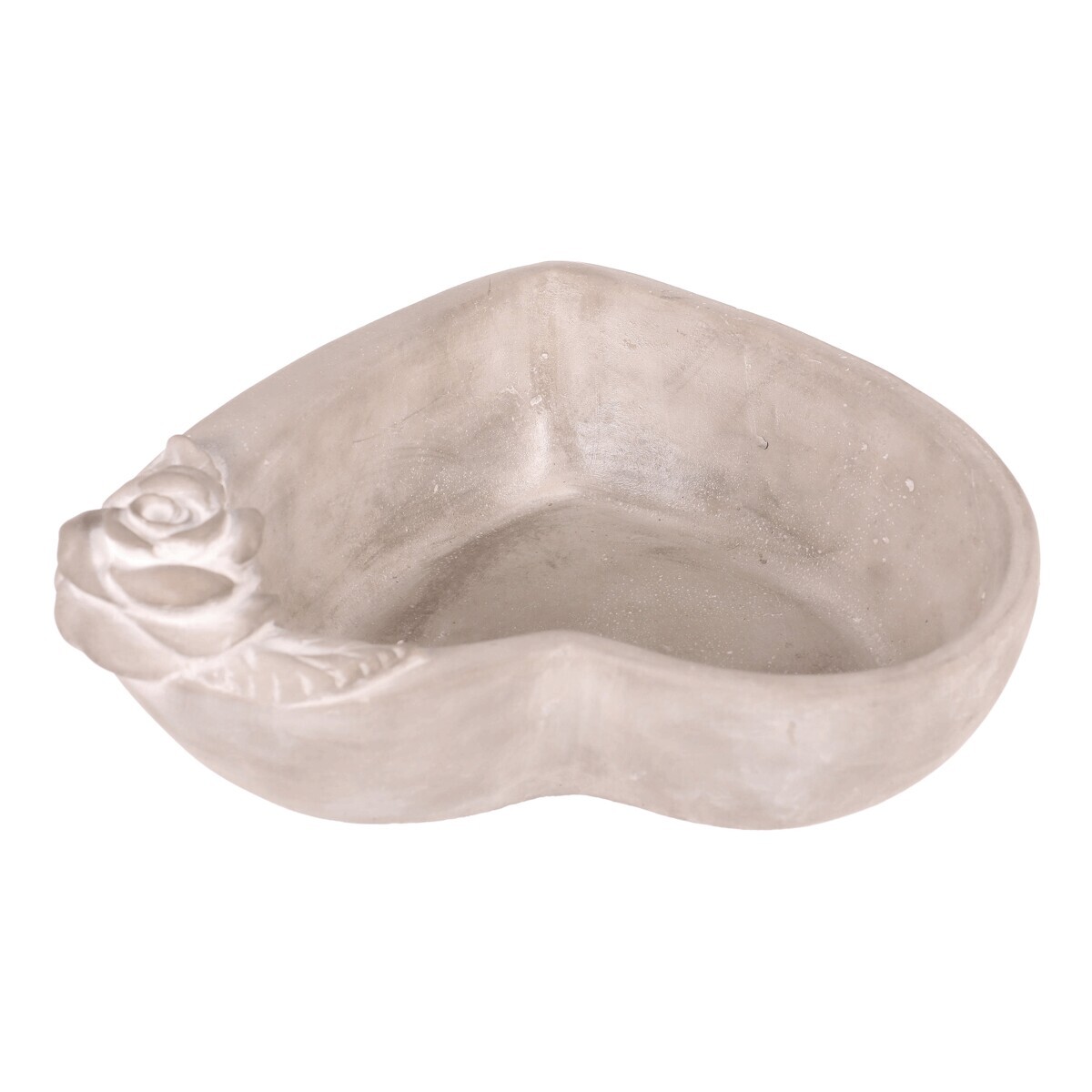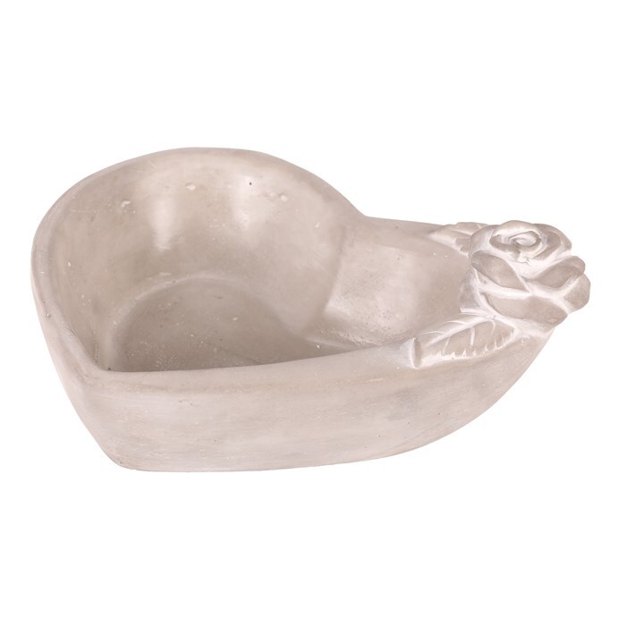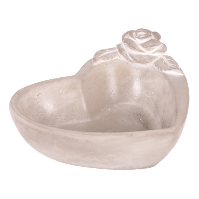Tento světle šedý obal na květiny ve tvaru srdce, zdobený reliéfem růže na boku, je navržen jako pietní dekorace. Vyrobený z odolného betonu, přináší klidnou a důstojnou atmosféru do vzpomínkových prostor a zahrad. Ideální pro umístění květin a jako symbol lásky a úcty.