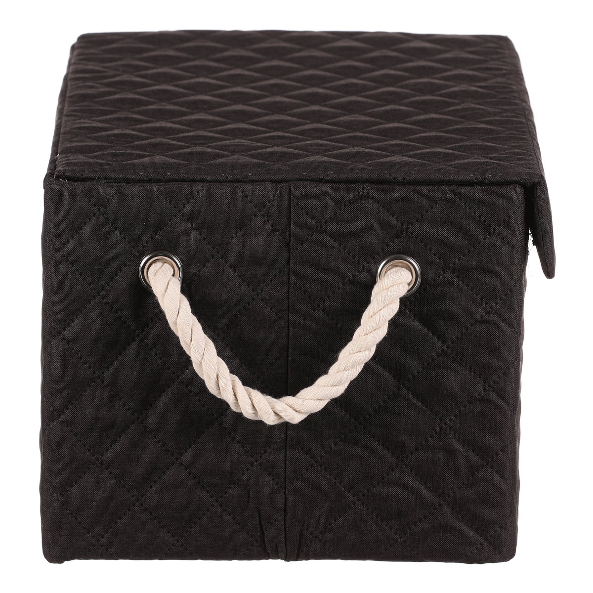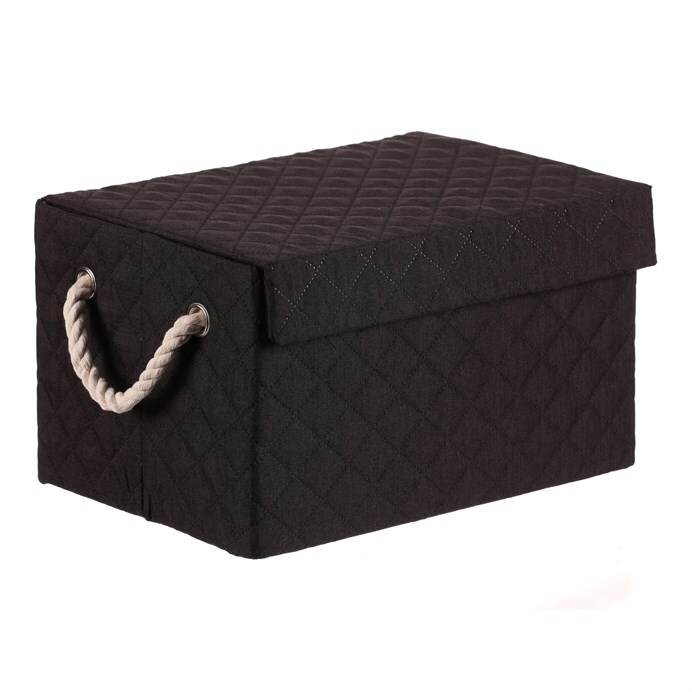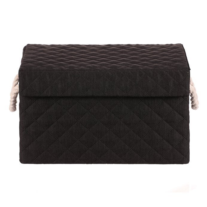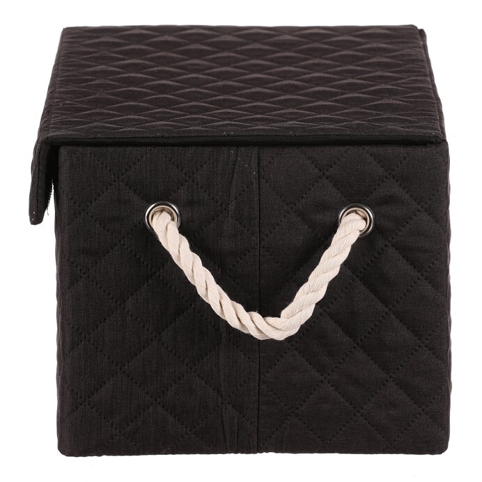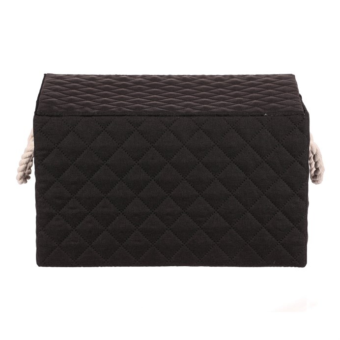 Látkový regálový koš v černé barvě, který lze snadno rozložit, je vybaven dvěma uchy z provázků a potažený hebkou látkou, bude skvělou volbou pro každou domácnost. Jedná se bezesporu o vysoce elegantní a praktické řešení pro uložení prádla nebo jiných věcí k uskladnění.
