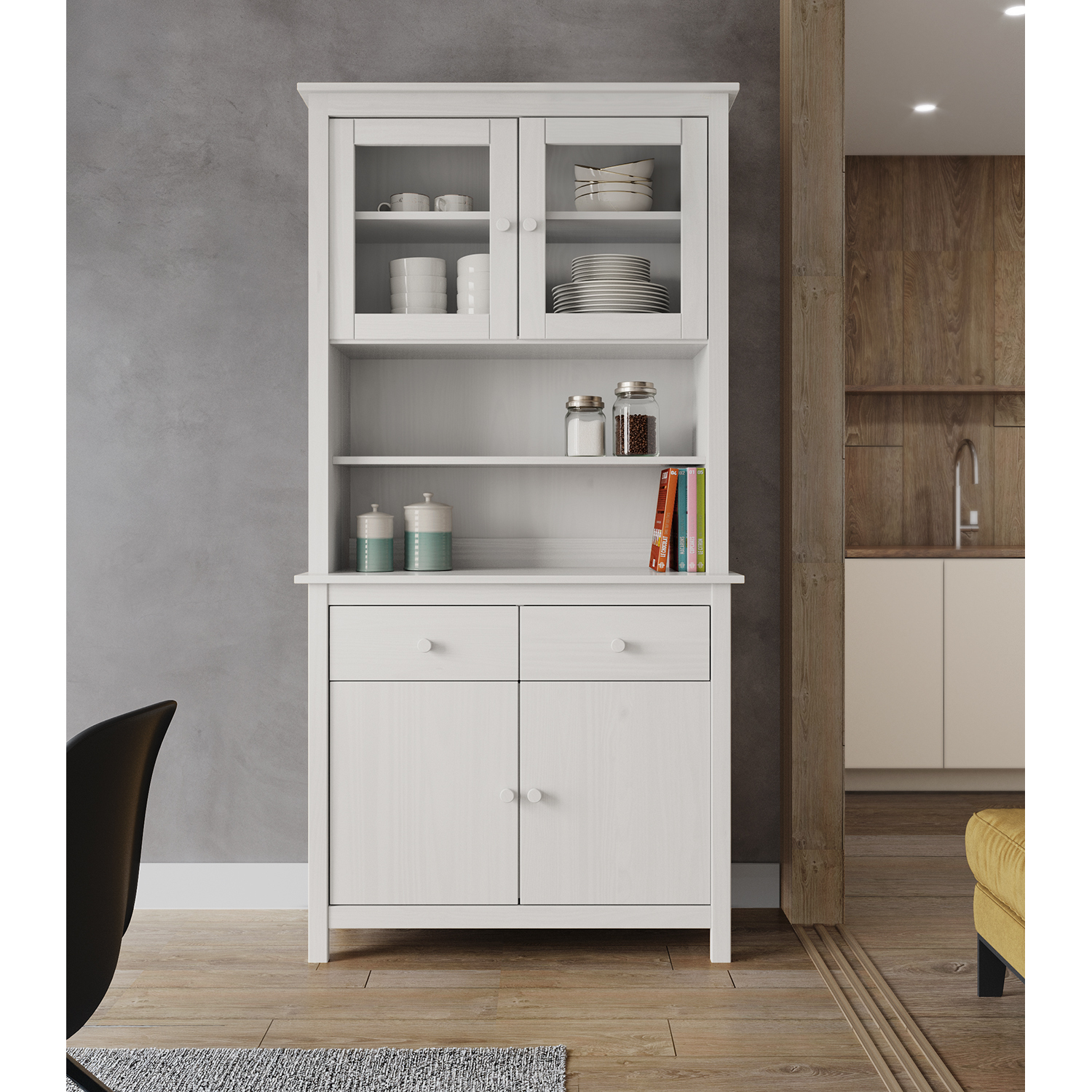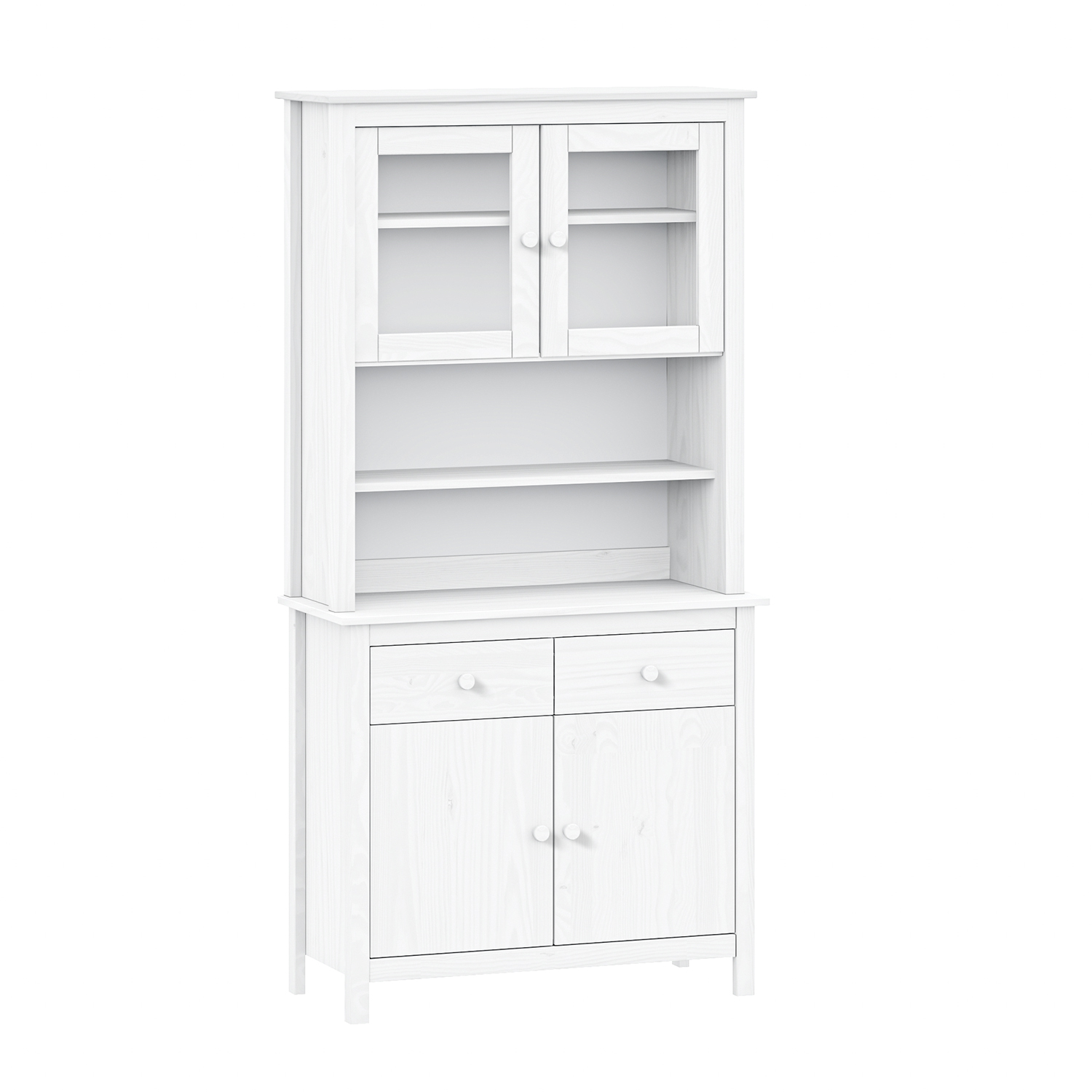 materiál masiv borovice, barevné provedení bílý lak 2 prosklené dveře, 1 police nástavec příborníku 8095B