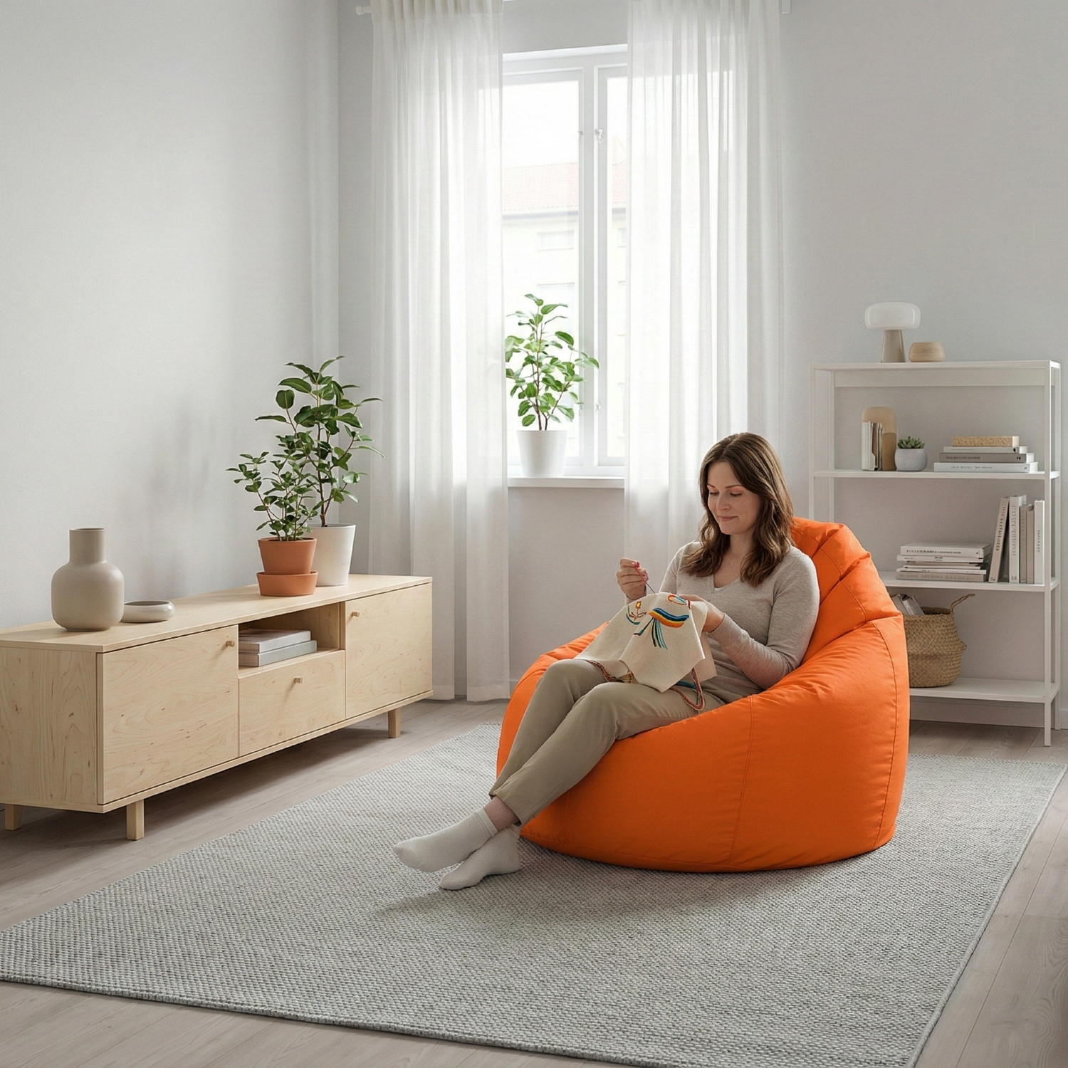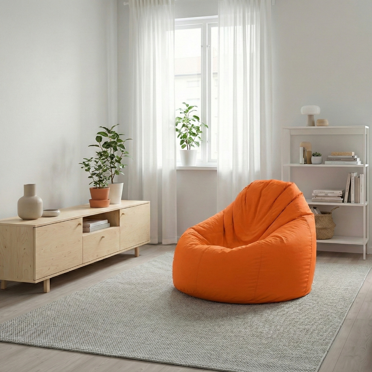 sedací vak ve tvaru hrušky potah nylon, barevné provedení oranžová plněný kuličkami z polystyrolu, obsah náplně 400 l zipový uzávěr, náplň možno doplňovat nebo odebírat cena včetně náplně