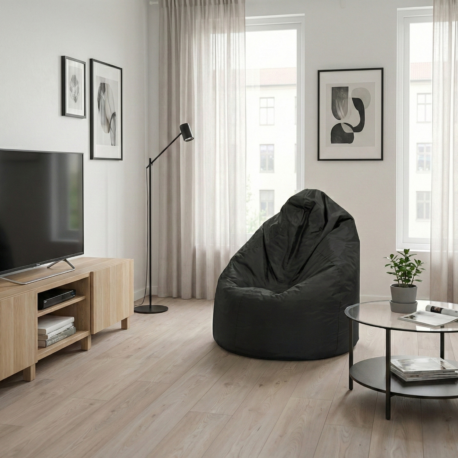 sedací vak ve tvaru hrušky potah nylon, barevné provedení černá plněný kuličkami z polystyrolu, obsah náplně 400 l zipový uzávěr, náplň možno doplňovat nebo odebírat cena včetně náplně