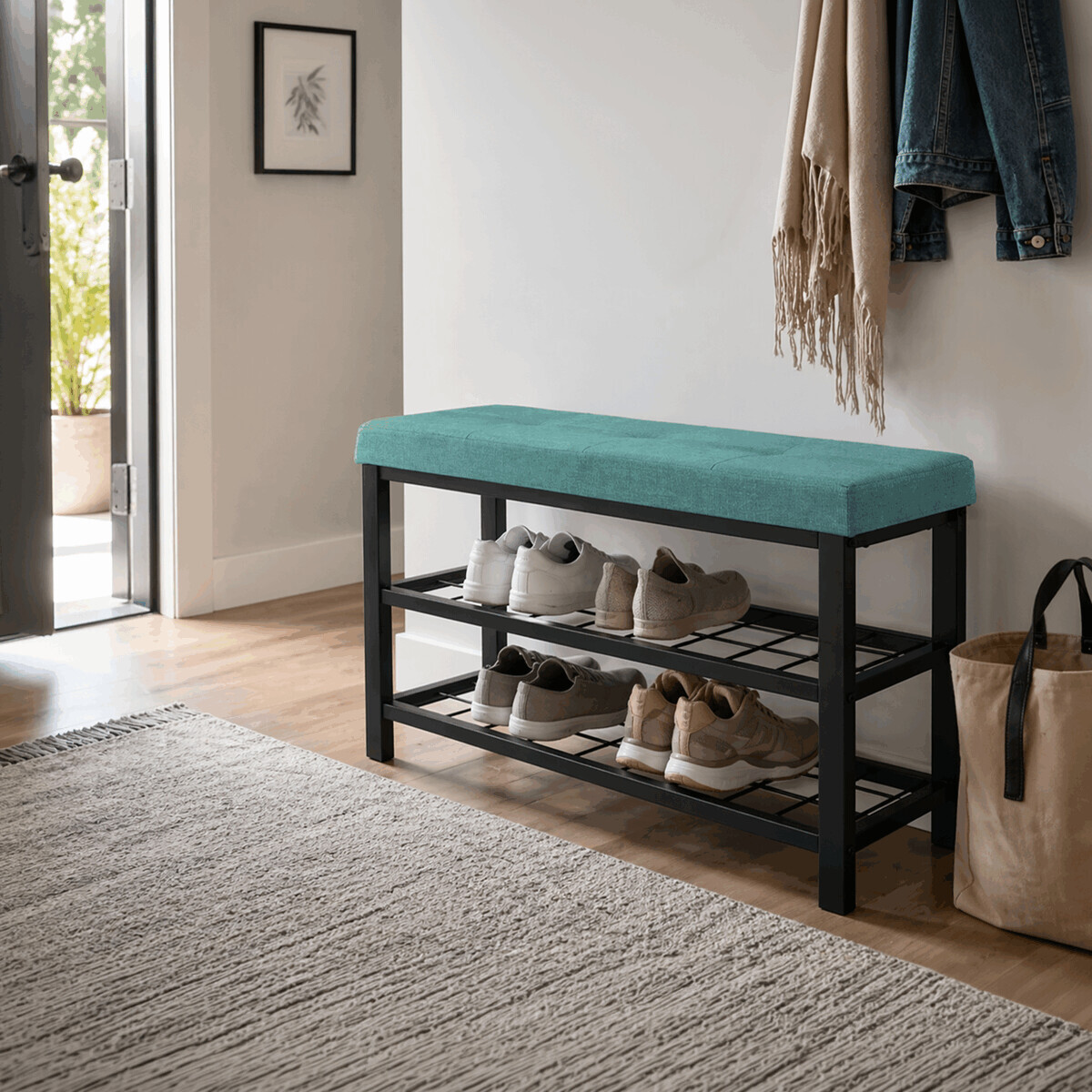 Stylový botník s lavicí značky Autronic přináší kombinaci pohodlí a praktičnosti. Zelené polstrované sedátko nabízí komfort při obouvání, zatímco dvě prostorné kovové police poskytují dostatek místa pro uskladnění obuvi. Stabilní konstrukce z kovu zajišťuje odolnost a dlouhou životnost. Elegantní design v neutrálních tónech snadno zapadne do moderních i tradičních interiérů. Tento botník je ideální volbou pro předsíně, kde pomůže udržet pořádek a zároveň přidá praktický sedací prvek.