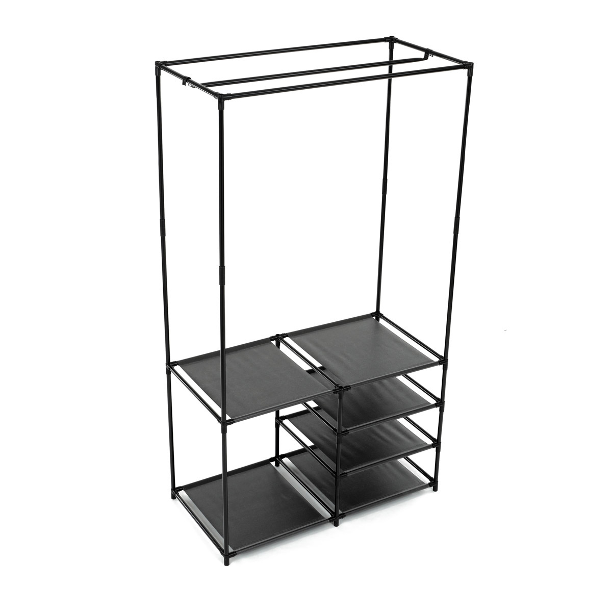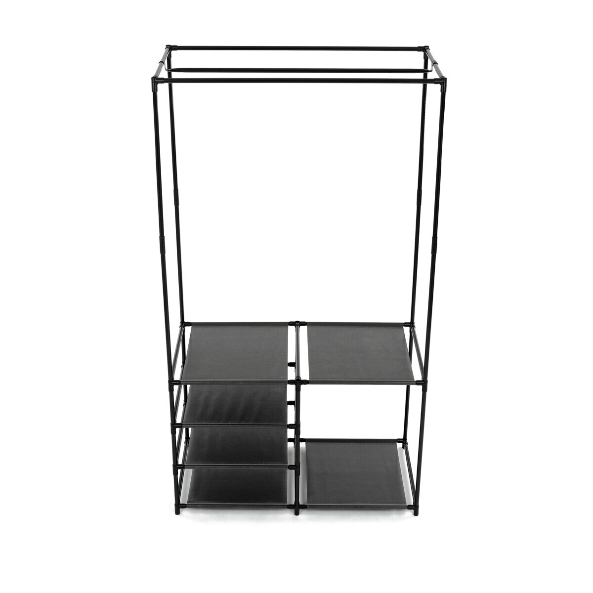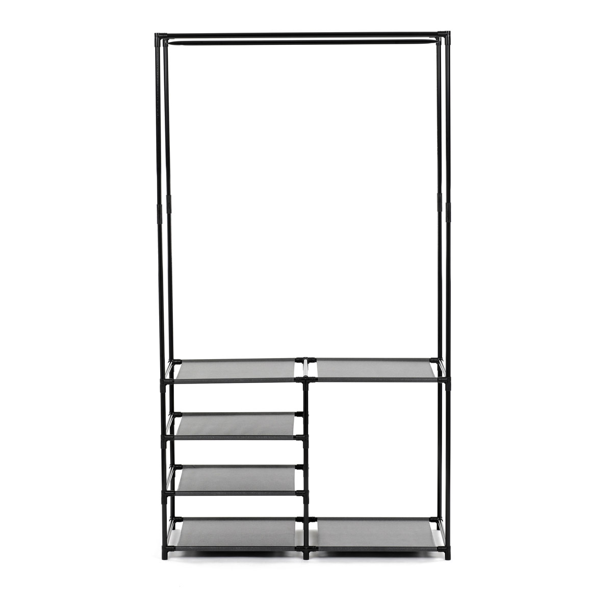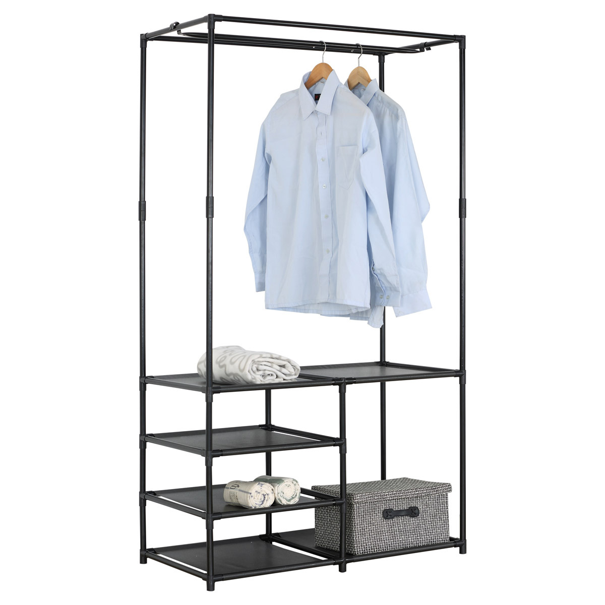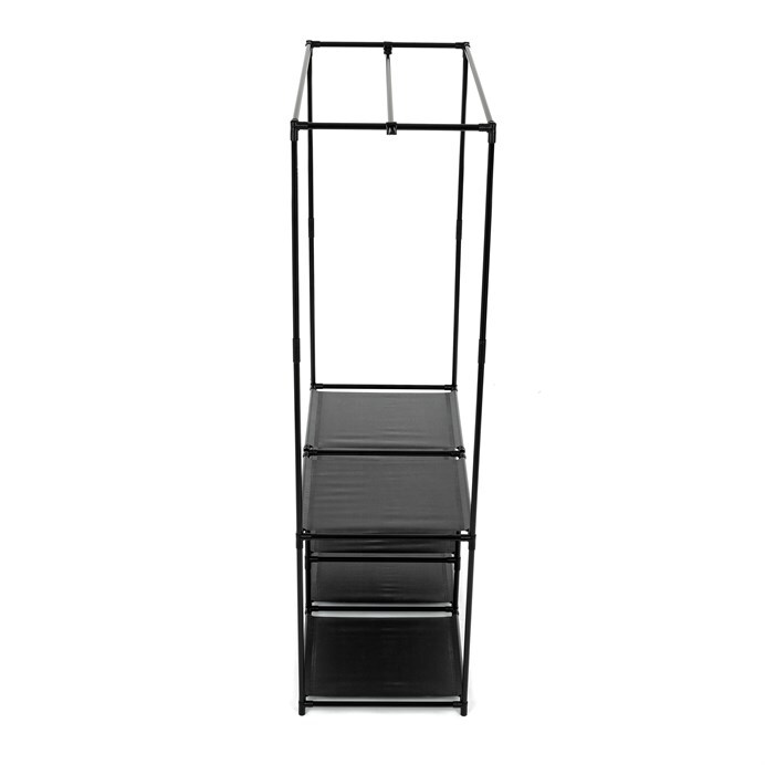 Moderní stojan na šaty značky Autronic spojuje praktičnost s elegantním designem. Stabilní černá kovová konstrukce nabízí nejen prostor pro zavěšení oděvů, ale také čtyři police pro uložení krabic, bot nebo doplňků. Díky otevřenému provedení je vše snadno přístupné a přehledné, což z něj činí ideální doplněk do šatny, ložnice nebo předsíně. Minimalistický styl snadno zapadne do různých typů interiérů a pomáhá vytvořit praktické a organizované prostředí. Skvělá volba pro každodenní použití.