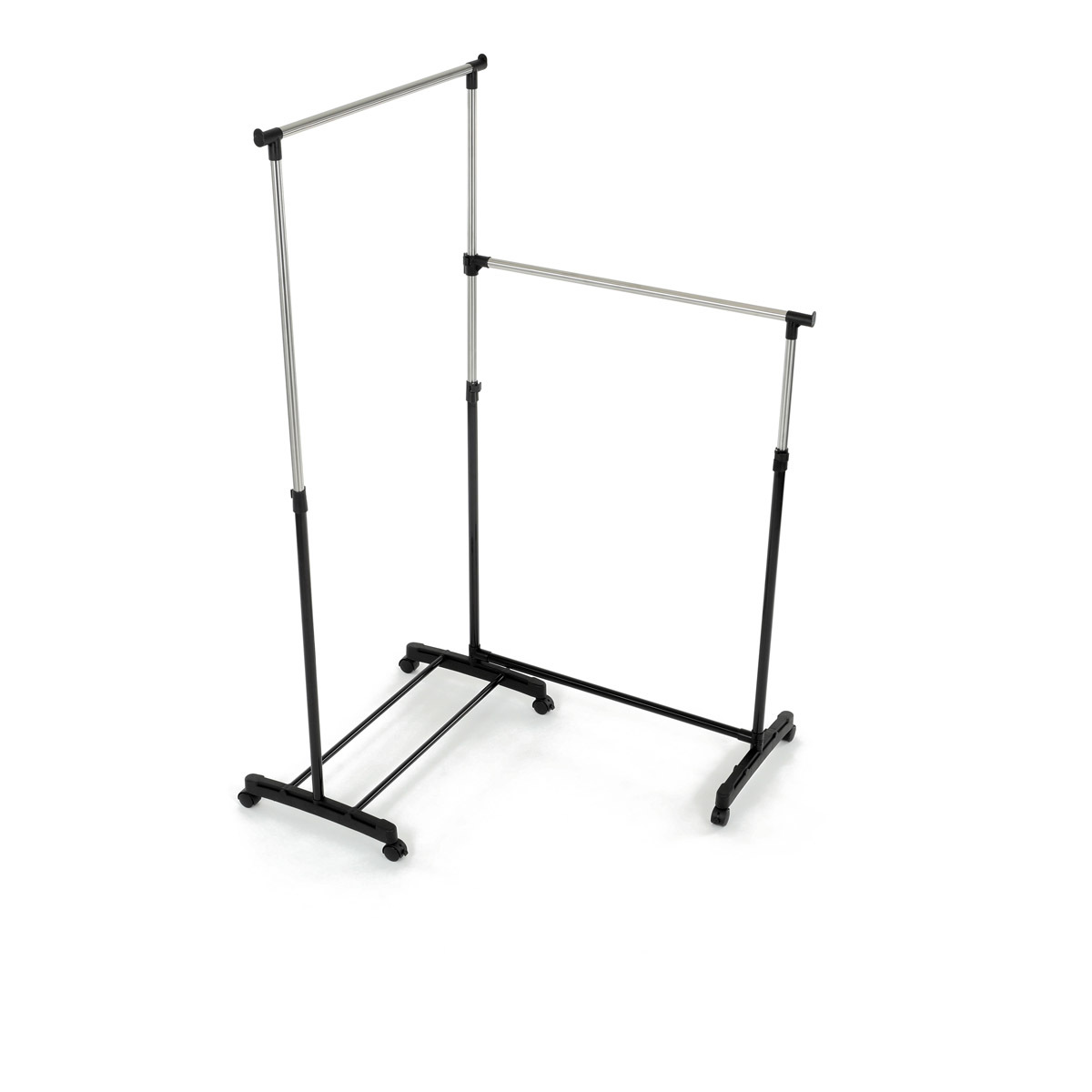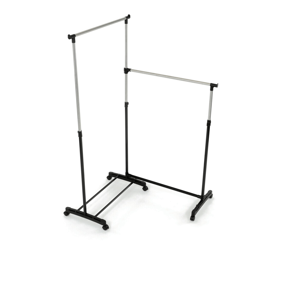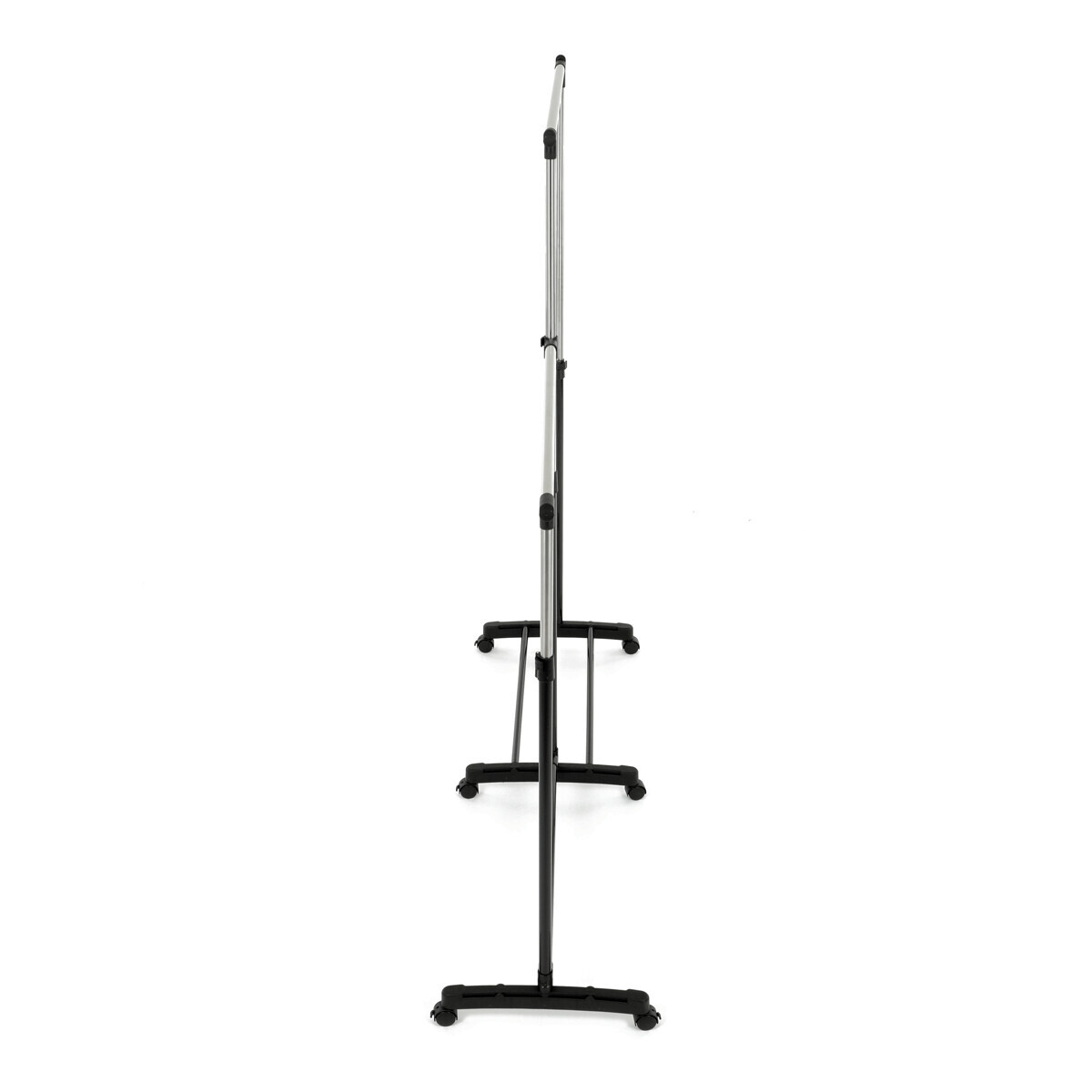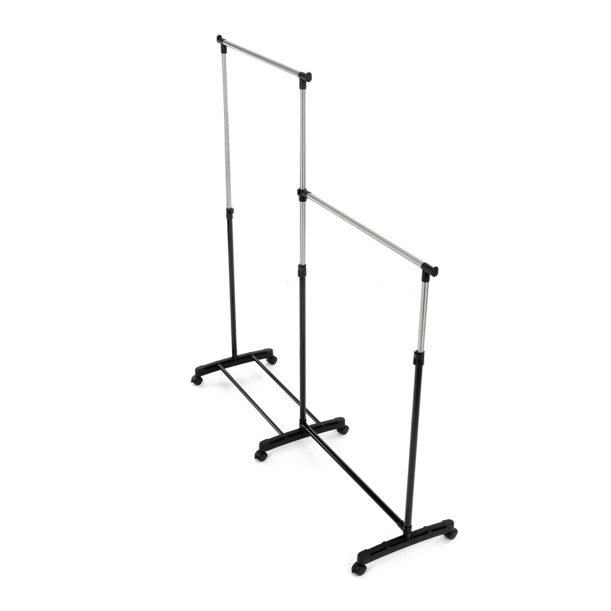 Dvojitý stojan na šaty značky Autronic je ideálním řešením pro maximální využití úložného prostoru. Stabilní kovová konstrukce v kombinaci s kolečky umožňuje snadnou manipulaci a vysokou nosnost. Dvě prostorné tyče poskytují dostatek místa pro zavěšení oblečení, ideální pro šatny, ložnice či předsíně. Minimalistický design v černém provedení se snadno přizpůsobí jakémukoliv interiéru. Díky své praktičnosti a flexibilitě je tento stojan perfektní volbou pro každodenní použití i sezónní organizaci šatníku.