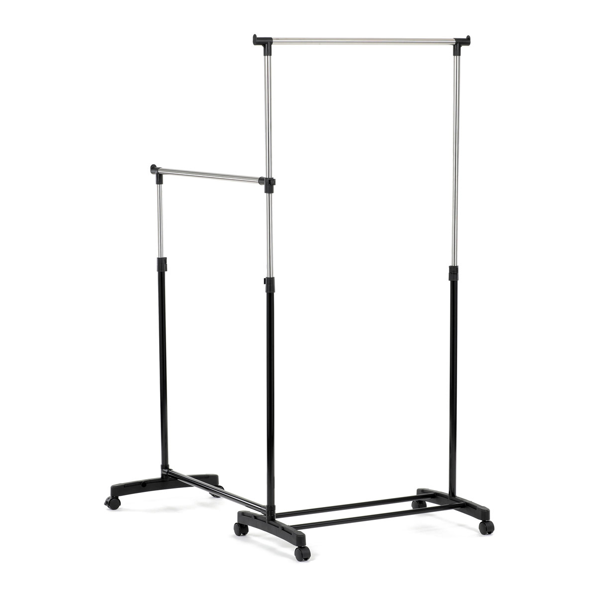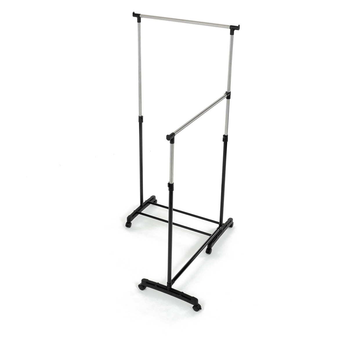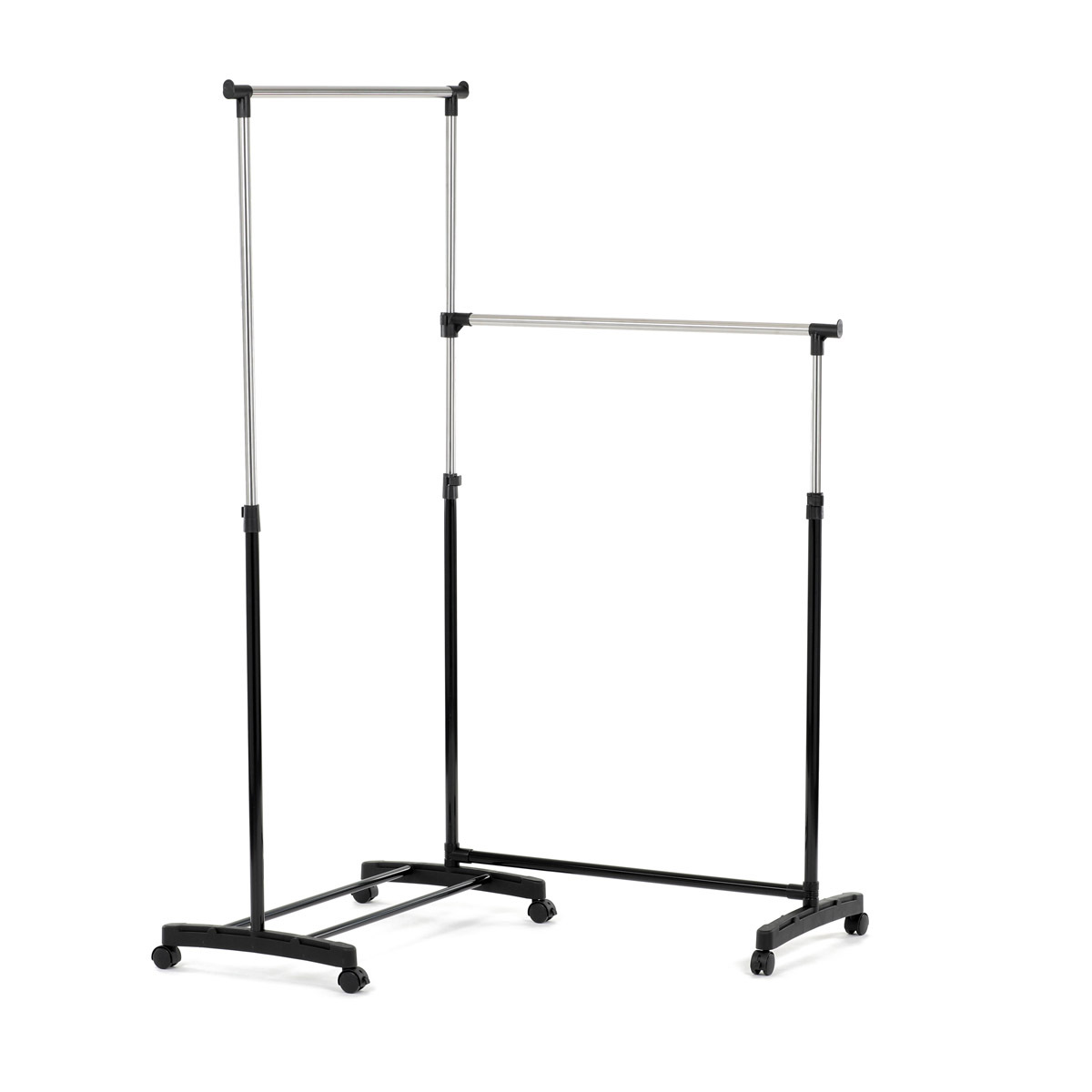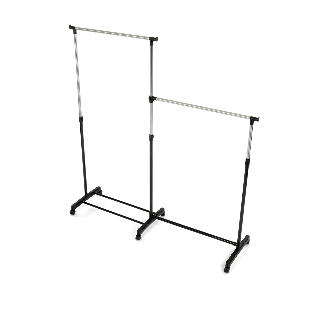 Dvojitý stojan na šaty značky Autronic je ideálním řešením pro maximální využití úložného prostoru. Stabilní kovová konstrukce v kombinaci s kolečky umožňuje snadnou manipulaci a vysokou nosnost. Dvě prostorné tyče poskytují dostatek místa pro zavěšení oblečení, ideální pro šatny, ložnice či předsíně. Minimalistický design v černém provedení se snadno přizpůsobí jakémukoliv interiéru. Díky své praktičnosti a flexibilitě je tento stojan perfektní volbou pro každodenní použití i sezónní organizaci šatníku.