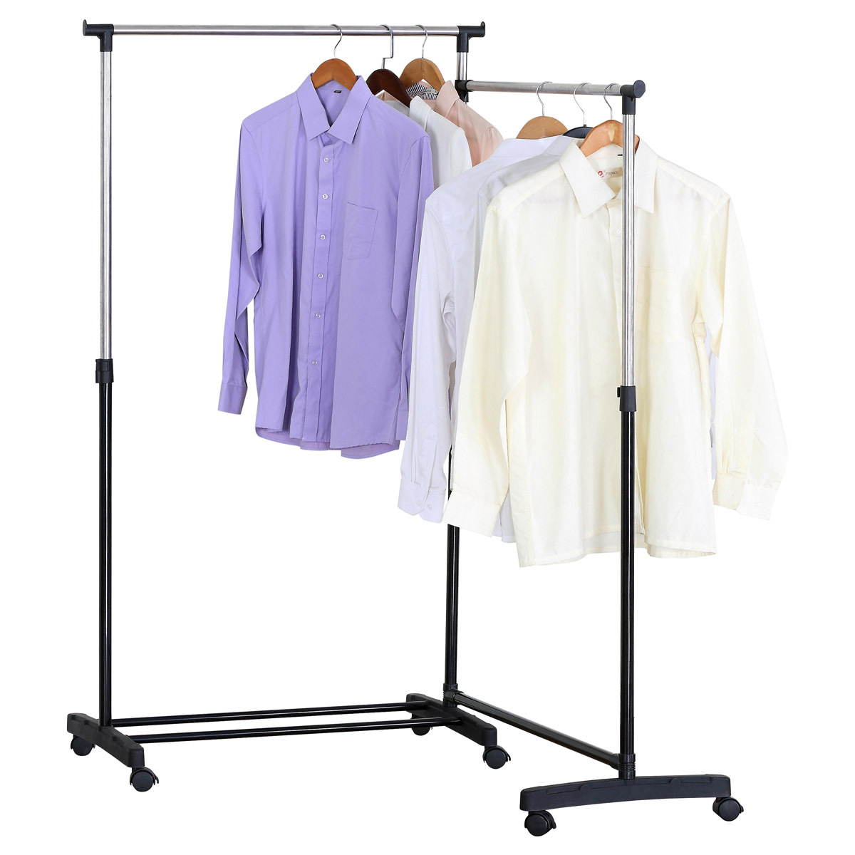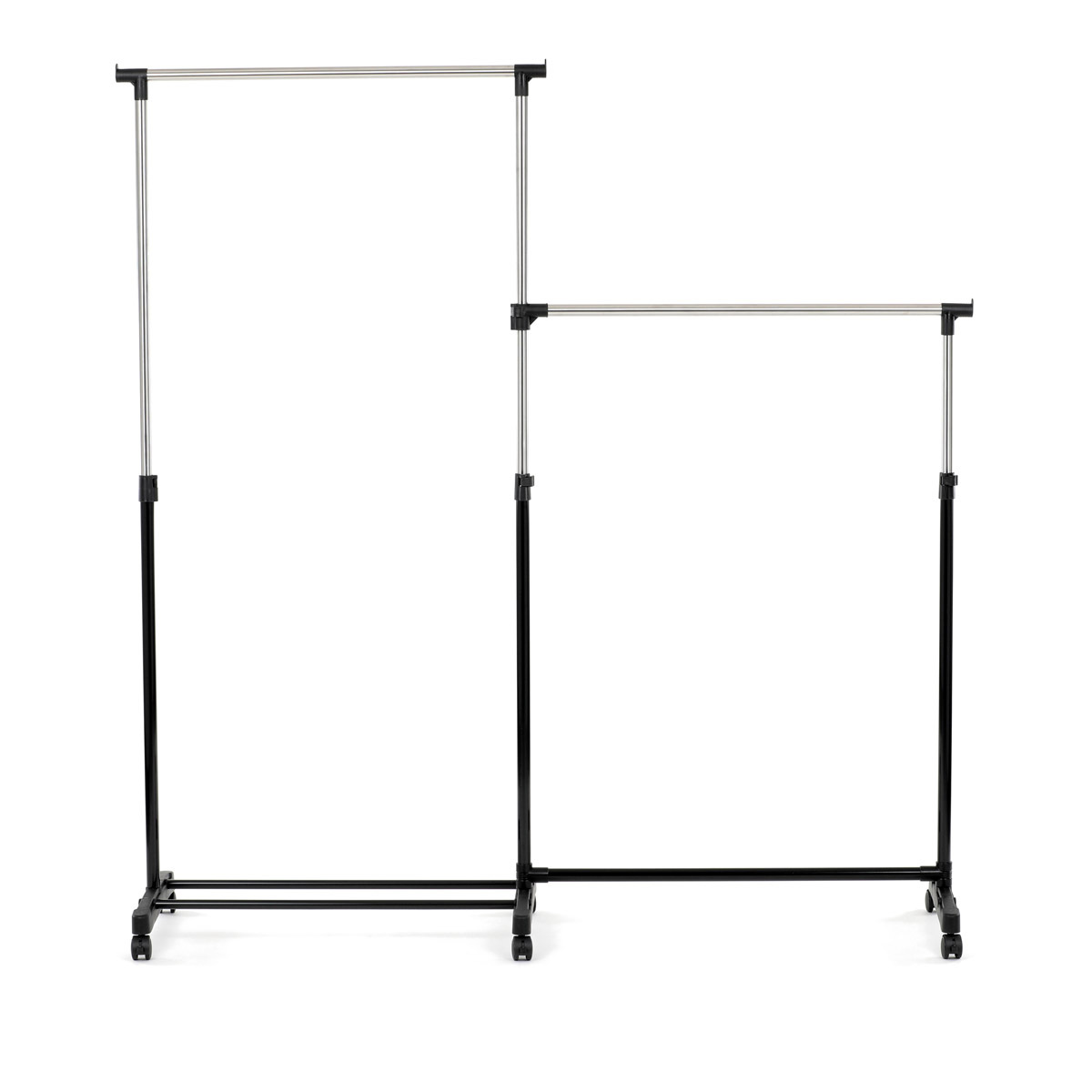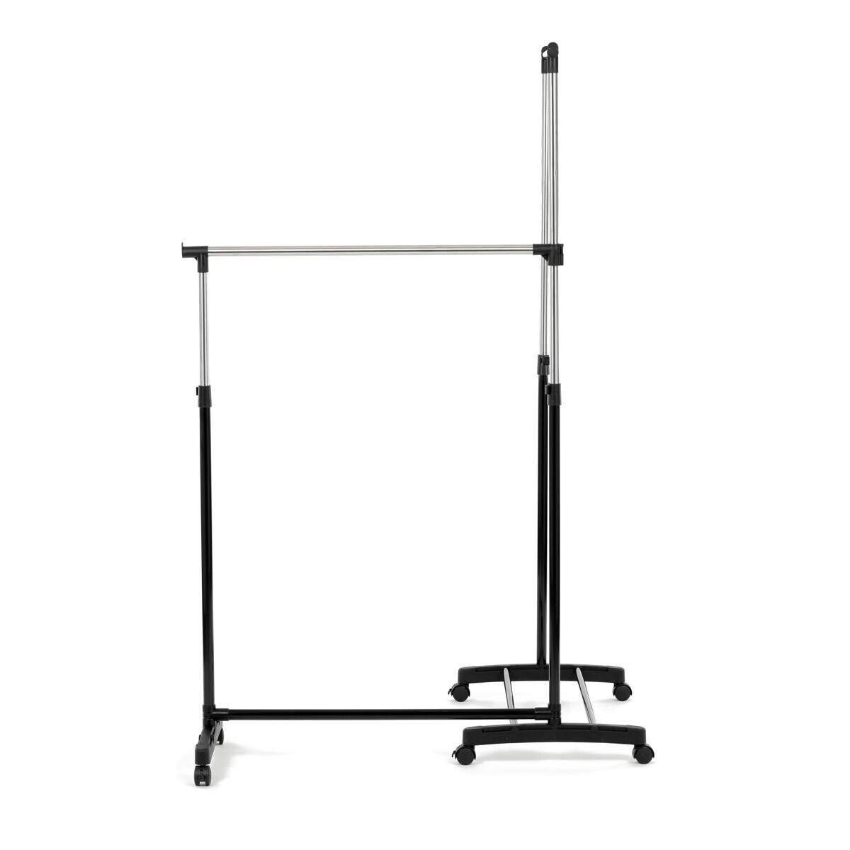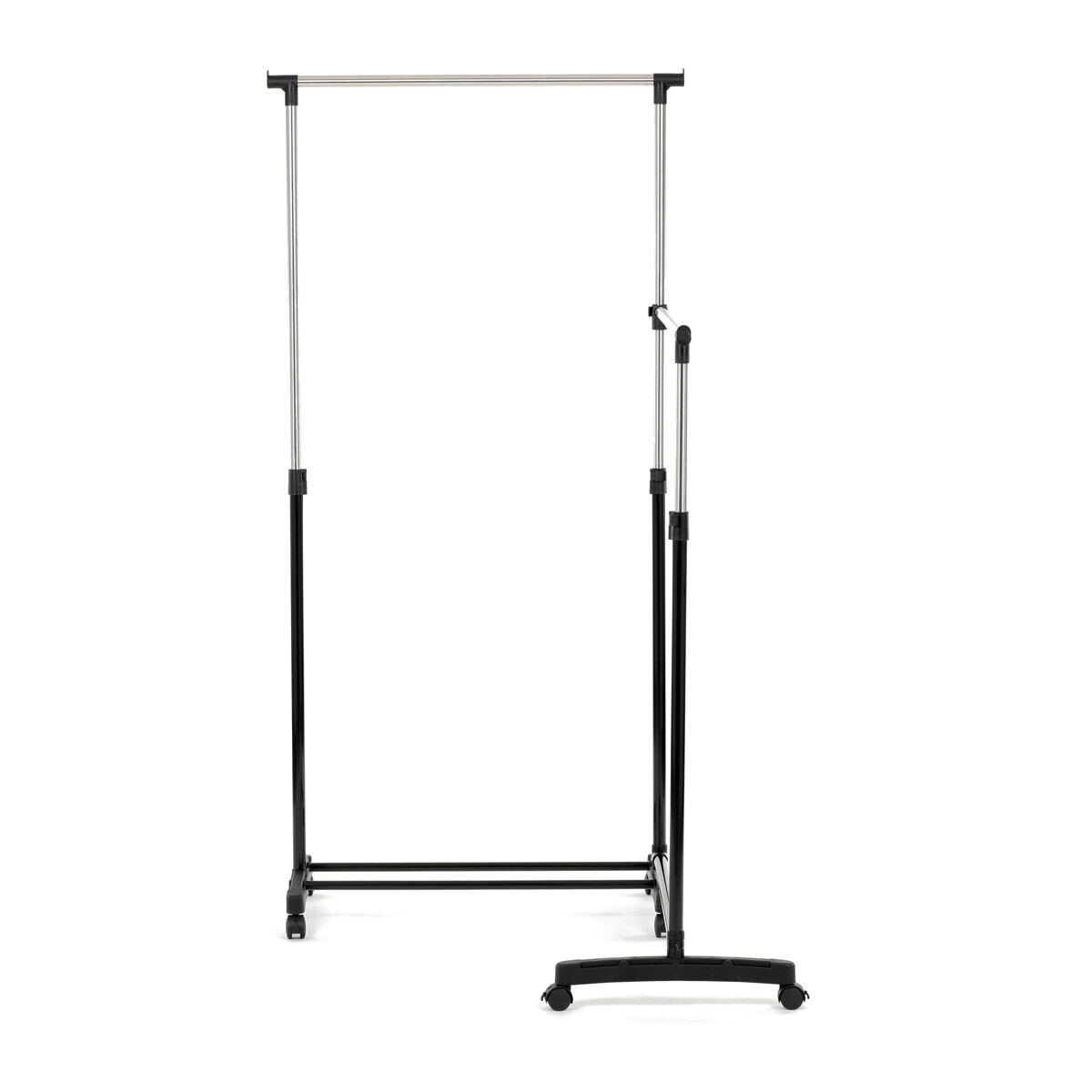 Dvojitý stojan na šaty značky Autronic je ideálním řešením pro maximální využití úložného prostoru. Stabilní kovová konstrukce v kombinaci s kolečky umožňuje snadnou manipulaci a vysokou nosnost. Dvě prostorné tyče poskytují dostatek místa pro zavěšení oblečení, ideální pro šatny, ložnice či předsíně. Minimalistický design v černém provedení se snadno přizpůsobí jakémukoliv interiéru. Díky své praktičnosti a flexibilitě je tento stojan perfektní volbou pro každodenní použití i sezónní organizaci šatníku.