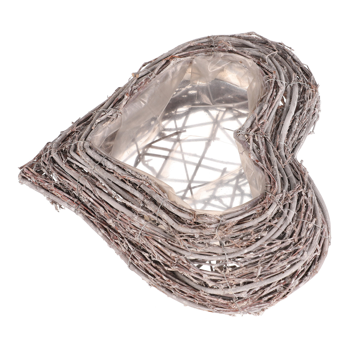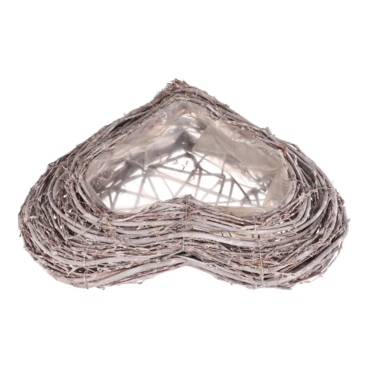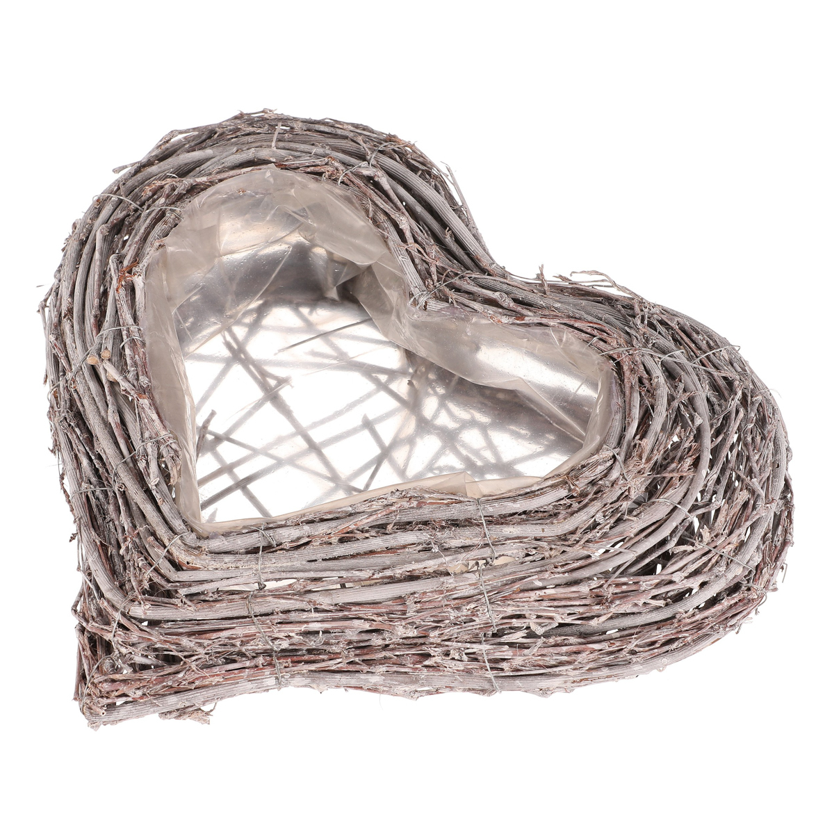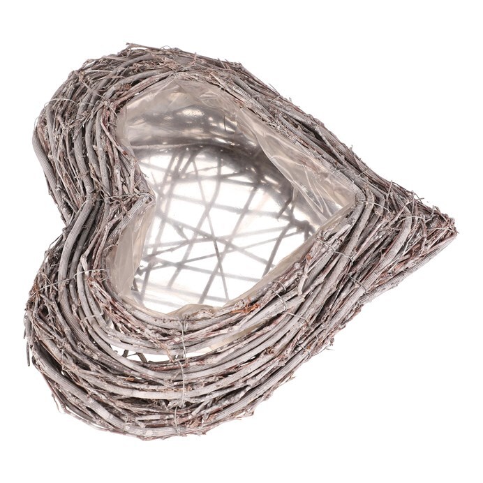 Pietní obal na květiny z šedého proutí ve tvaru srdce je decentní a vkusnou volbou pro výzdobu vzpomínkových míst. Obal je vyplněn igelitovou vložkou, která má ochrannou funkci pro rostliny v něm zasazené, a zároveň chrání i své okolí.
