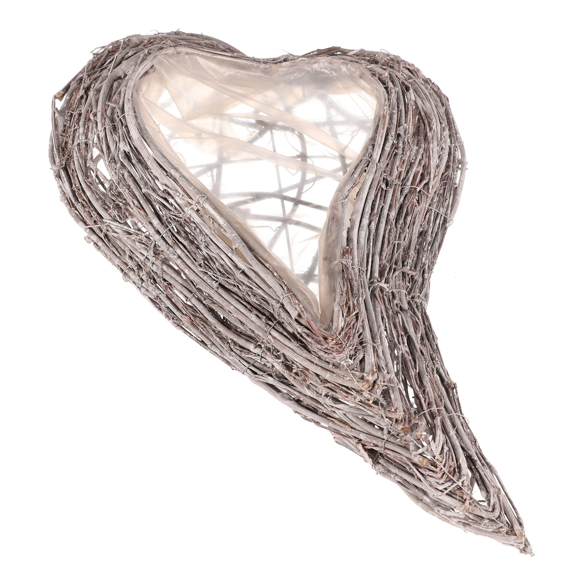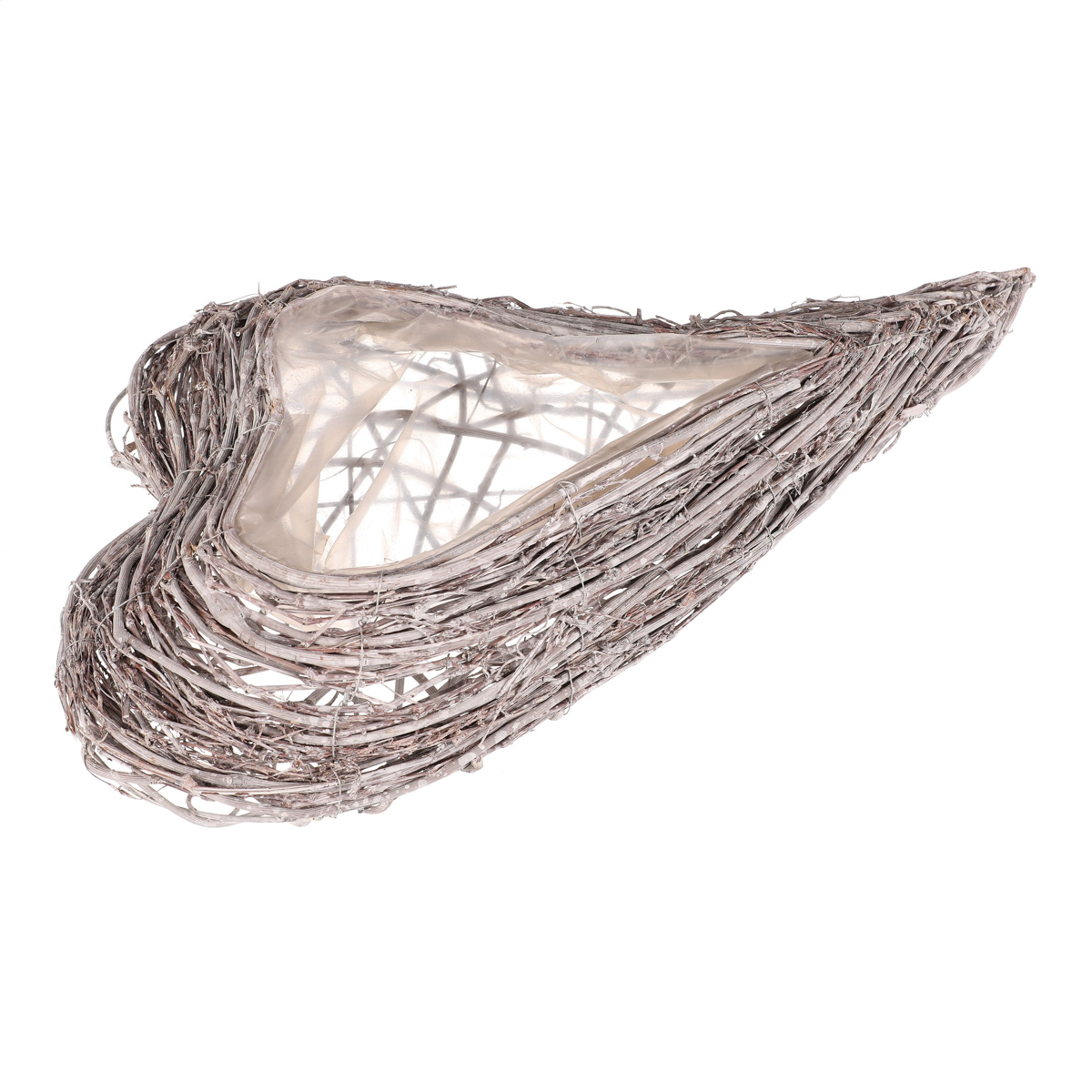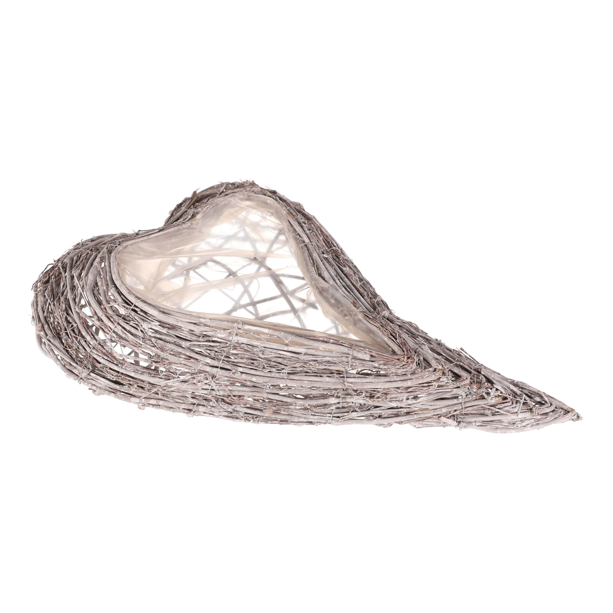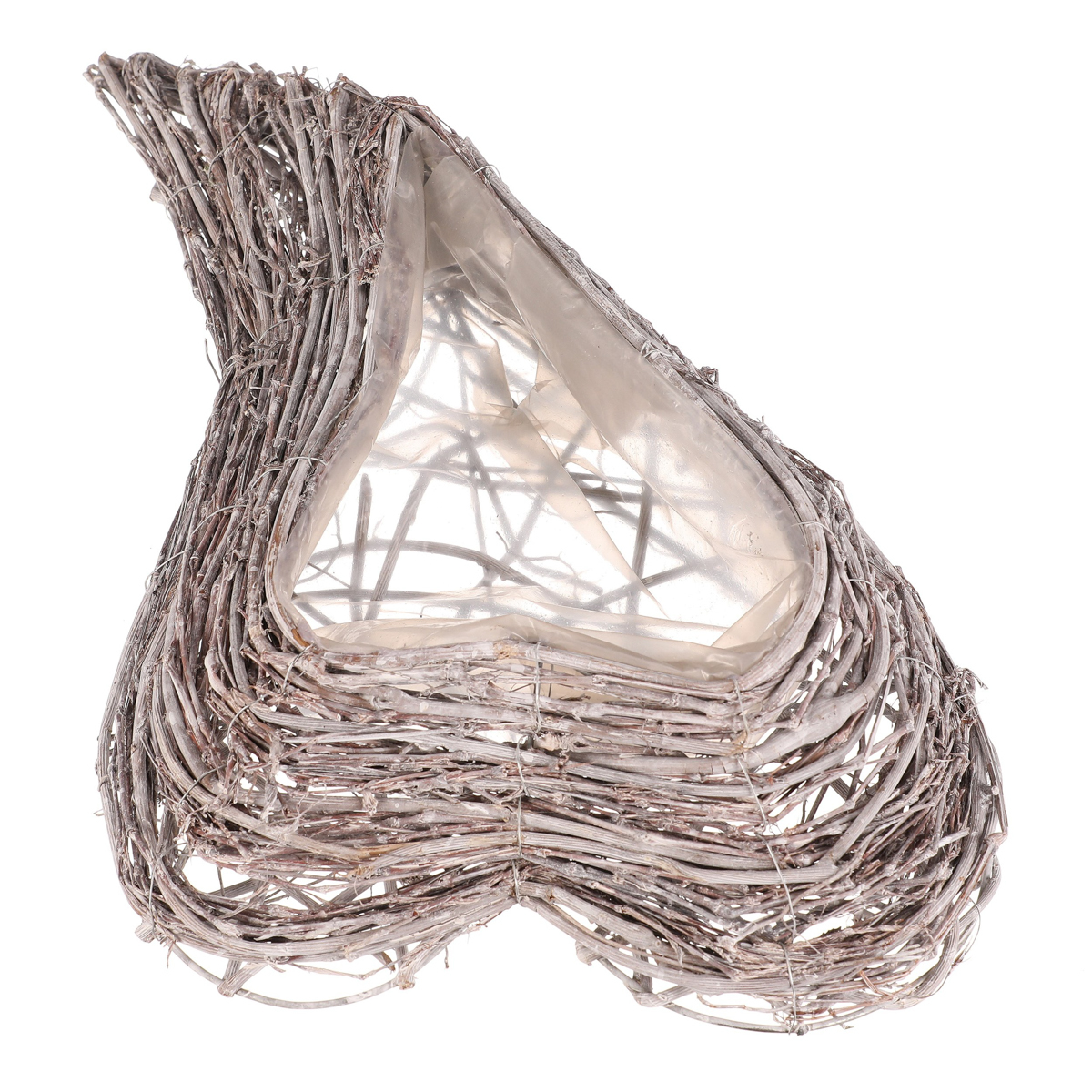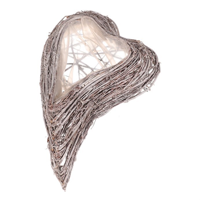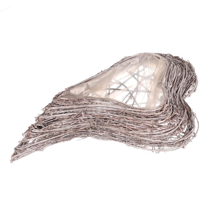 Pietní obal na květiny z šedého proutí ve tvaru srdce je decentní a vkusnou volbou pro výzdobu vzpomínkových míst. Obal je vyplněn igelitovou vložkou, která má ochrannou funkci pro rostliny v něm zasazené, a zároveň chrání i své okolí.