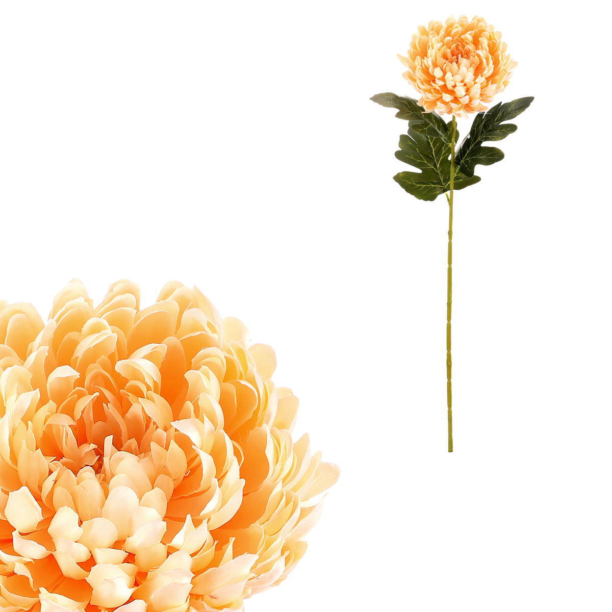 Umělá řezaná chryzantéma s meruňkově zbarveným květem a realisticky zpracovaným stonkem s listy působí jako živá. Nadčasová květinová dekorace, která nikdy neuvadne, vnese do vašeho interiéru i venkovního prostoru teplé podzimní tóny a může jej zdobit i po celý rok.