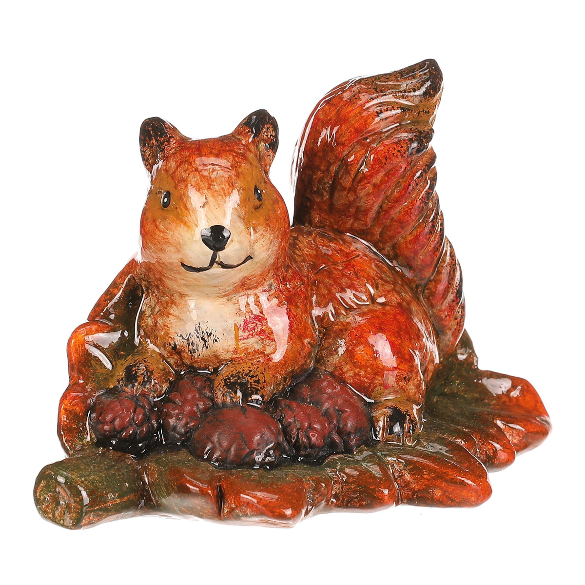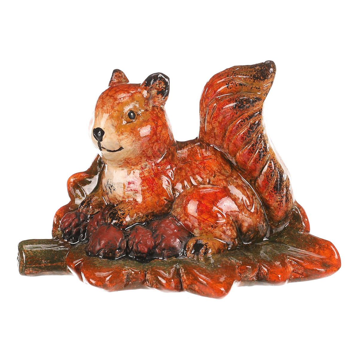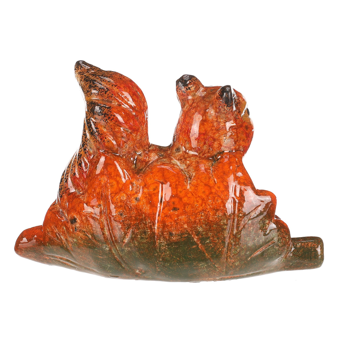 Figurka veverky na dubovém lístku z magnesia v červeno-hnědých barevných tónech je originální dekorace, která zaujme na první pohled. Detailní zpracování a přírodní motivy z ní dělají nádherný doplněk pro váš domov nebo zahradu. Perfektní pro doladění podzimní výzdoby s nádechem barevného lesního království.