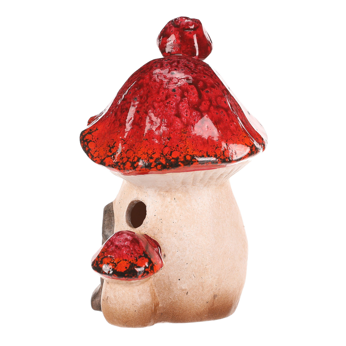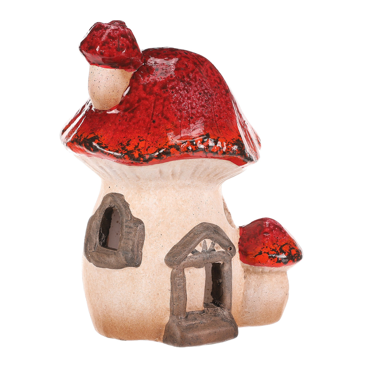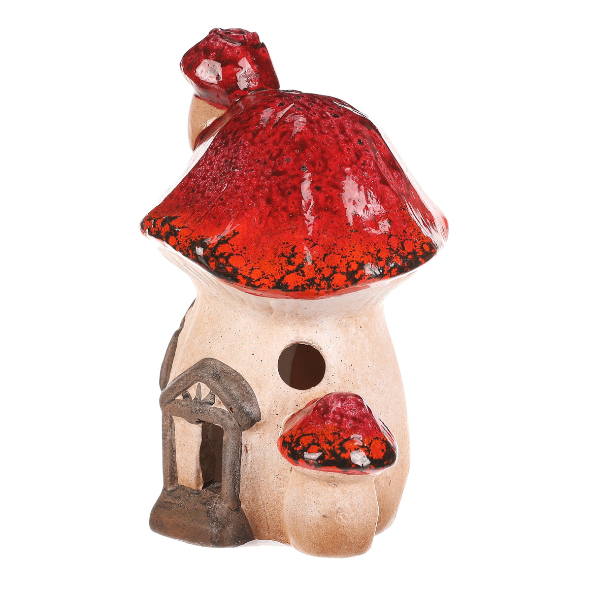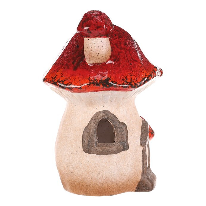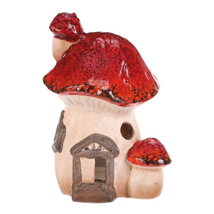 Houbový keramický domeček s LED osvětlením bude skvělou ozdobou pro podzimní období. Domeček je tvořen mochomůrkou červenou s krásně zbarvenou střechou. Jeho komínek je vtipně tvořen jednou mini mochomůrkou, a ještě jednu můžeme vidět hned vedle vchodu. Můžete si tak hravě vytvořit neodolatelné barevné zákoutí s možností vytvořit příjemné světlo během tmavých podzimních večerů.