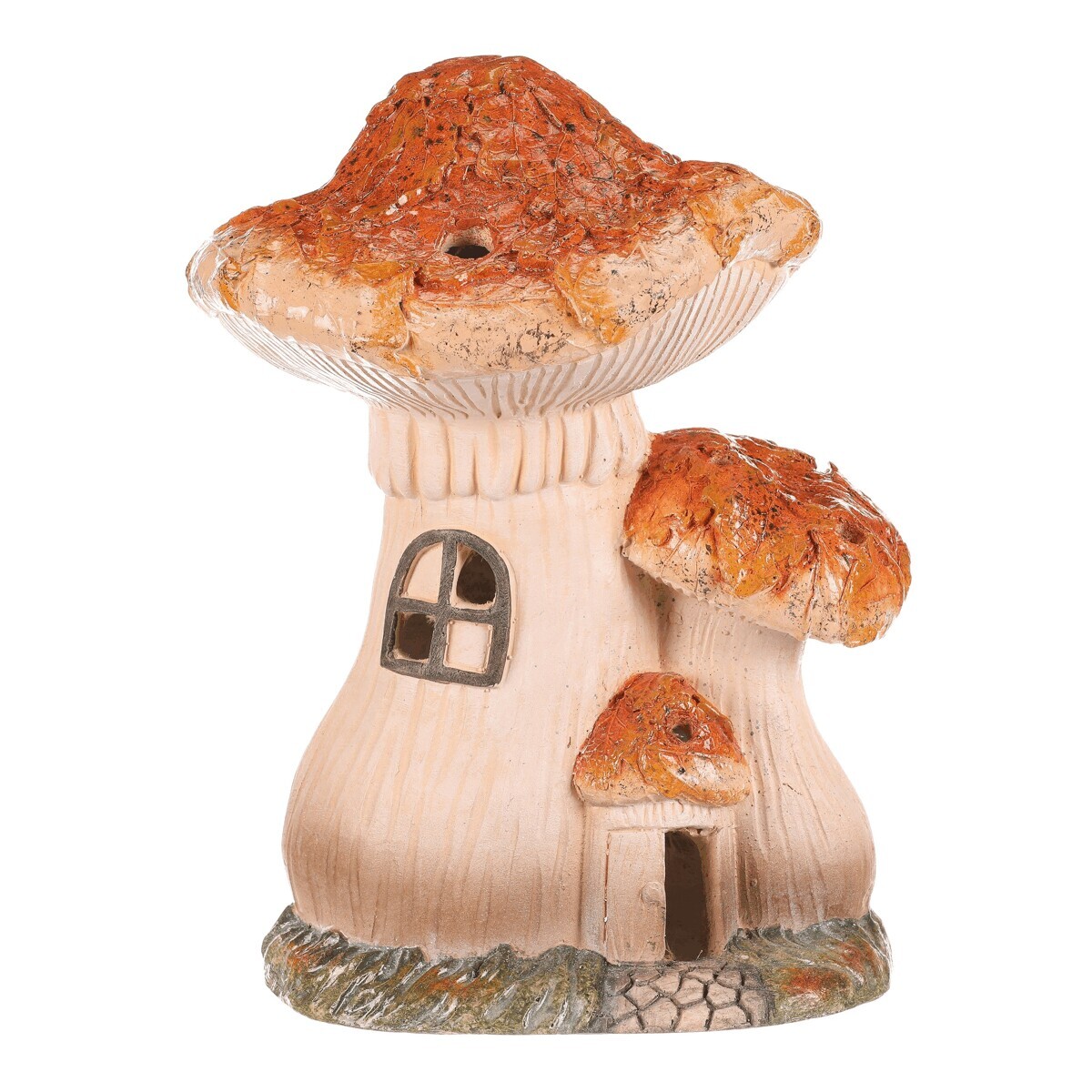 Houbový domeček z magnesia s LED osvětlením bude skvělou ozdobou pro podzimní období. Domeček je tvořen dvěma různě velkými hříbky, které jsou zbarvené do oranžových až světle hnědých odstínů. Samotný vchod je tvořen ještě jedním mini hříbkem. Můžete si tak hravě vytvořit neodolatelné barevné zákoutí s možností vytvořit příjemné světlo během tmavých podzimních večerů.