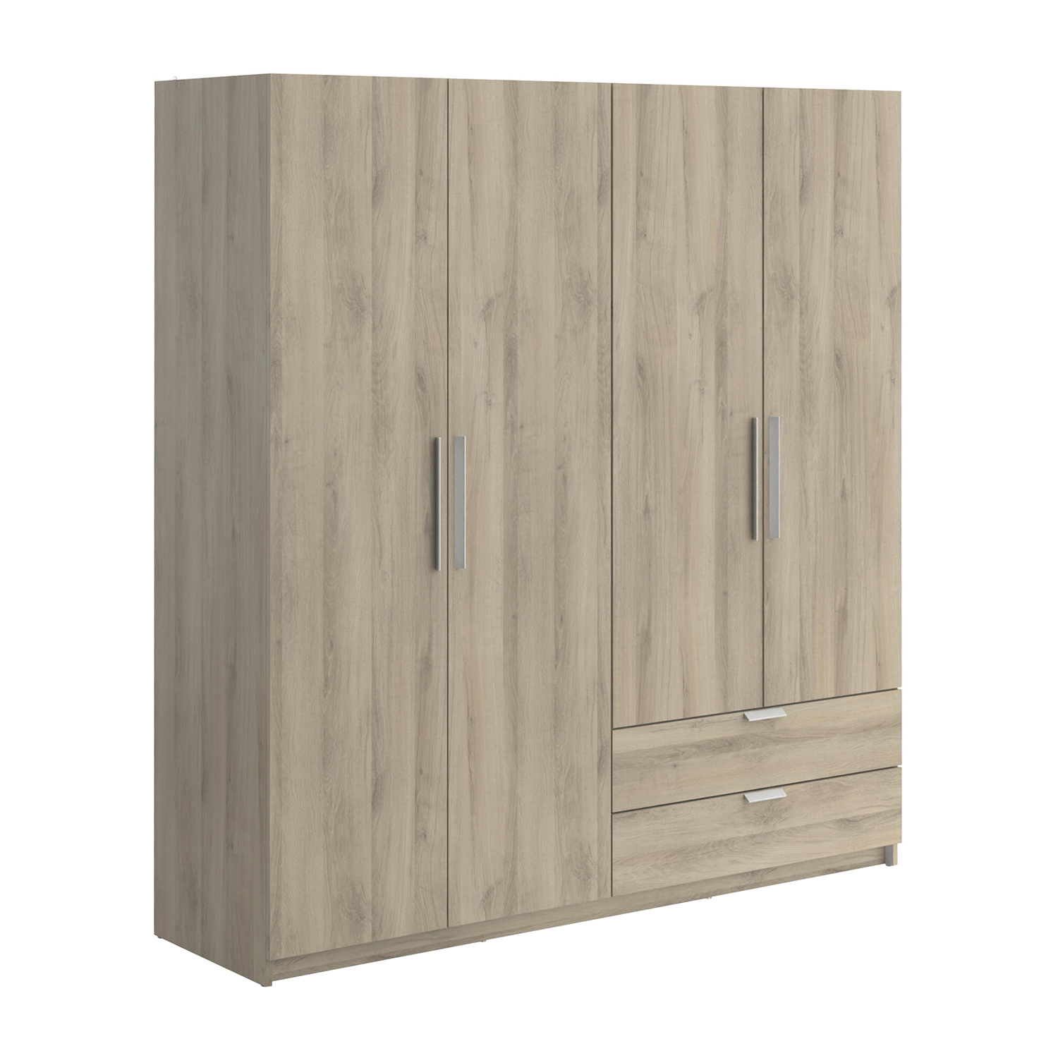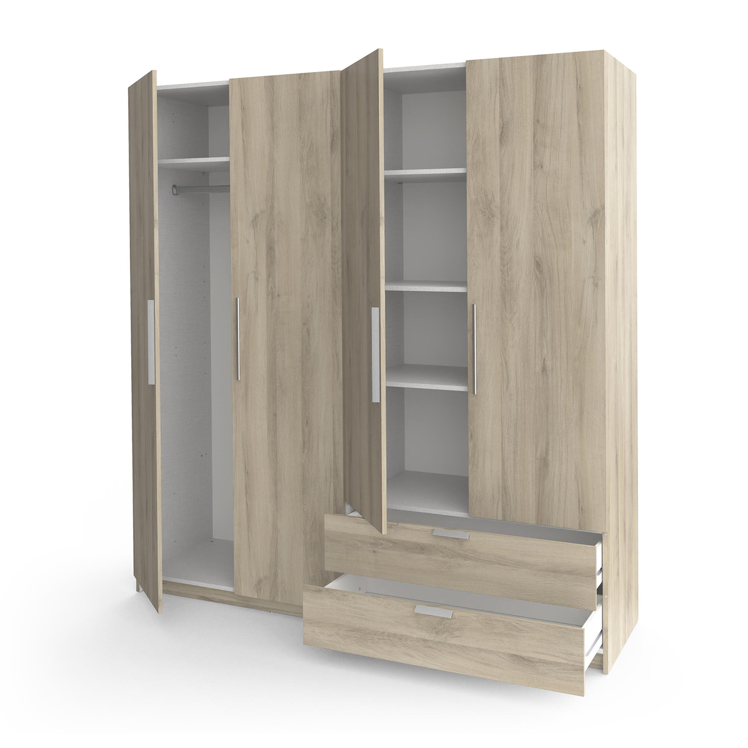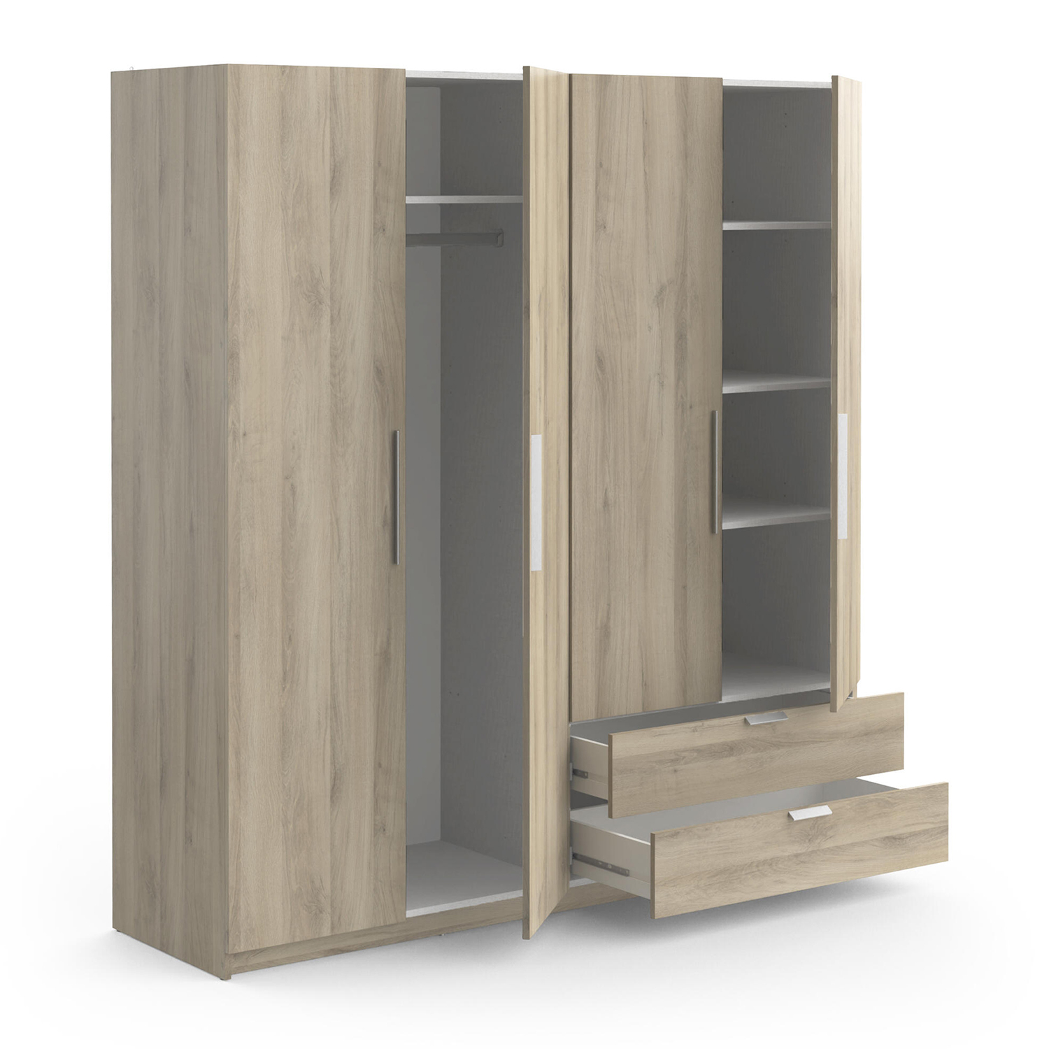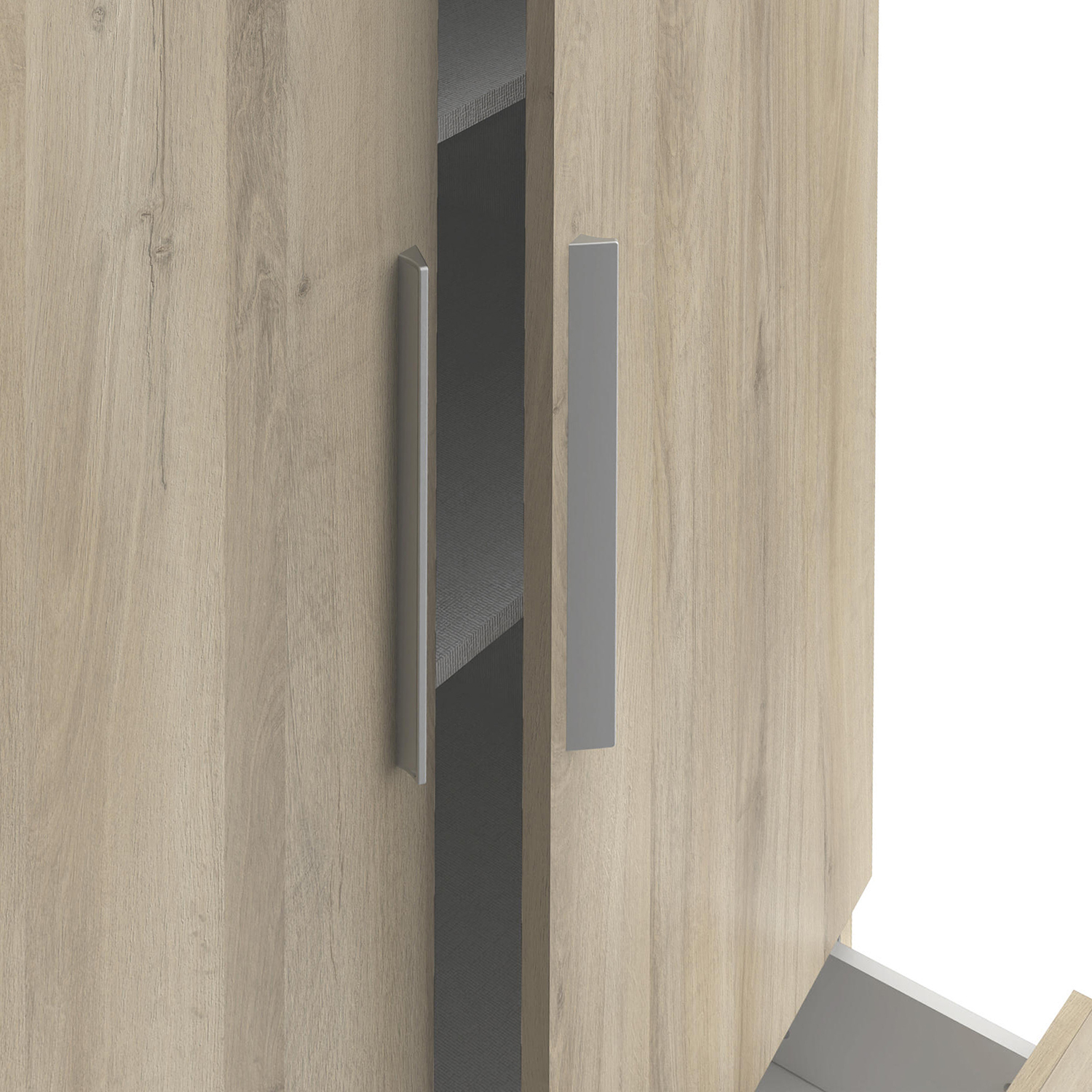 barevné provedení dub Kronberg dělená na poloviny, v levé části šatní tyč a police na klobouky v pravé části 3 police a 2 široké zásuvky s kovovými pojezdy vnitřní rozměr zásuvky (š/h/v) 82,6 × 38,7 × 10,6 cm maximální nosnosti uvedeny v návodu k montáži