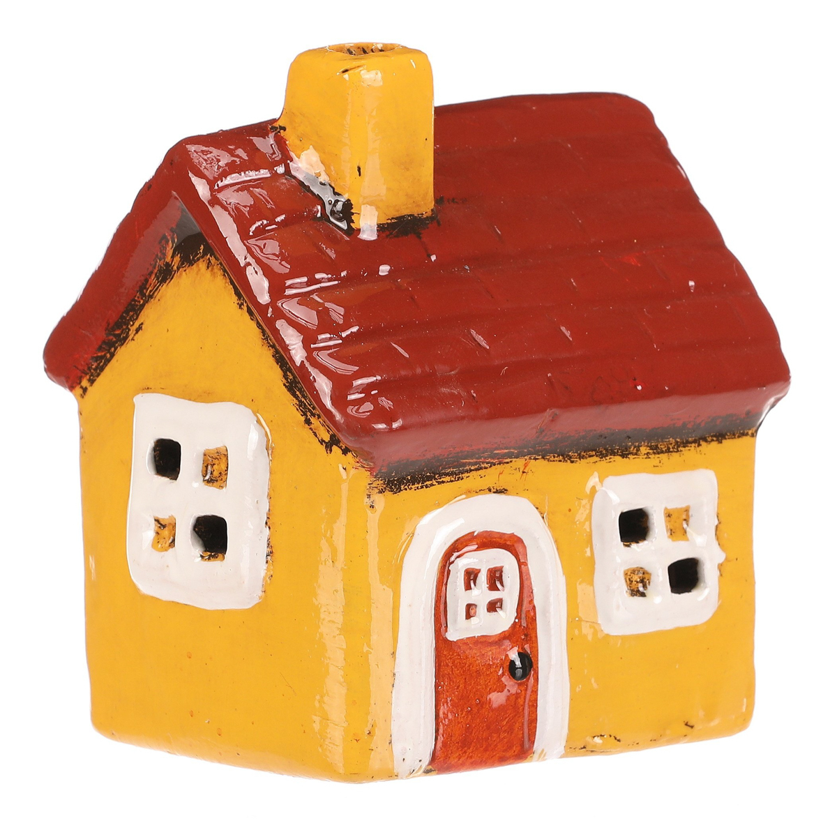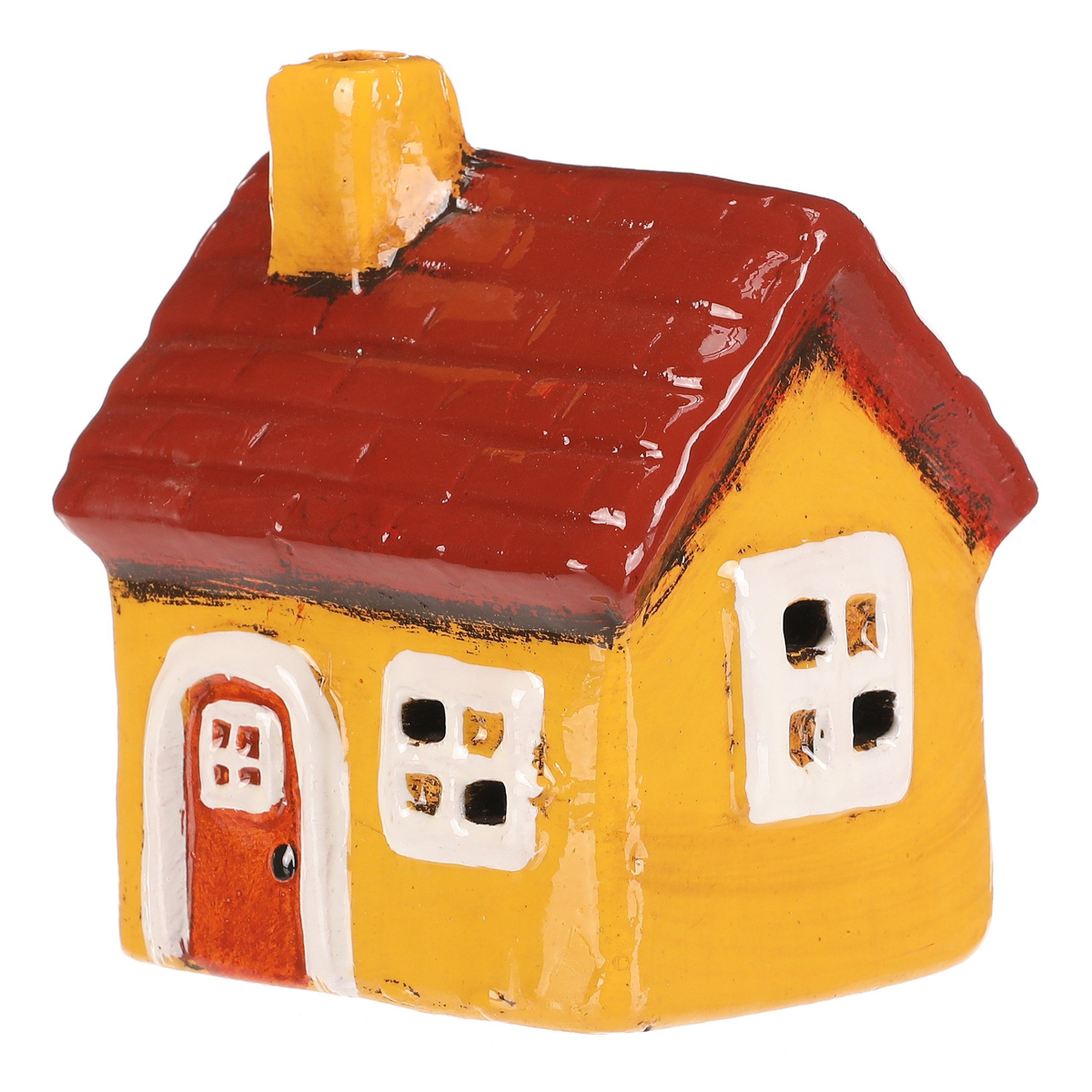 Keramický domek se žlutými stěnami, bílými okny a červenou střechou zkrášlí každý prostor. Jeho jemné zpracování a teplé tóny vnáší do interiéru hřejivou atmosféru. Díky svému zbarvení bude perfektní ozdobou zejména pro podzimní období.