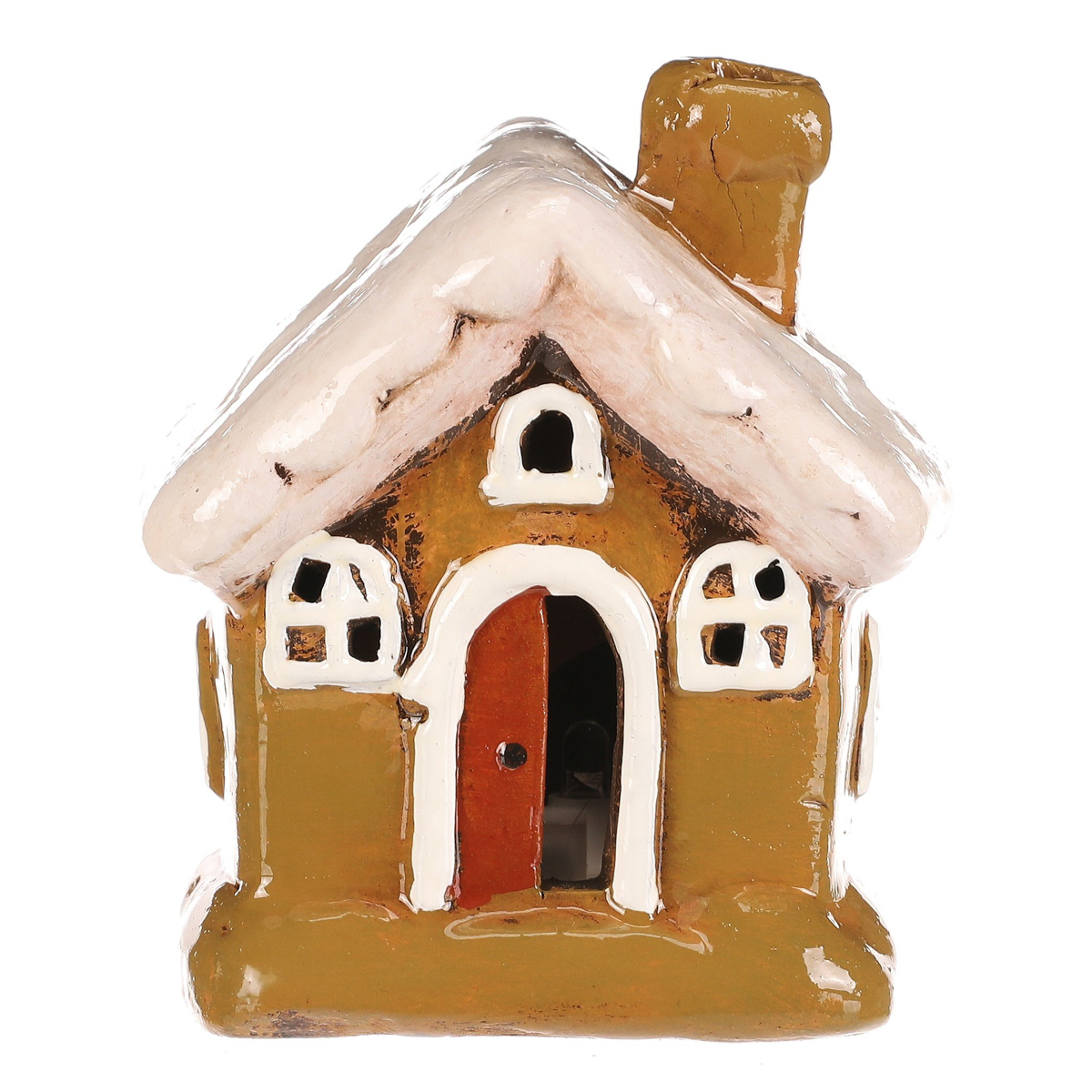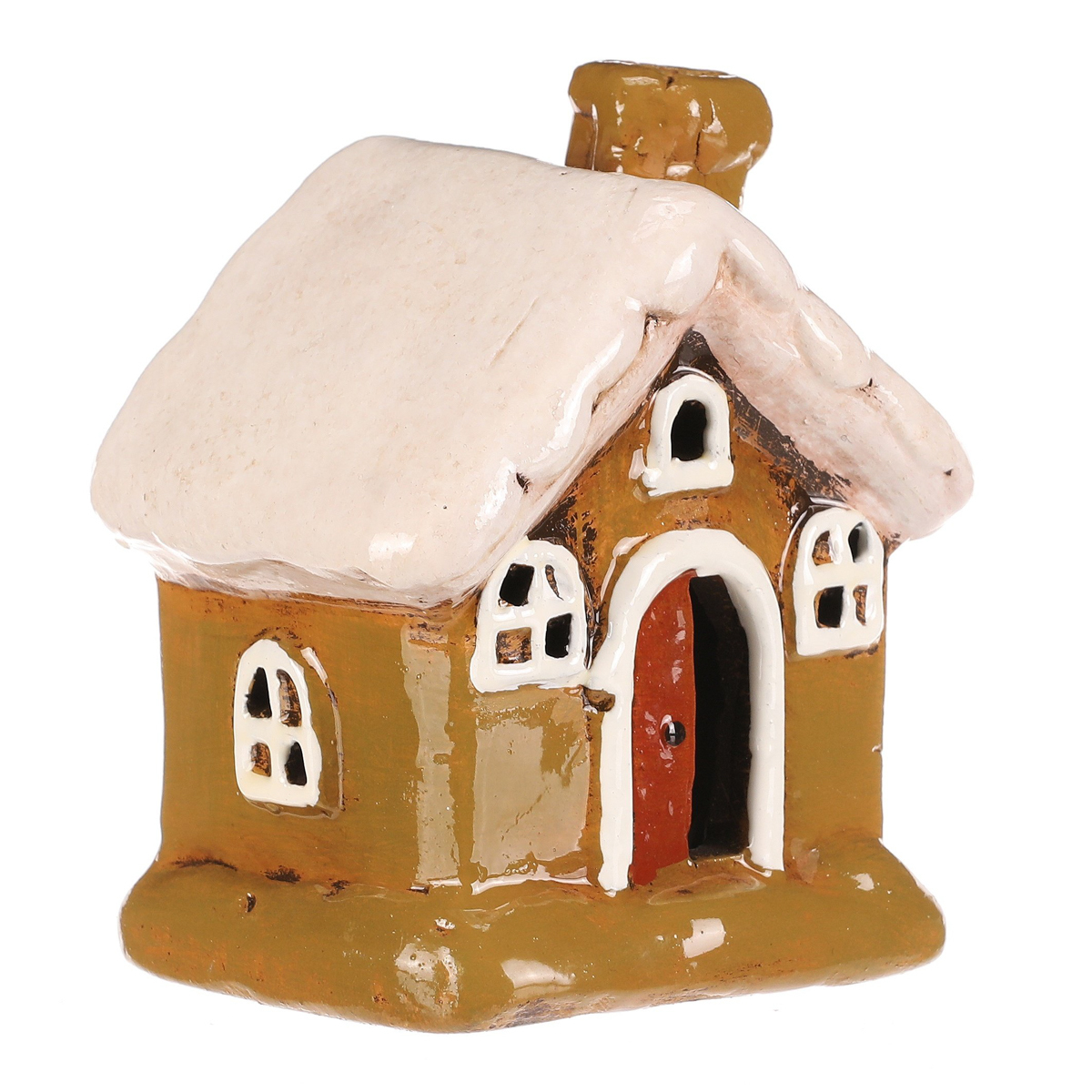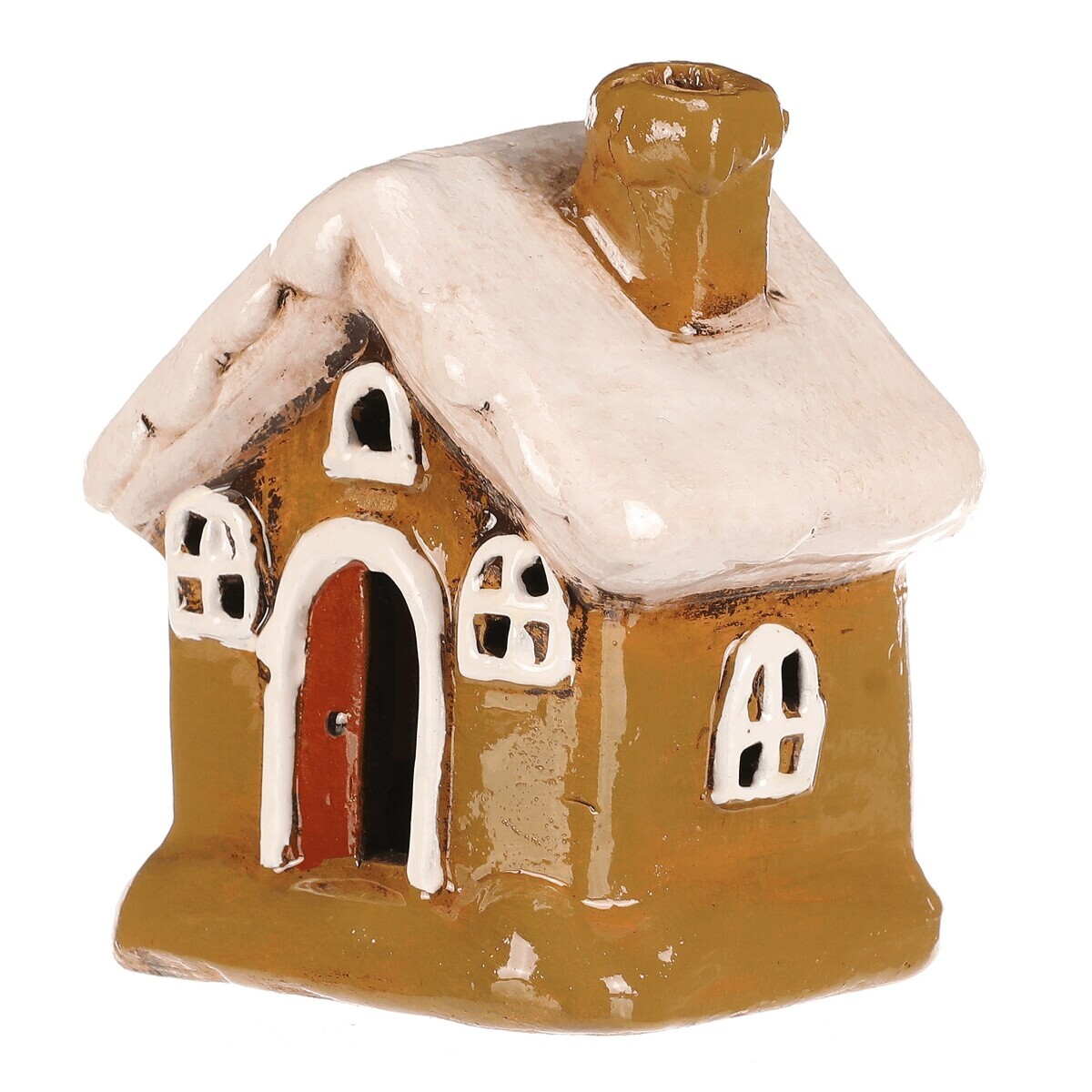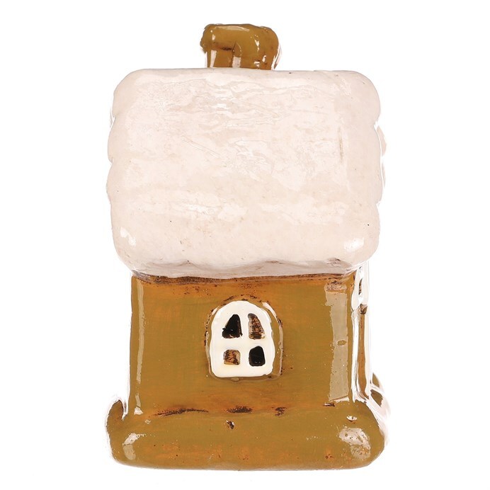 Keramický domek se stěnami v zelené barvě, bílými okny a bílou střechou je stylová dekorace na postavení, která se hodí pro podzimní i zimní výzdobu. Skvěle doplní sezónní aranžmá a vnese do interiéru příjemnější a veselejší atmosféru.