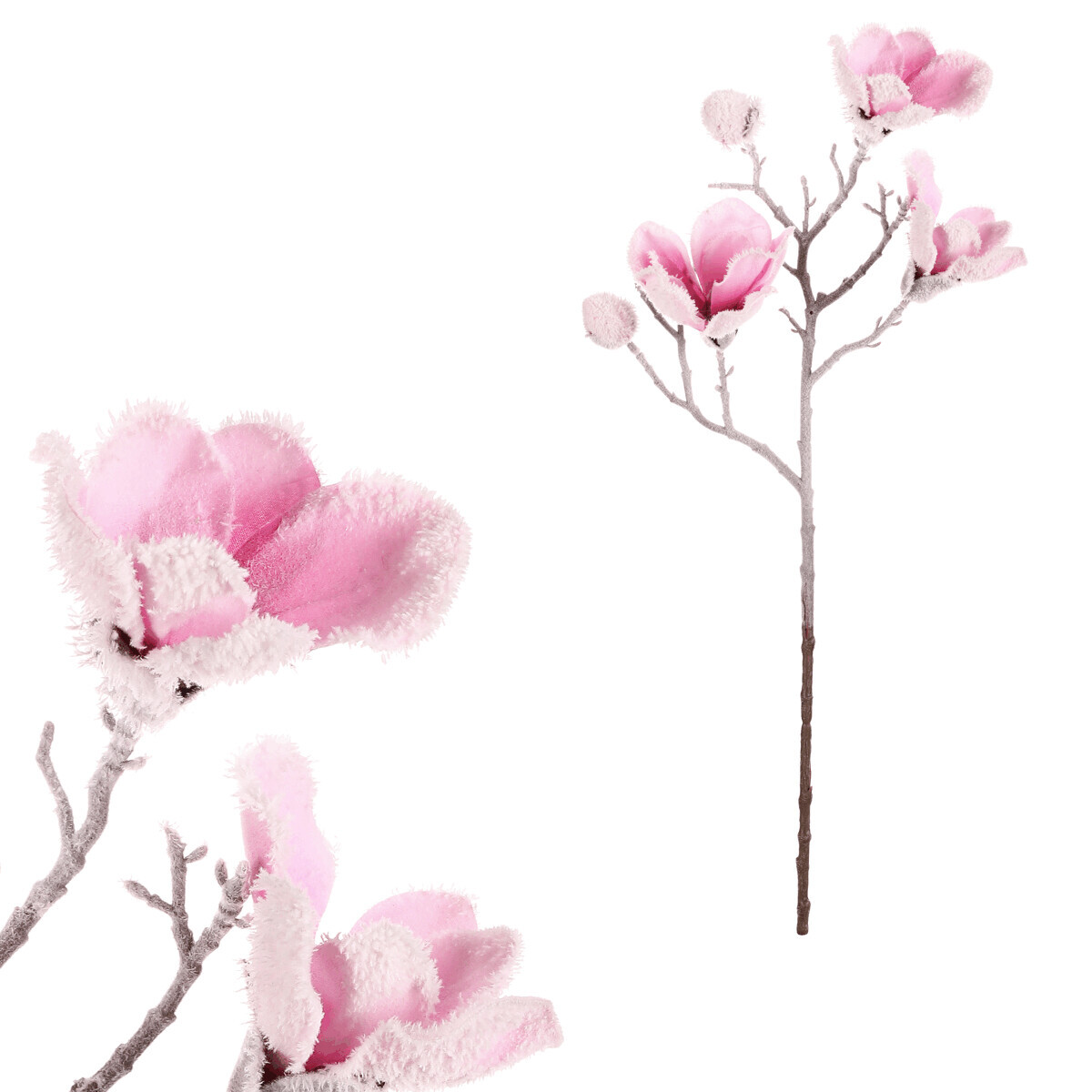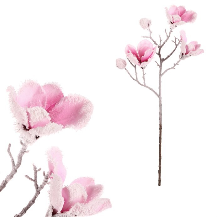 Umělá větev magnolie s jemně zasněženými růžovými květy přinese do vašeho domova kouzlo zimní elegance. Je ideální pro vánoční aranžmá i zimní dekorace, kde působí křehce a přirozeně jako květina zachycená v mrazivém objetí. Nikdy neuvadne a zůstane krásná po celou sezónu i mnoho dalších.