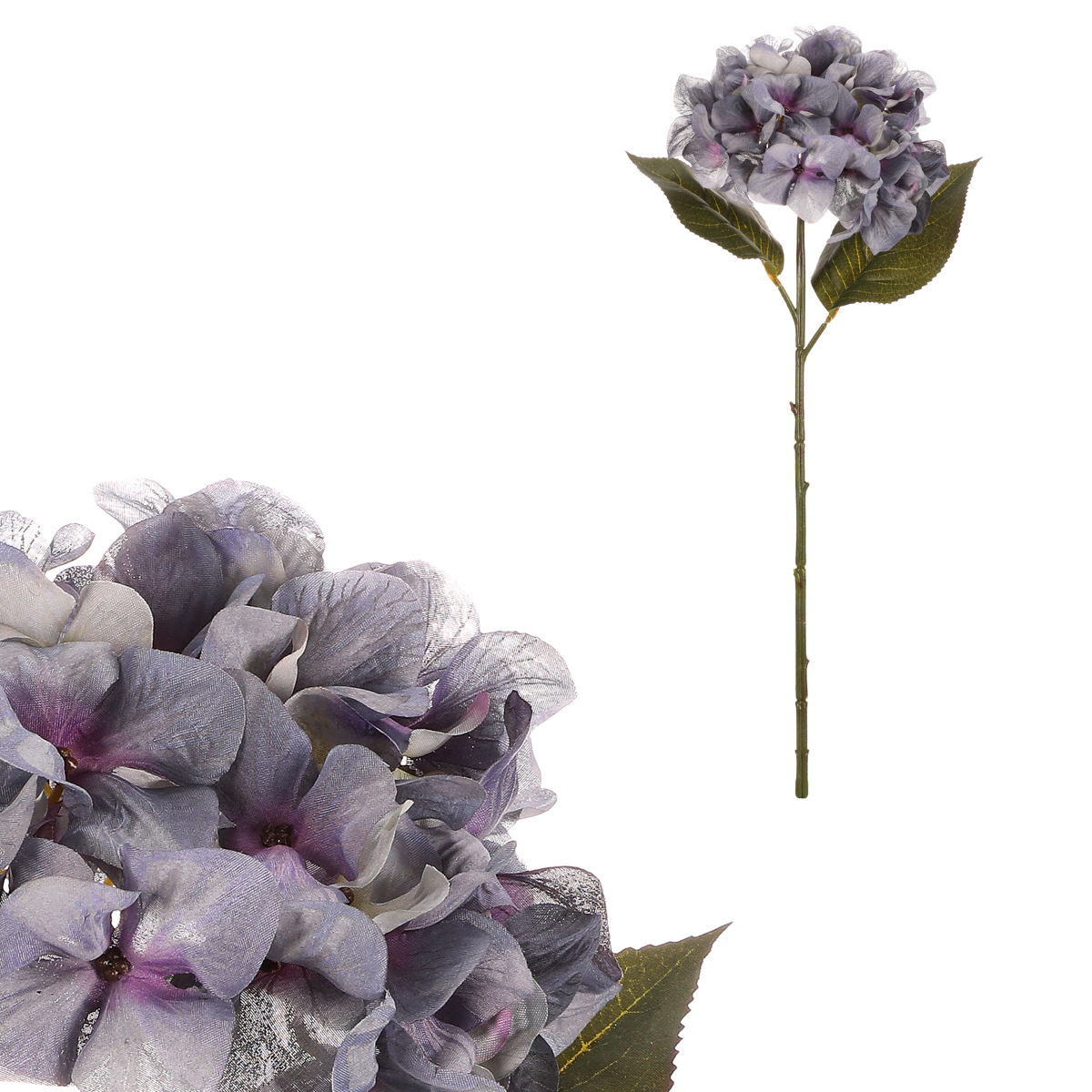 Umělá hortenzie s modrými okvětními lístky působí jako čerstvě utržená ze zahrádky. Krásná podzimní květina, která nikdy neuvadne ani neopadá, a tak vám bude dělat radost dlouhé roky. Skvělá do aranží i jako samostatná dekorace v krásné, elegantní váze.