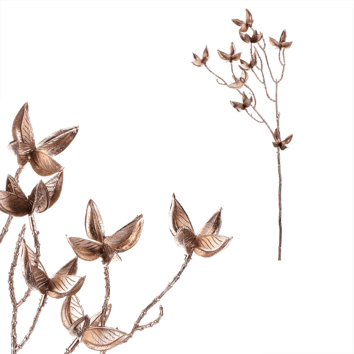 Umělá větev se špičatými lístky v barevném odstínu champagne vnese do vaší výzdoby elegantní a slavnostní atmosféru. Exotický vzhled této rostliny dává vánočním aranžím nevšední šmrnc, a přitom dokonale ladí s dalšími svátečními dekoracemi. Skvělá volba pro ozdobení kytic, věnců, svícnů či stolních aranží.