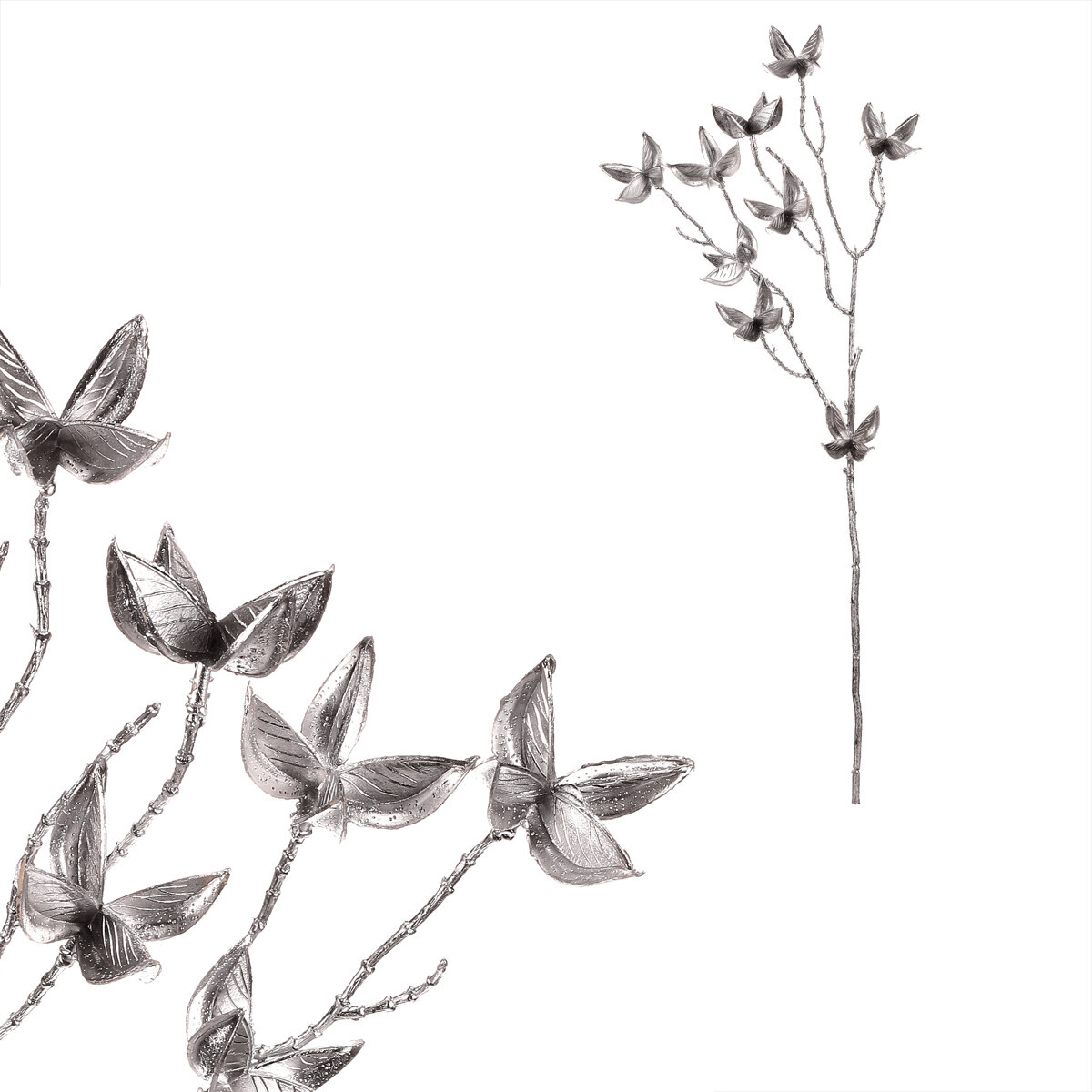 Umělá větev se špičatými lístky ve stříbrném provedení vnese do vaší výzdoby elegantní a slavnostní atmosféru. Exotický vzhled této rostliny dává vánočním aranžím nevšední šmrnc, a přitom dokonale ladí s dalšími svátečními dekoracemi. Skvělá volba pro ozdobení věnců, svícnů či stolních aranží.