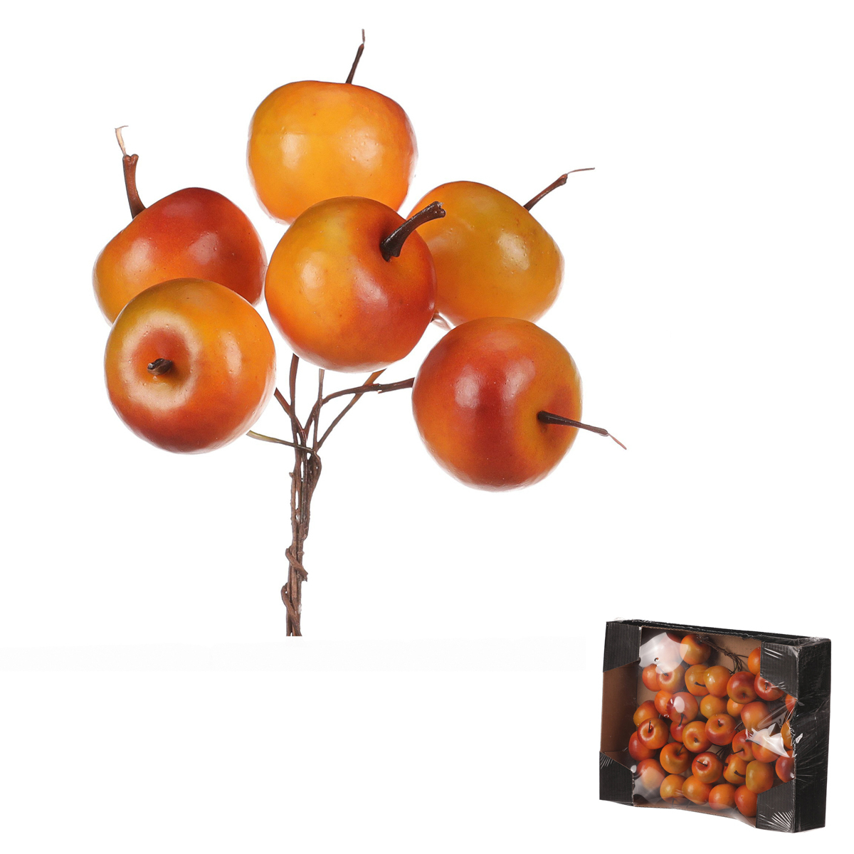 Podzim je období, kdy sklízíme dozrávající plody a příroda se zahaluje do krásných barevných tónů. Jablka jsou taktéž jedním z typicky podzimních plodů, které můžeme využít i jako ozdobu našich stolů, poliček a dalších míst. Obzvláště pokud se jedná o umělé a zmenšené varianty oranžových jablíček na drátkách, které nabízí široké možnosti využití pro podzimní aranžování. Je jich v balení hned 36 kusů, takže si můžete hravě vytvářet, spolu s dalšími barevnými bobulemi, plody, květinami, přízdobami a dalšími ozdobnými prvky, úžasné barevné kompozice, které vám budou všichni ostatní jen tiše závidět. Pozor! Tento produkt není určen ke konzumaci a chraňte jej před dosahem dětí.