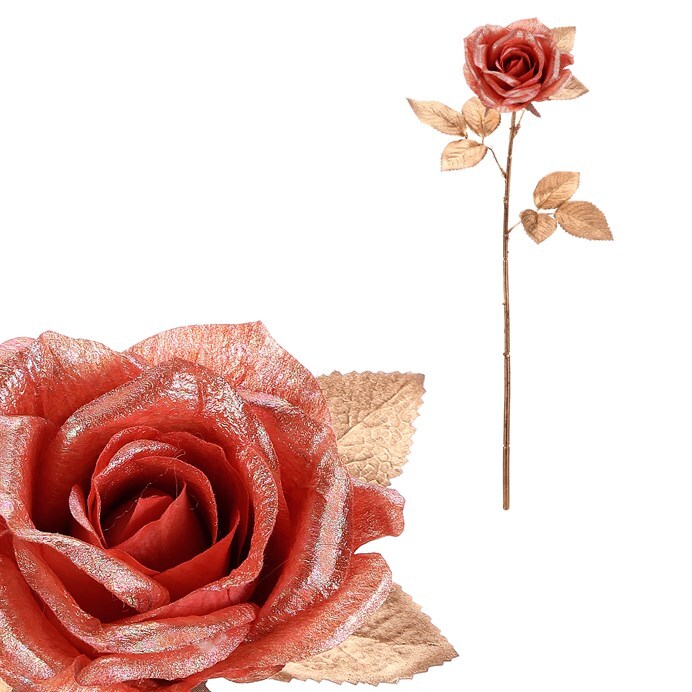 Umělá růže s meruňkovými květy a pozlacenými lístky vnese do vánoční výzdoby jemnost a eleganci. Skvěle se hodí pro aranžování svátečních dekorací, kde její třpytivé detaily krásně vyniknou. Trvalá krása, která vydrží a nepotřebuje žádnou zvláštní péči. Můžete tak tuto umělou květinu v netradičním barevném pojetí používat pro aranžování i v dalších sezónách.