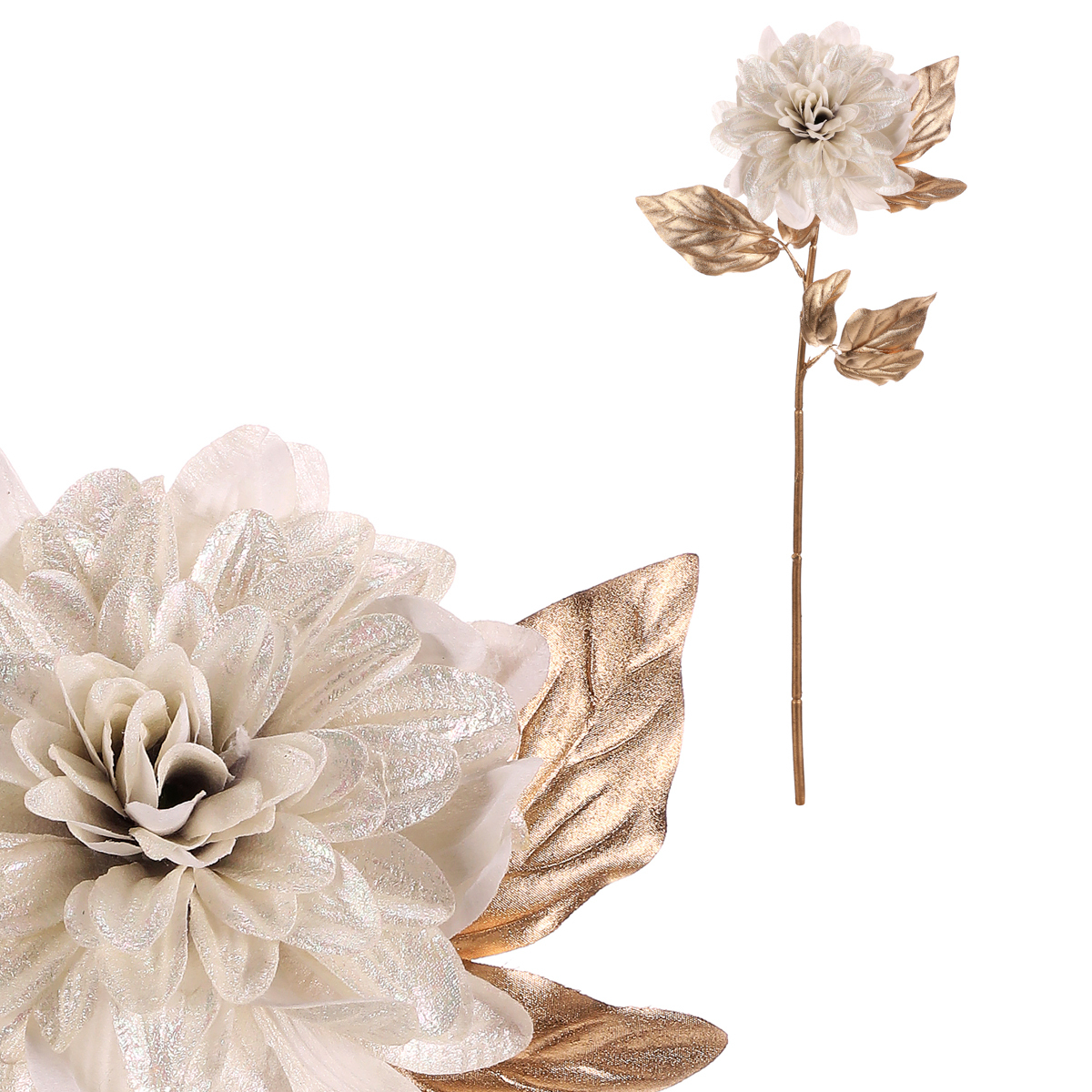 Umělá jiřina s bílými květy a pozlacenými lístky vnese do vánoční výzdoby jemnost a eleganci. Skvěle se hodí pro aranžování svátečních dekorací, kde její třpytivé detaily krásně vyniknou. Trvalá krása, která vydrží a nepotřebuje žádnou zvláštní péči. Můžete tak tuto umělou květinu v netradičním barevném pojetí používat pro aranžování i v dalších sezónách.