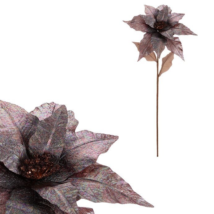 Umělá vánoční růže s hnědým květem zdobeným drobnými třpytkami vnese do sváteční výzdoby nádech elegance a jemnosti. Krásně se hodí do vánočních výzdob, kde její zářivý vzhled dokonale vynikne a nikdy neuvadne.