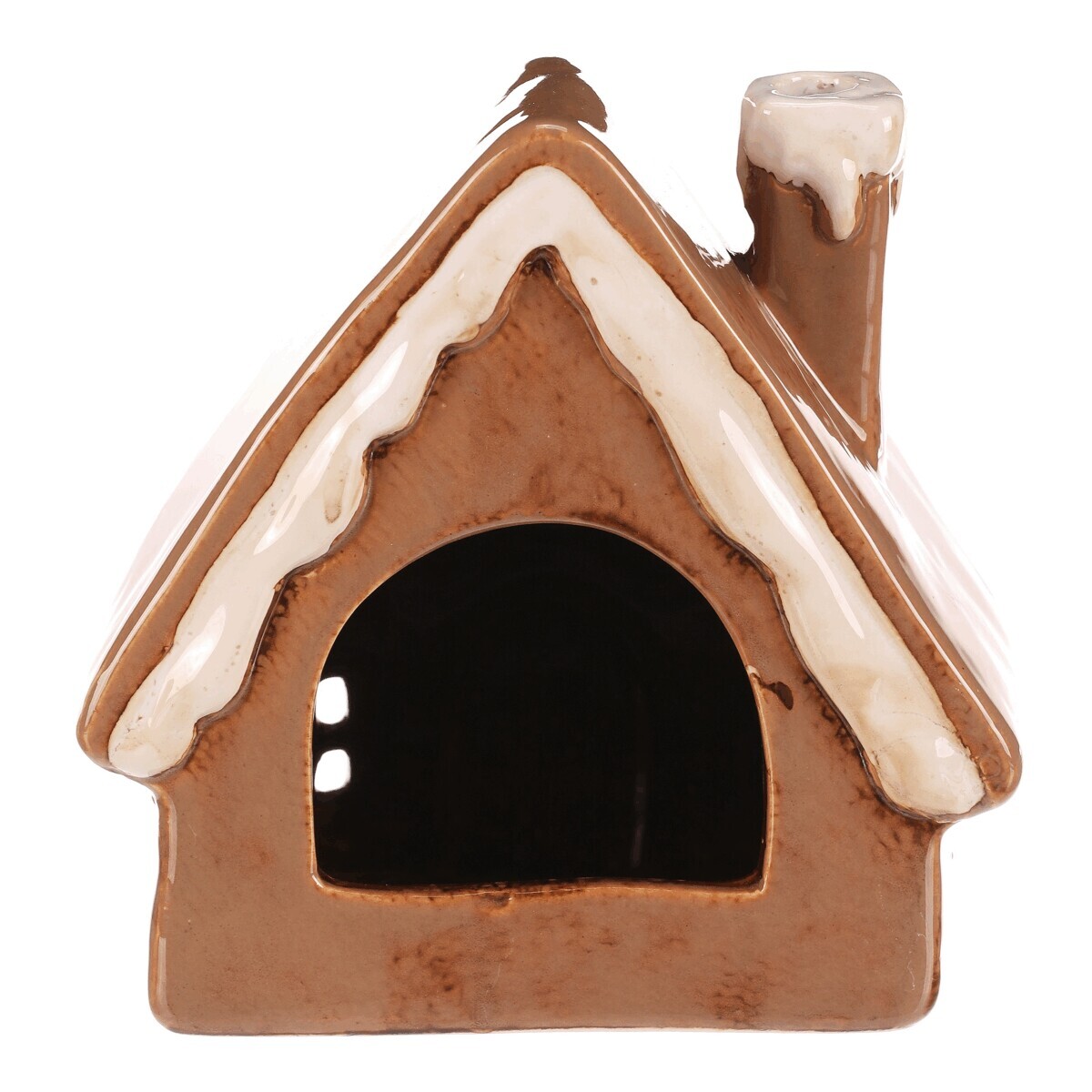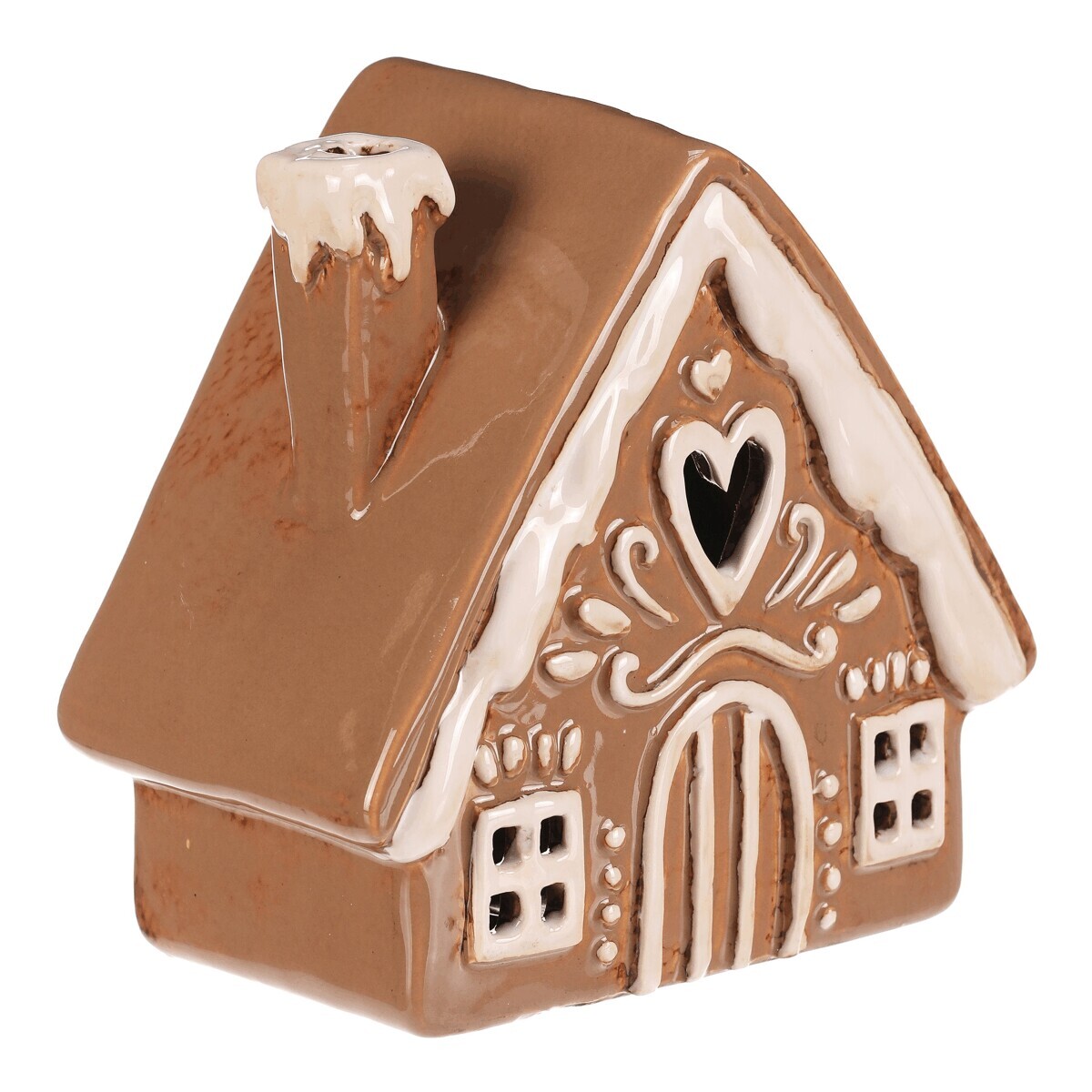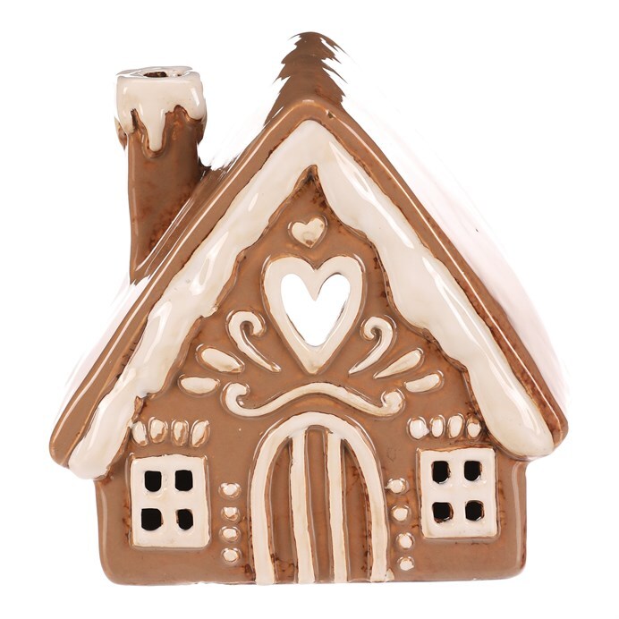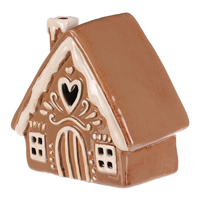 Keramický domeček v béžovém odstínu, který vypadá jako z perníku, bude perfektní dekorací pro podzimní čas. Je zdobený bílou polevou a uvnitř je prostor pro vložení čajové svíčky. Po jejím rozsvícení se rozzáří světlo skrze otvory v okénkách čímž navodíte neodolatelnou atmosféru.