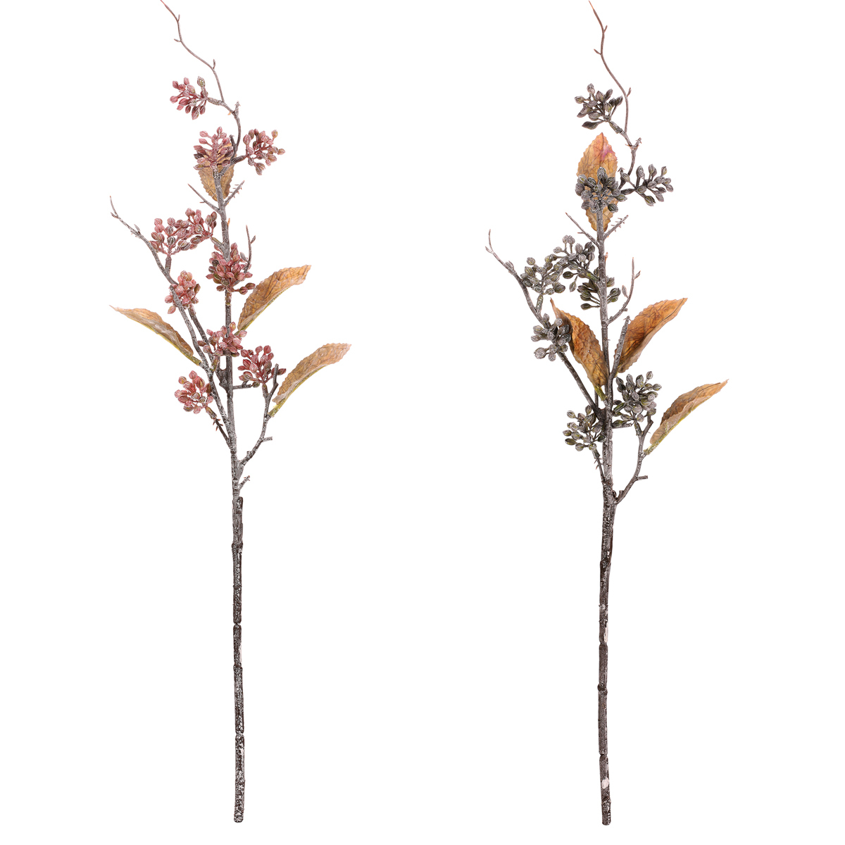 Umělá větev s bobulemi ve dvou variantách, a to s růžovými nebo modrými plody, je trvalou přízdobou, která nikdy neuvadne ani neopadá. Skvěle se svým stylem hodí pro podzimní výzdobu a díky své odolnosti ji můžete používat opakovaně nebo jako součást trvalých květinových aranží.