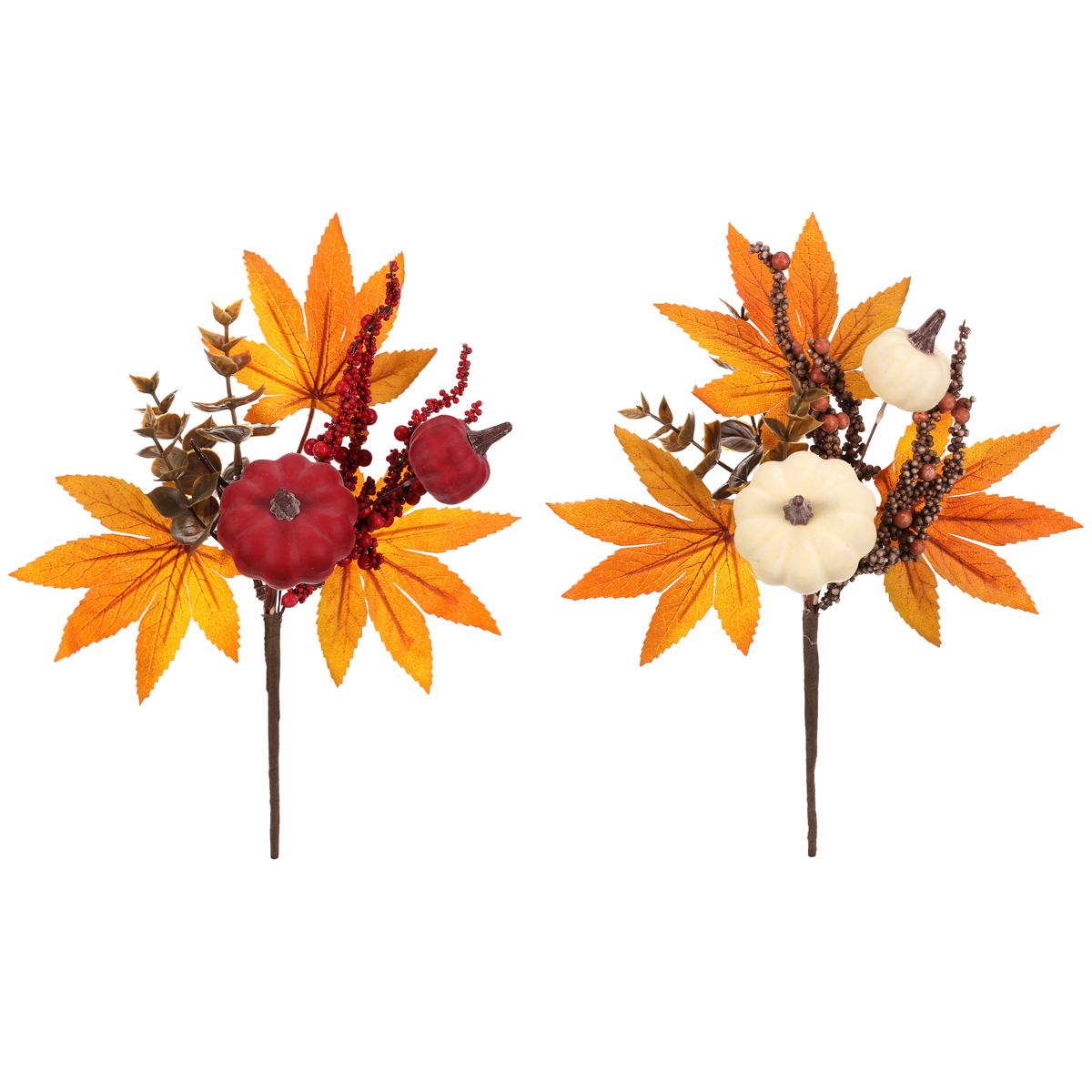 Tato umělá větev je zdobená dýněmi, bobulemi, listím a drobnými trsy v barvách podzimu – oranžových, červených, hnědých a béžových odstínech. Skvělá trvalá ozdoba, která vydrží napořád a přinese do vašeho interiéru dokonalé oživení inspirované právě podzimní přírodou. K dispozici ji máme ve dvou odlišných variantách, přičemž cena je uvedená za 1 kus.