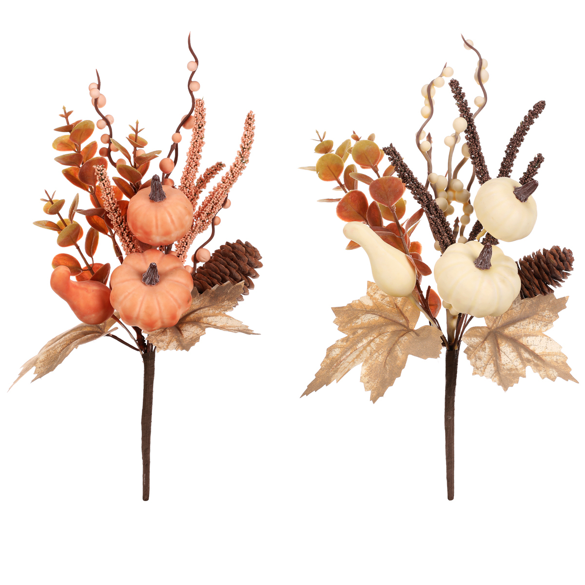 Tato umělá větev je zdobená dýněmi, bobulemi, listím, šiškami a drobnými trsy v barvách podzimu – oranžových, béžových, hnědých a dalších podobných odstínech. Skvělá trvalá ozdoba, která vydrží napořád a přinese do vašeho interiéru dokonalé oživení inspirované právě podzimní přírodou. K dispozici ji máme ve dvou odlišných variantách, přičemž cena je uvedená za 1 kus.