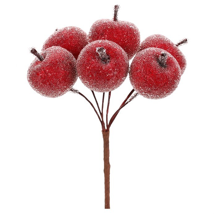 Tento mini umělý trs jablíček je skvostnou přízdobou, která přináší zimní atmosféru přímo do vašeho domova. Ojíněný vzhled napodobující námrazu dává těmto červeným jablíčkům nádherný, zimní nádech, ideální pro vánoční aranžování. Skvěle se hodí do věnců, dekorací na stůl, nebo jako doplněk do vánočních květinových aranžmá. Dodá vašemu prostoru kouzelný a mrazivý efekt, který rozzáří každé sváteční chvíle.