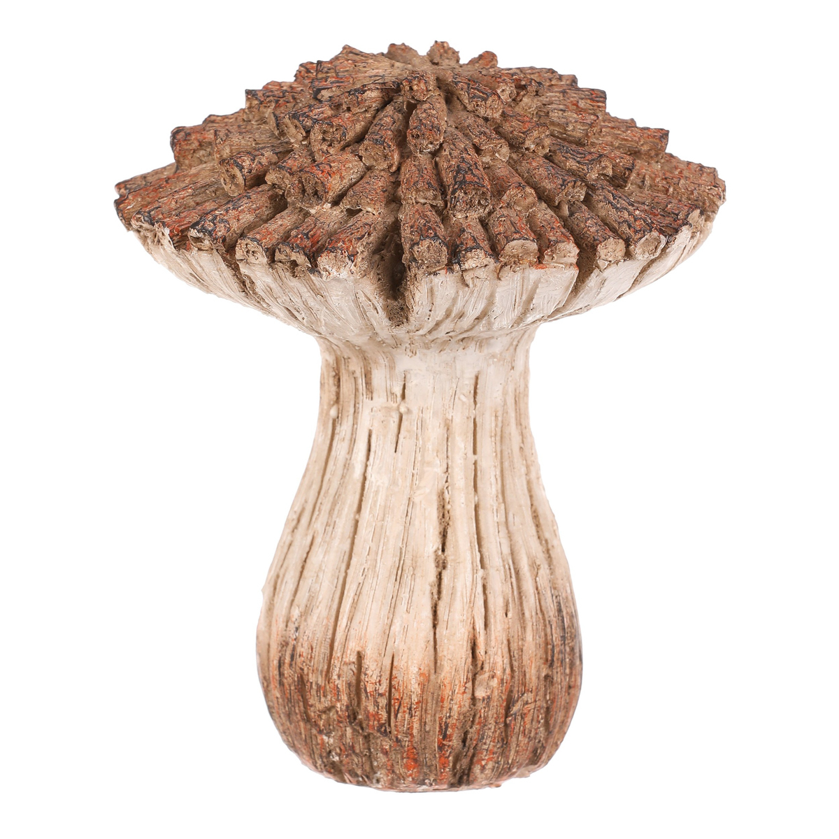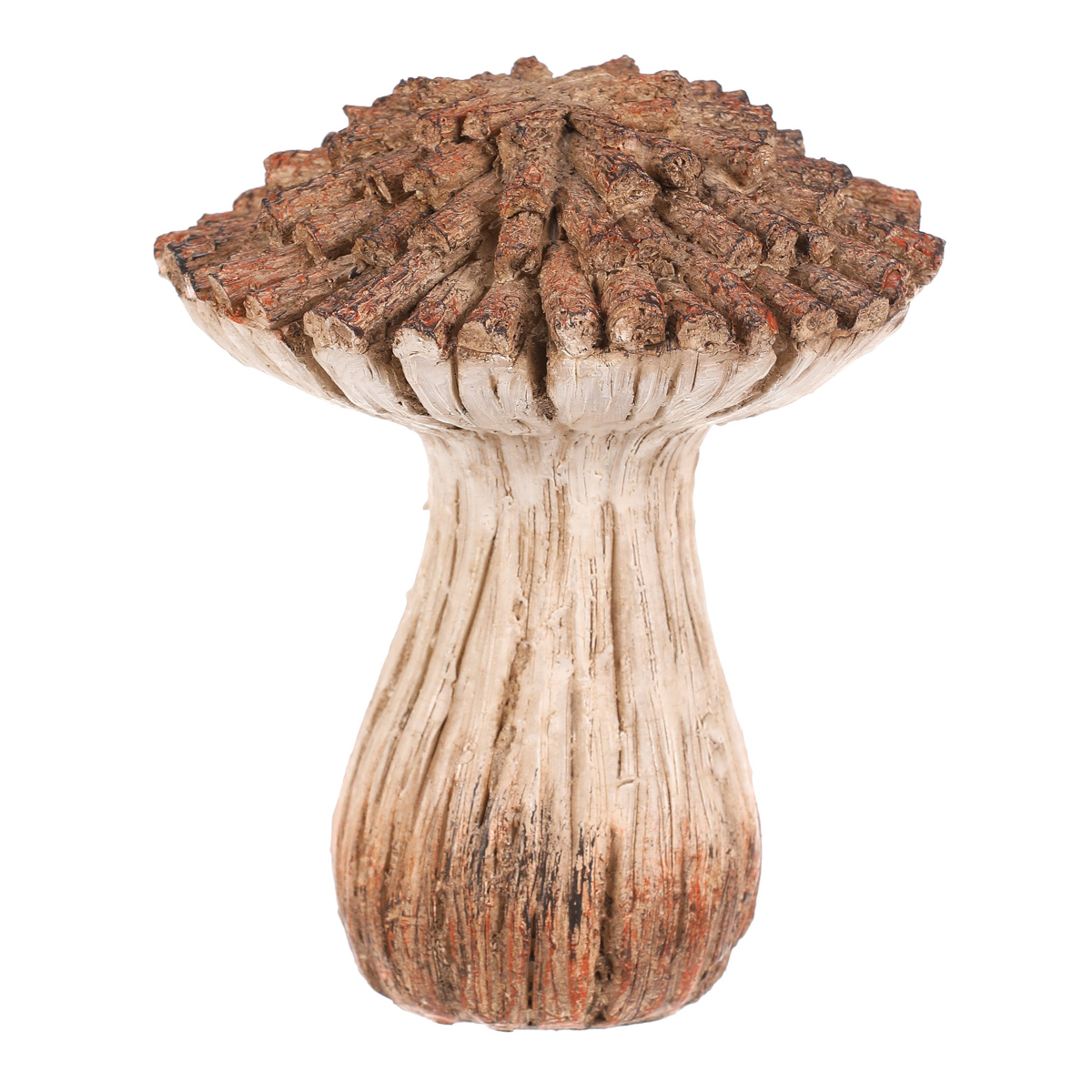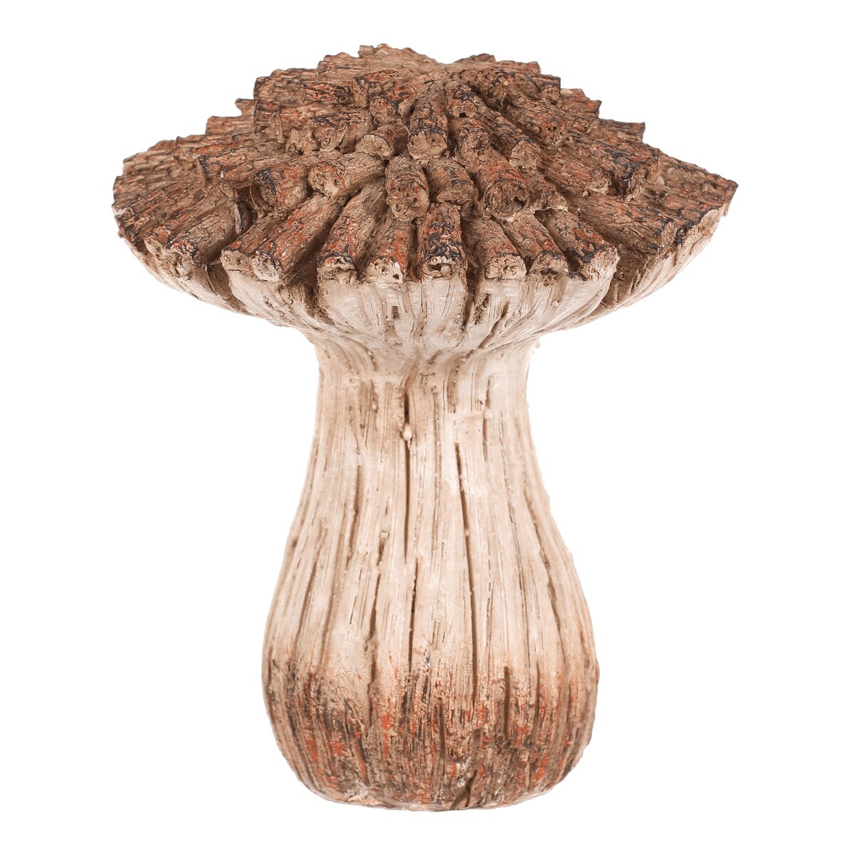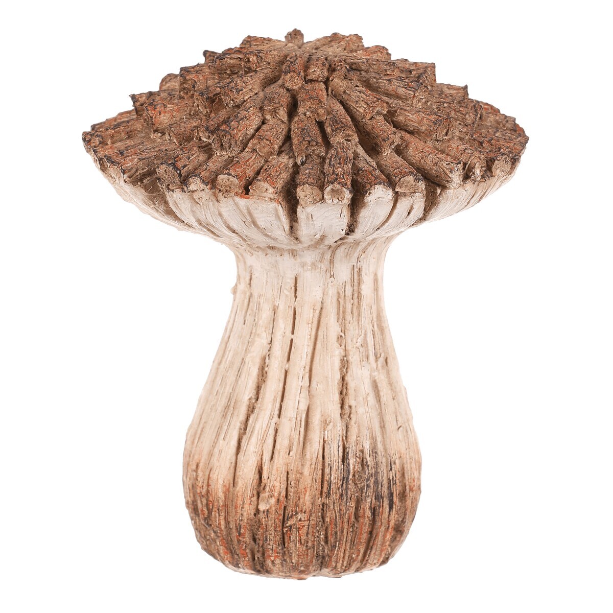 Zahradní dekorace v podobě houby z polyresinu bude skvělou volbou pro vytvoření nádherného lesního zákoutí. Tato houba svým vzhledem připomíná dekoraci vyrobenou ze dřeva a větviček v béžovo-hnědých odstínech. Klobouk je vytvořen jakoby z poskládaných kousků nasekaných dřívek.