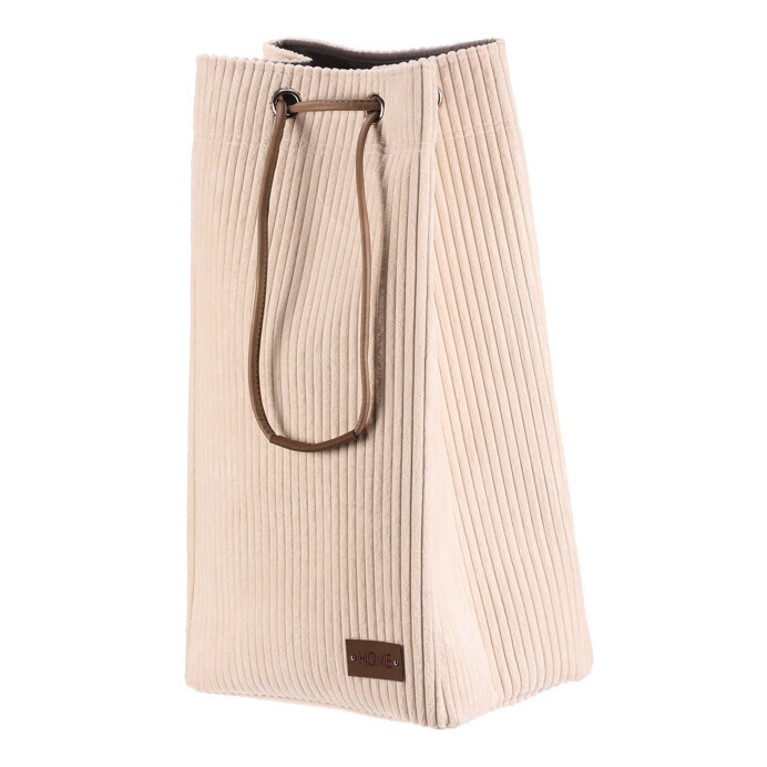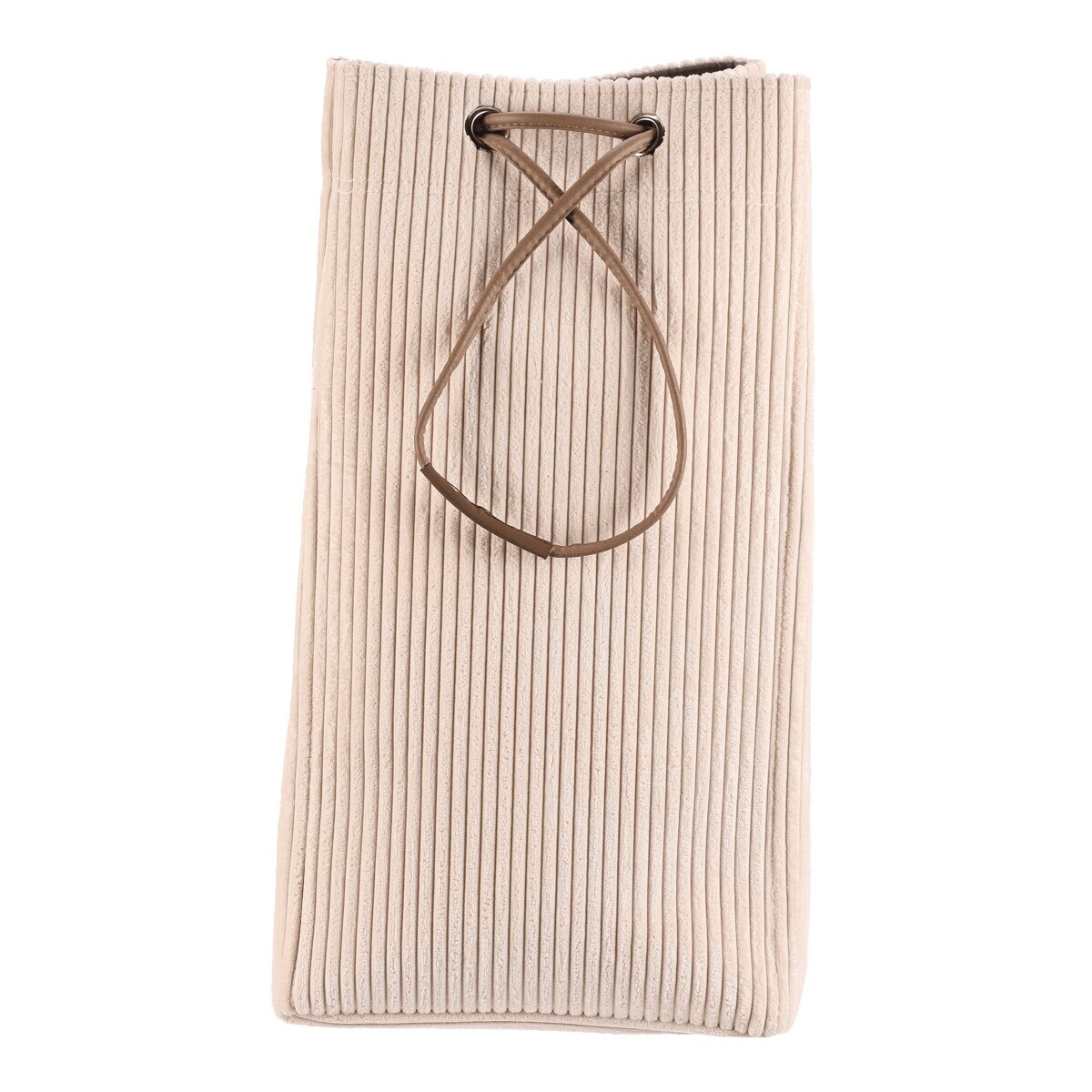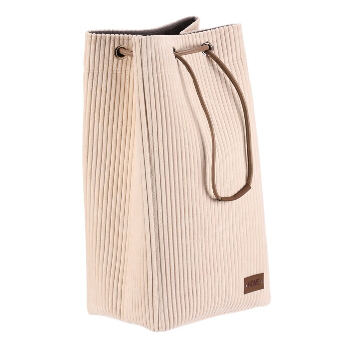 Stylový látkový koš na prádlo v podobě vaku z jemného manšestru zaujme elegantním pruhovaným vzhledem a příjemným materiálem na dotek. Díky praktickému stahování se snadno uzavírá a udrží obsah hezky skrytý. Skvělý doplněk do ložnice, koupelny nebo šatny, který spojuje funkčnost s moderním designem.
