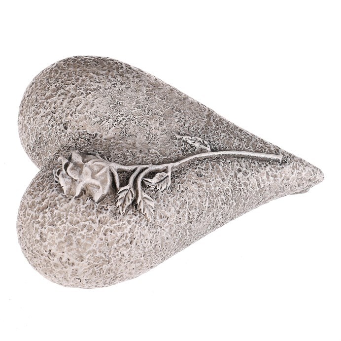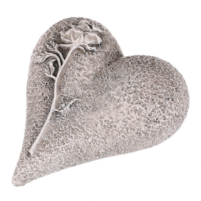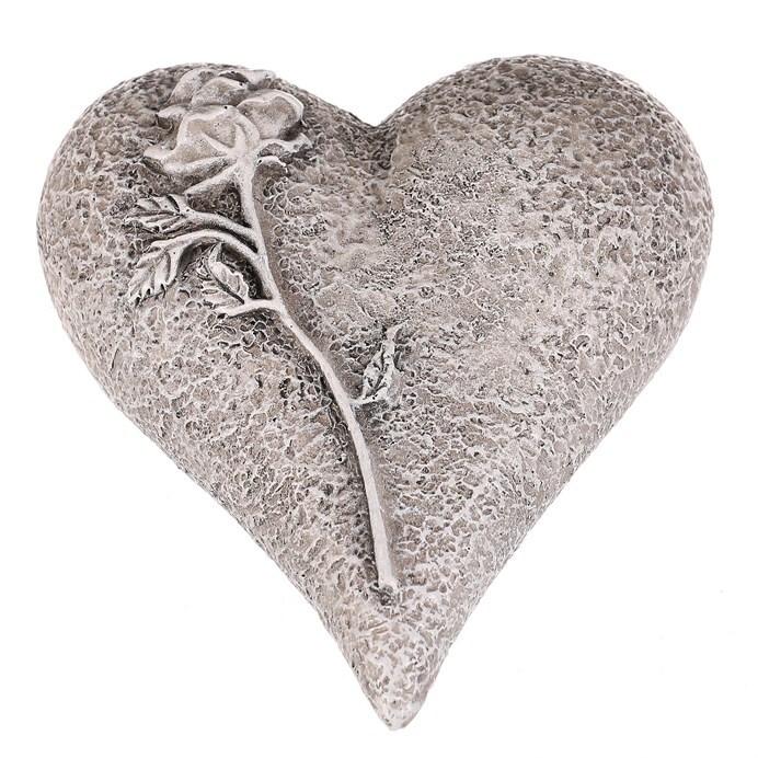 Decentní pietní dekorace ve tvaru srdce s reliéfem růže je symbolem úcty a vzpomínky. Šedá neutrální barva působí vkusně a důstojně. Vhodná pro výzdobu hřbitovních a vzpomínkových míst, kde vytvoří patřičnou atmosféru.