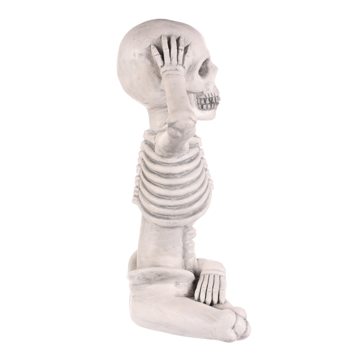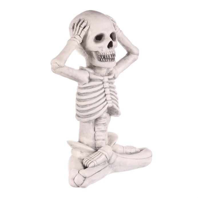 Tento kostlivec z magnesia je perfektní halloweenská dekorace, která zaujme na první pohled! Je v pozici tureckého sedu, drží se za hlavu, a díky LED osvětlení, se mu po rozsvícení rozzáří oči, jako by se chystal vás vyděsit. Nemusíte se ho ale bát, naopak, jeho výraz a póza z něj dělají spíš legračního společníka, který dodá vaší výzdobě tu správnou dávku tajemna i humoru.