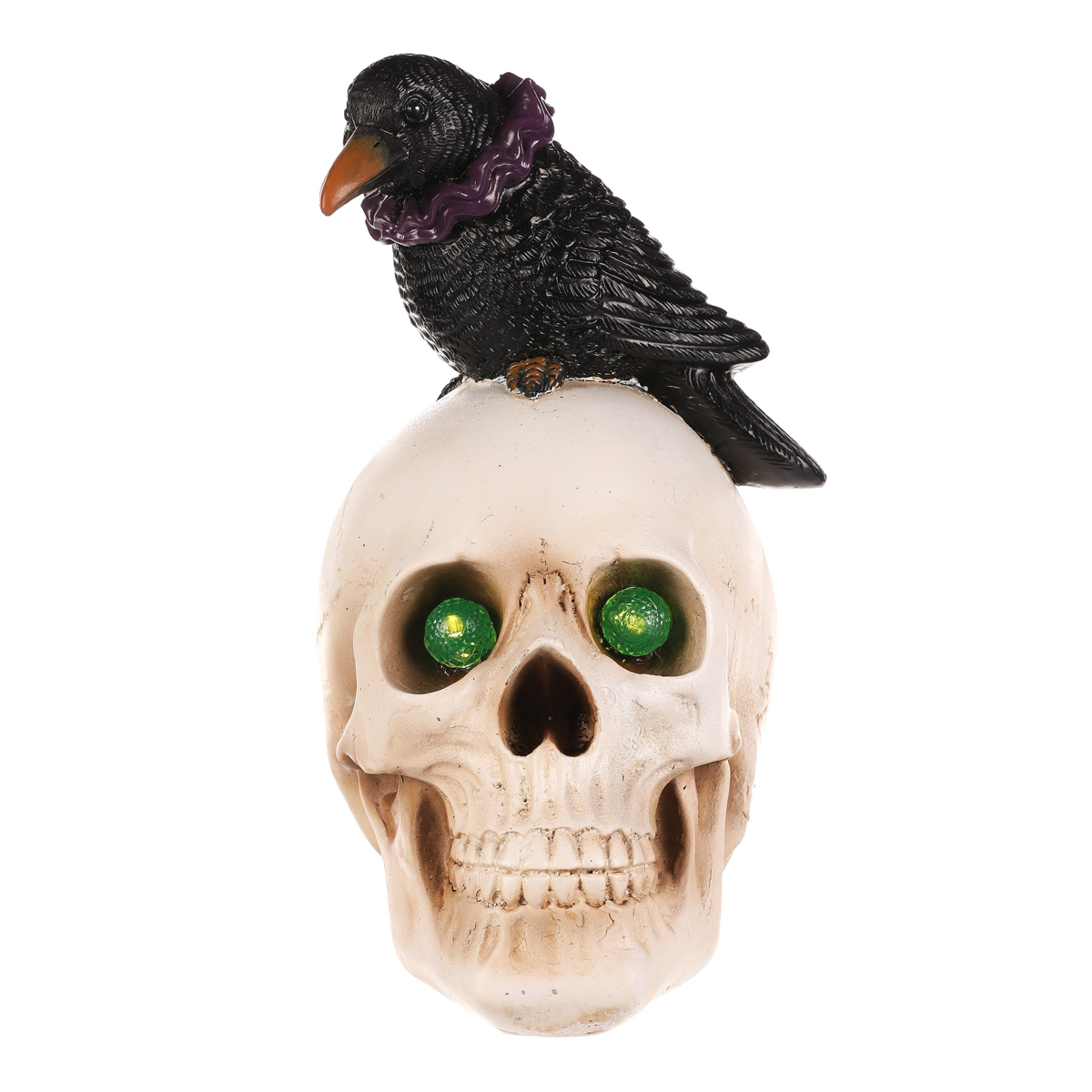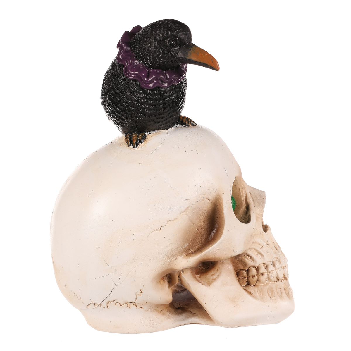 Lebka s havranem je dekorace ideální pro Halloween, která vnese do vašeho prostoru pravou tajemnou atmosféru. Lebka v přirozené barvě a černý havran vytvářejí dokonalý strašidelný efekt, který umocňuje LED osvětlení se svítícíma očima. Ideální volba pro všechny, kteří chtějí svůj domov či jeho okolí, proměnit v ponurou a mystickou scénu pozdního podzimu.