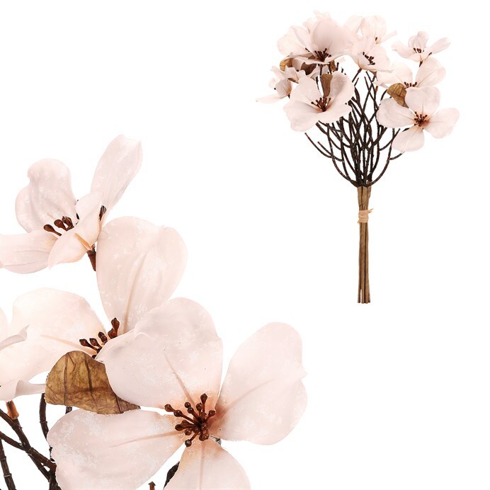 Magnolie, umělá řezaná květina se 6 větvičkami ve svazku, zaujme svou jemnou bílou barvou květů. Tento svazek, typicky jarní květeny ve vánočním stylu, je ideální pro vytvoření útulné sváteční atmosféry. Můžete ji nechat vyniknout samostatně v krásné váze, nebo ji zakomponovat mezi další květiny, rostliny a přízdoby, čímž dokonale oživíte váš interiér.