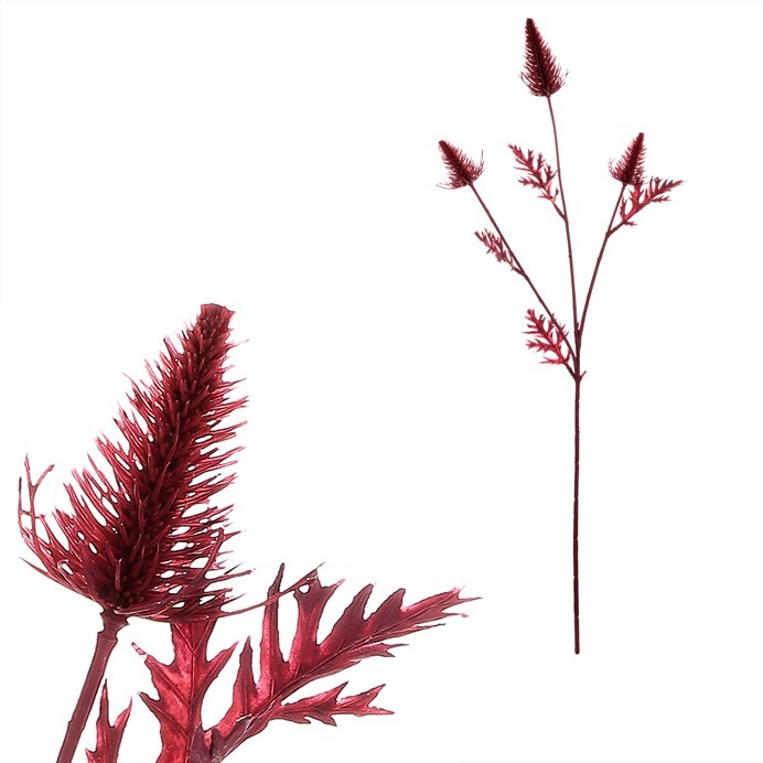 Umělý kvetoucí bodlák v tmavě červené barvě je perfektní volbou pro podzimní dekorace. Tento květ na stonku dodá aranžmá přírodní nádech a vytváří teplou a příjemnou atmosféru typickou pro podzimní období.