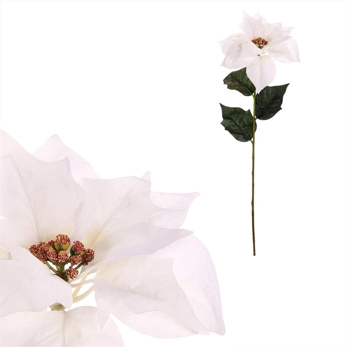 Umělá vánoční růže s bílým květem a listy je dokonalým symbolem Vánoc. Tento elegantní květ přináší do vašich svátečních dekorací klid a jemnost, ideální pro vytvoření vánoční atmosféry plné pohody a svátečního kouzla.