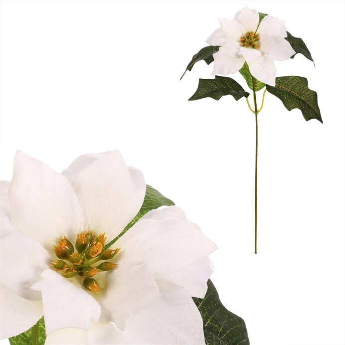 Umělá vánoční růže s bílým květem a listy přináší do vašich dekorací eleganci a čistotu. Tento květ je perfektní pro vytvoření jemné a klidné vánoční atmosféry, která bude ozdobou každého interiéru.