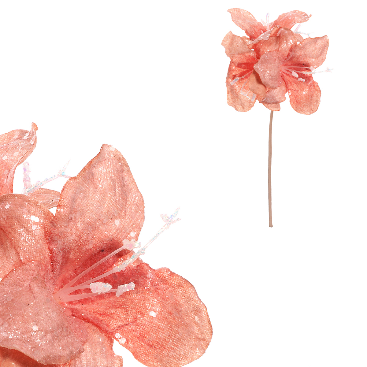 Elegantní umělý amarylis se třemi květy na stonku vynikne v každém interiéru. Jemná cappuccino barva doplněná třpytkami dodává květině nádech luxusu. Perfektní volba pro zimní dekorace nebo slavnostní aranžmá.