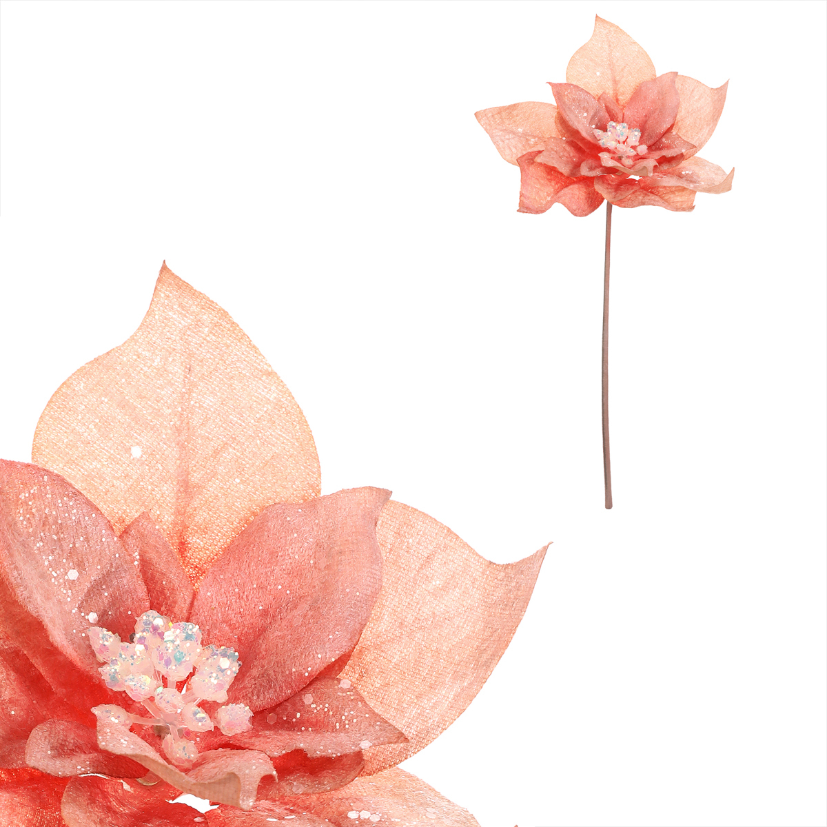 Umělá vánoční růže v odstínu cappuccino s jemnými třpytkami přidá vašim dekoracím styl a originalitu. Tento elegantní květ na stonku je skvělou volbou pro zimní aranžmá i sváteční výzdobu.