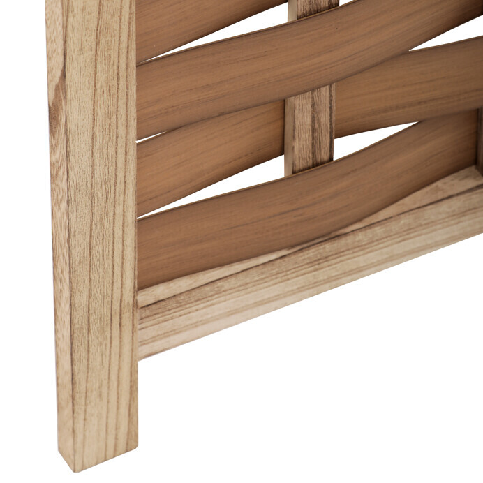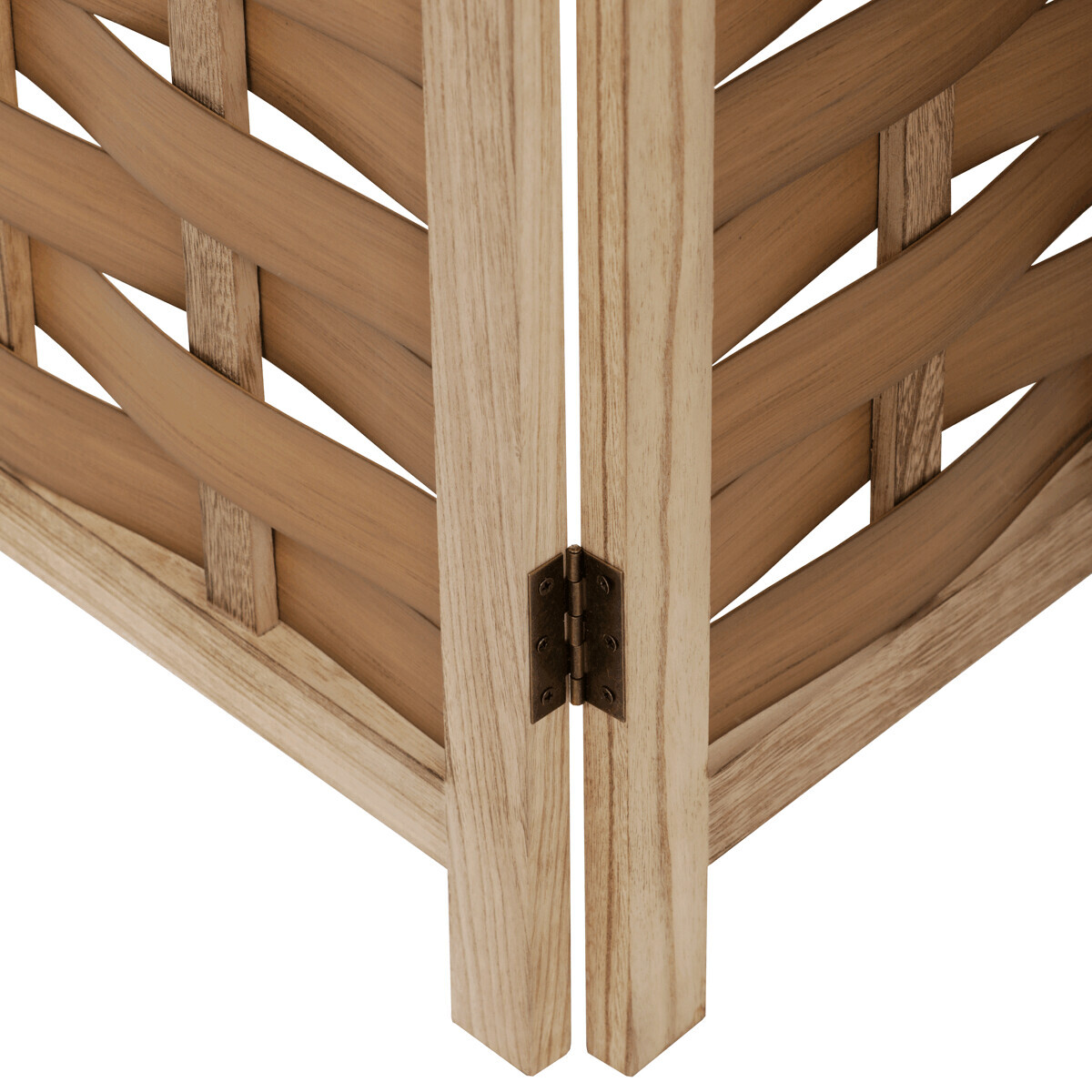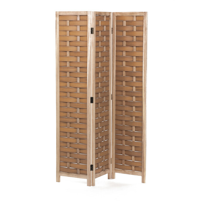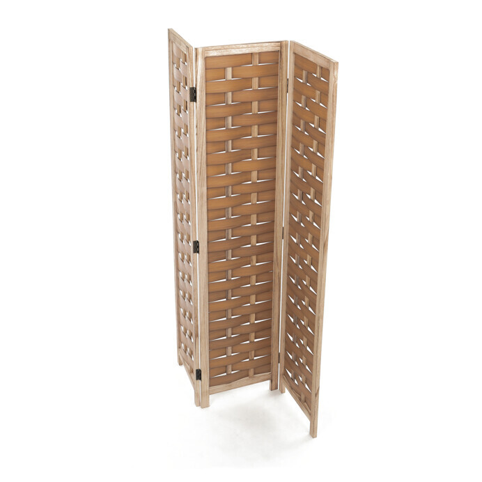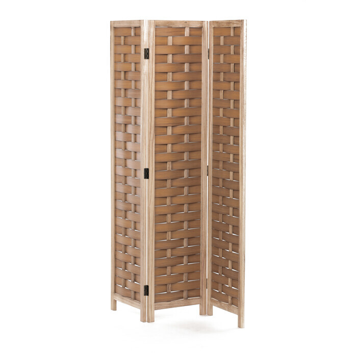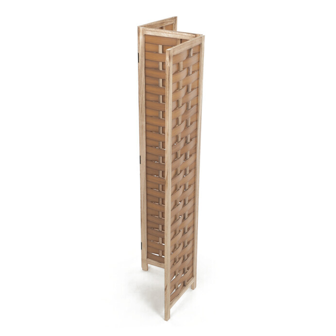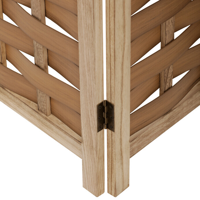 Třídílný paraván vyrobený z masivního smrkového dřeva v přírodním odstínu nabízí praktické řešení pro rozdělení prostoru či vytvoření soukromí. Jeho pevné rámy jsou doplněny propletenými PVC pásky, které vytvářejí zajímavý vzor a zároveň propouštějí světlo. Díky skládací konstrukci s kovovými panty je možné paraván snadno přemístit a přizpůsobit podle potřeby. Přírodní povrchová úprava zdůrazňuje texturu dřeva a umožňuje snadnou údržbu. Rozměry jednotlivých dílů jsou navrženy tak, aby paraván stabilně stál a zároveň byl dostatečně lehký pro manipulaci. Rozměr jednoho dílu 40x171cm.