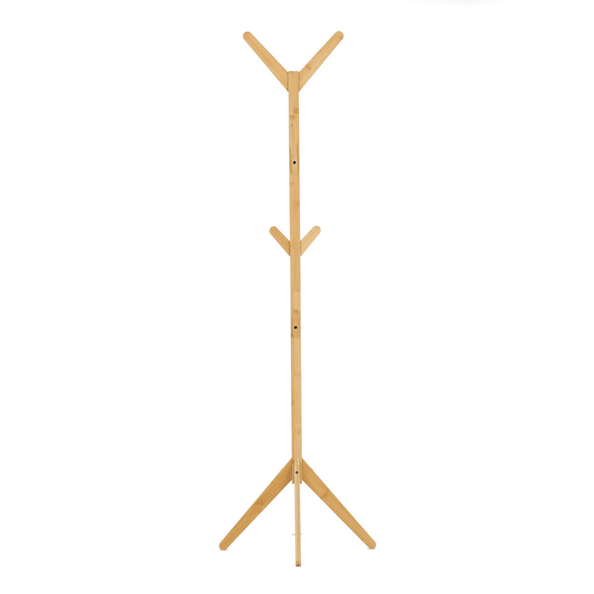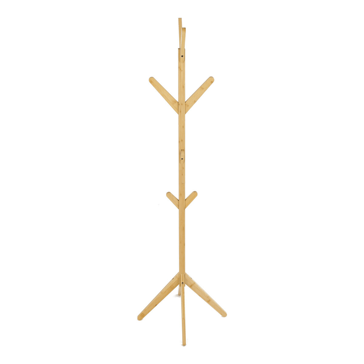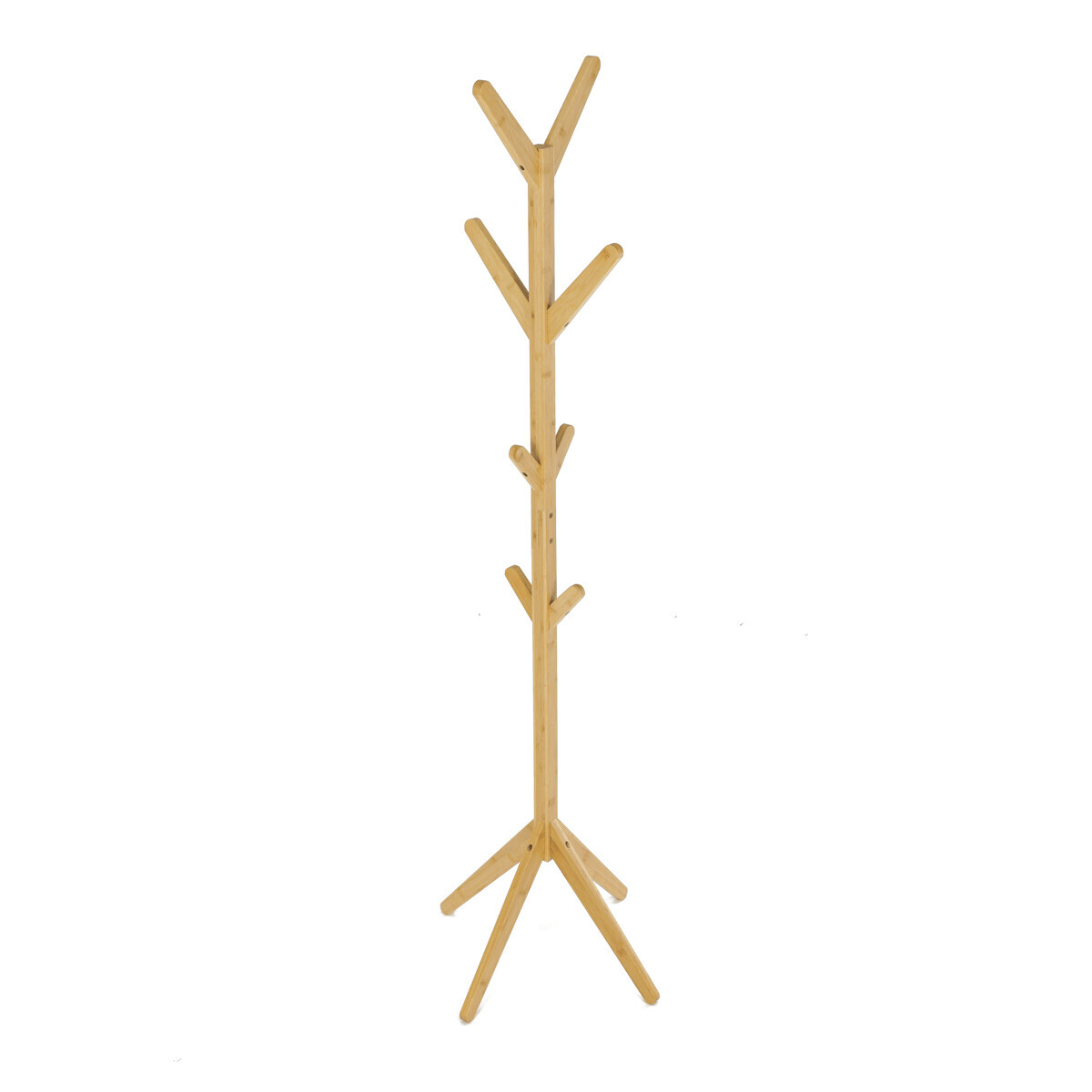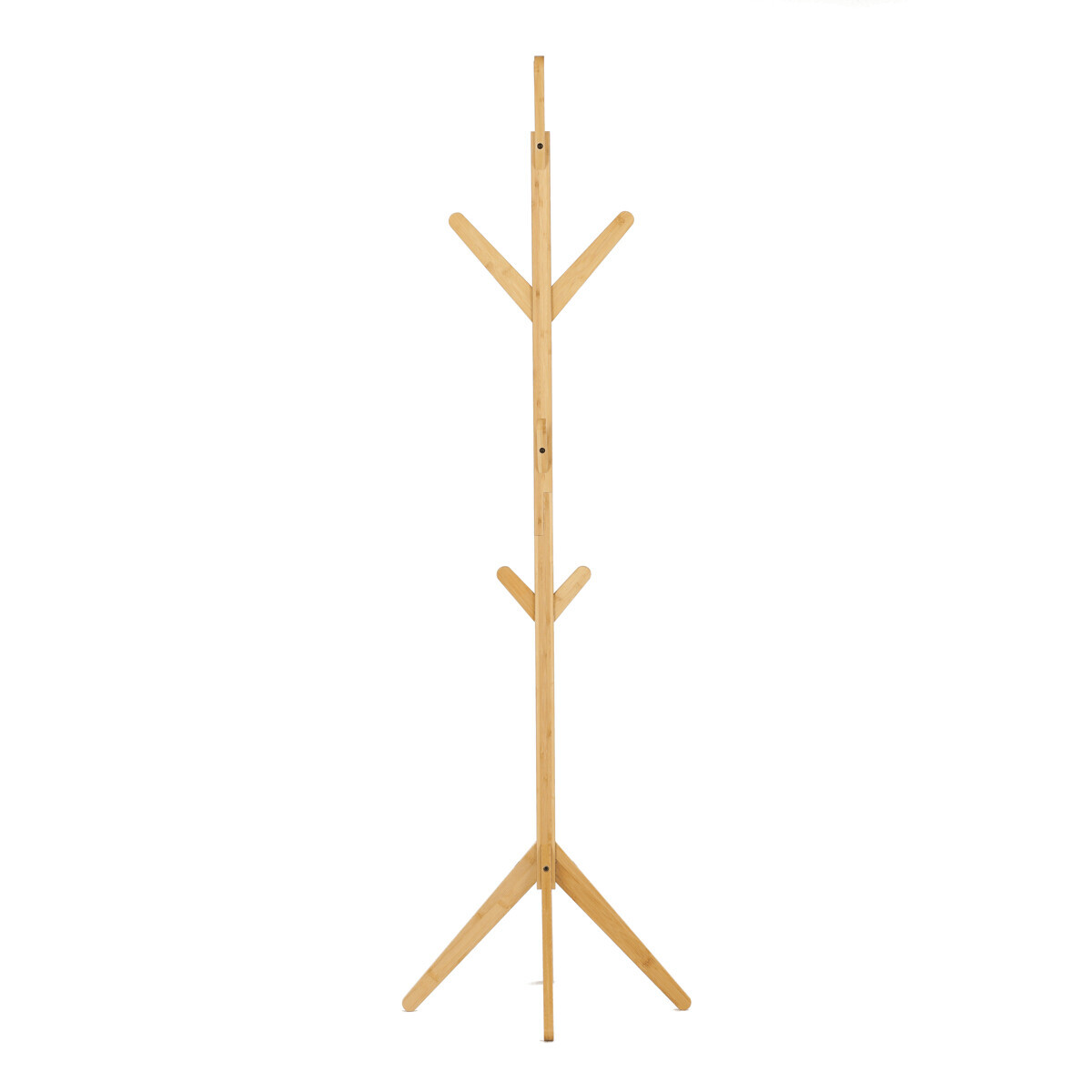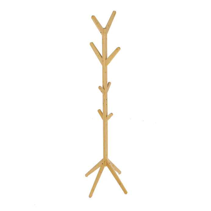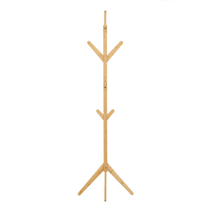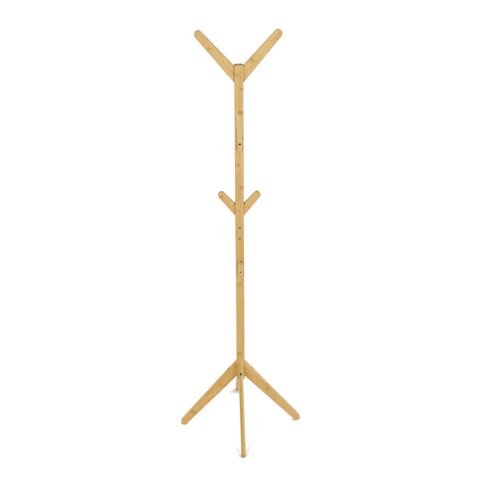 Stojanový věšák z masivního bambusu v přírodním odstínu nabízí praktické a estetické řešení pro ukládání oděvů a doplňků. Jeho pevné provedení z bambusových prutů zajišťuje stabilitu a dlouhou životnost. Věšák je vybaven osmi háčky rozmístěnými po celé výšce, které umožňují efektivní rozložení zavěšených věcí. Díky výšce 177 cm je vhodný do předsíní, kanceláří i komerčních prostor. Přírodní textura bambusu dodává prostoru příjemný a svěží vzhled.