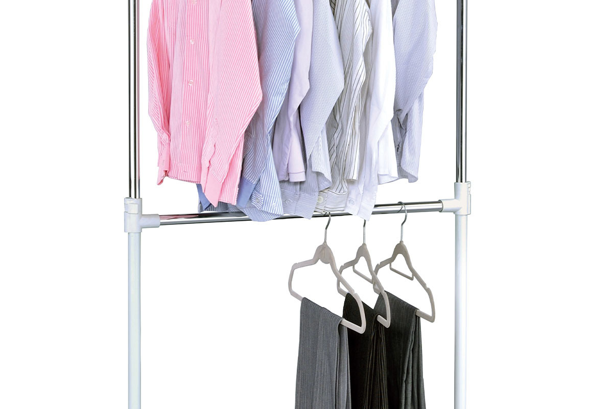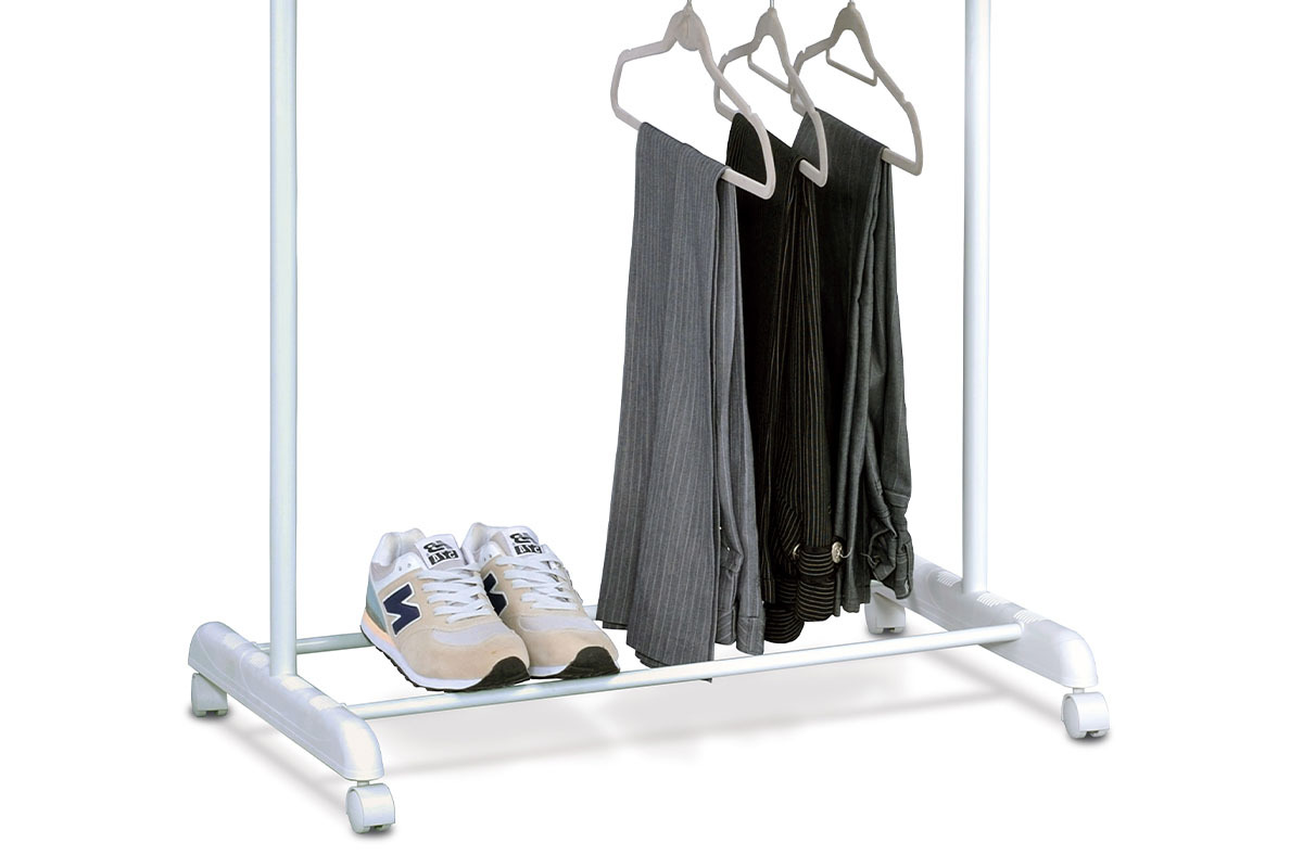 Dvojramenný stojan na šaty v bílé barvě kombinuje kovové a plastové prvky s chromovanými detaily pro moderní vzhled a odolnost. Konstrukce umožňuje nastavení výšky, což zajišťuje flexibilitu při zavěšení různých typů oděvů, od košil až po kalhoty. Spodní odkladač nabízí praktický prostor pro uložení obuvi nebo dalších doplňků, čímž pomáhá udržet pořádek v místnosti. Stabilní základna s kolečky umožňuje snadnou manipulaci a přemístění stojanu podle potřeby. Díky kvalitnímu zpracování a kombinaci materiálů je stojan navržen pro dlouhodobé používání v domácnostech i komerčních prostorách.