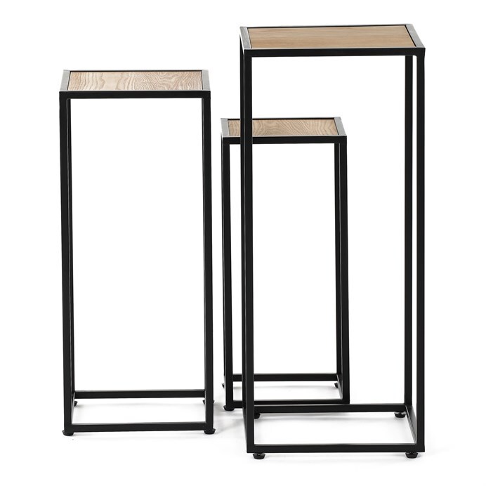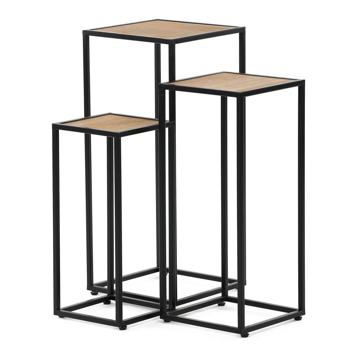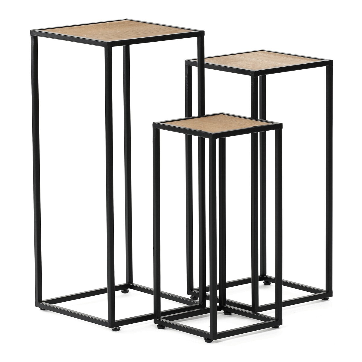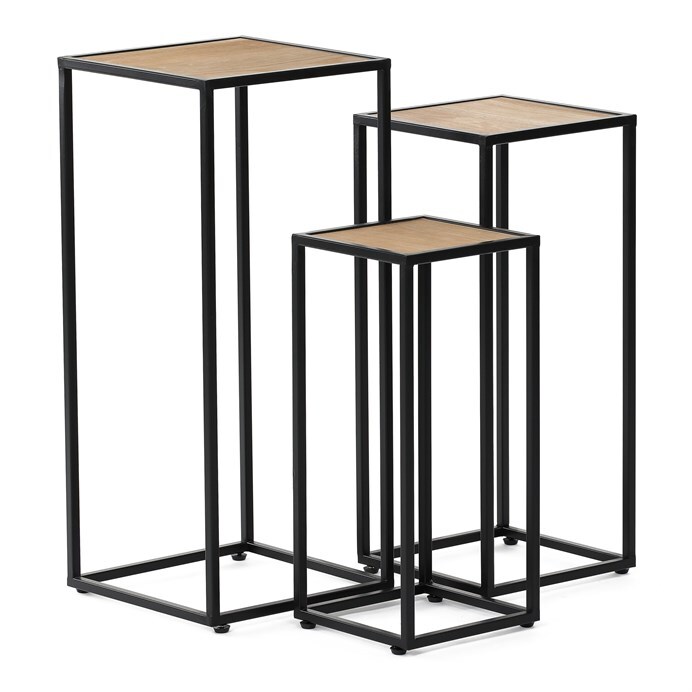 Kovový čtvercový stojan s deskou z jedlového dřeva je určen pro vystavení květin či jiných dekorací do výšky. Sada tři velikostí naskýtá možnost výběru v závislosti na velikosti konstrukce a rozdílné výšce. Čtvercový tvar umožňuje využít i efektivně rohu místnosti, kde získá na stabilitě. Využijte vyvýšené plochy a nechte zviditelnit rostliny nebo okrasné předměty zde vystavené. Dodáte tím vašim dekoracím nový rozměr a dokonale je zviditelníte.