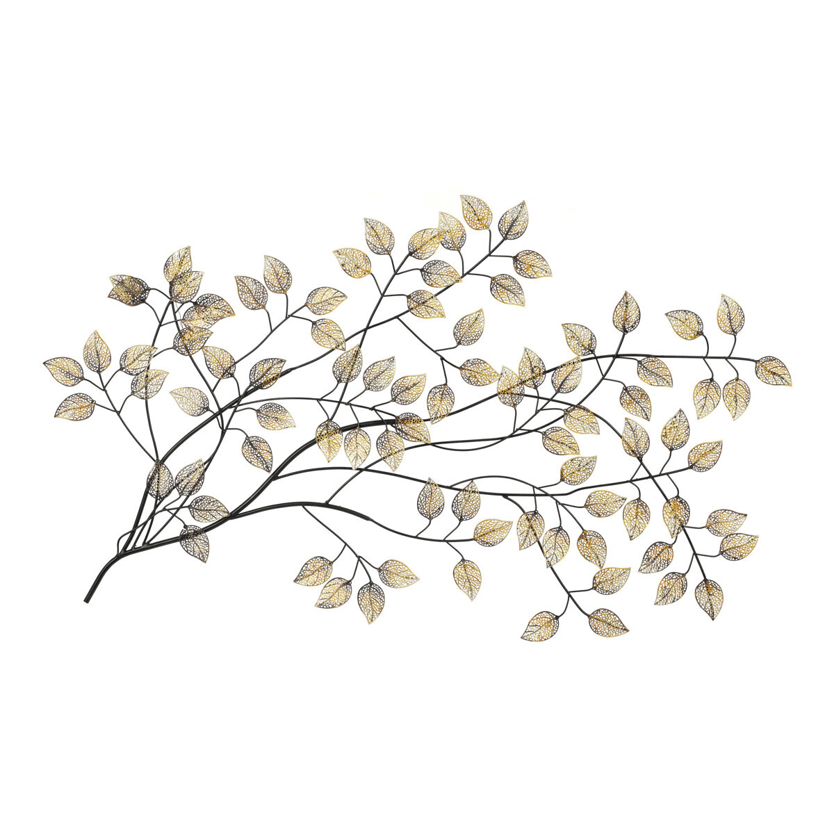 Nástěnná dekorace ve tvaru stromu je vyrobena z kovu v elegantním zlatém provedení, které dodává prostoru jemný a stylový akcent. Jemné špičaté lístky s propracovanou strukturou vytvářejí zajímavý vizuální efekt a zároveň působí lehce a vzdušně. Dekorace je vhodná pro zavěšení na stěnu v obývacím pokoji, chodbě či kanceláři, kde podtrhne moderní i klasický interiér. Svým rozměrem a designem se stane výrazným doplňkem, který oživí jakýkoliv prostor.