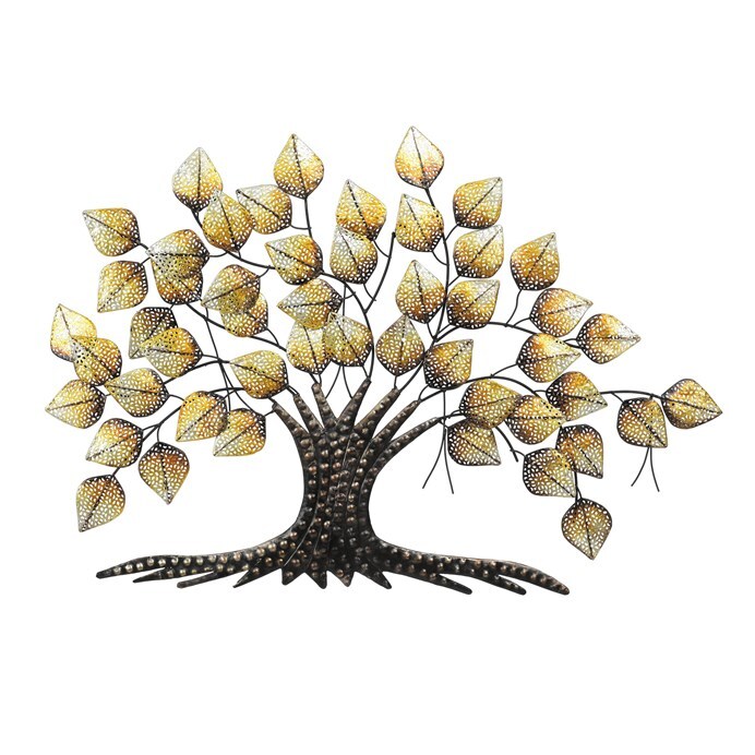 Nástěnná dekorace ve tvaru stromu je vyrobena z kovu s povrchovou úpravou v zlaté barvě, která dodává prostoru teplý a luxusní vzhled. Špičaté lístky jsou detailně zpracované a vytvářejí zajímavou texturu a hloubku, díky čemuž dekorace vynikne na jakékoliv stěně. Je vhodná pro zavěšení v obývacím pokoji, chodbě nebo kanceláři, kde podtrhne styl interiéru a přinese přírodní motiv v moderním provedení. Kovové tělo zajišťuje pevnost a stabilitu celé dekorace. Rozměry a tvar umožňují snadné umístění i na menší plochy.