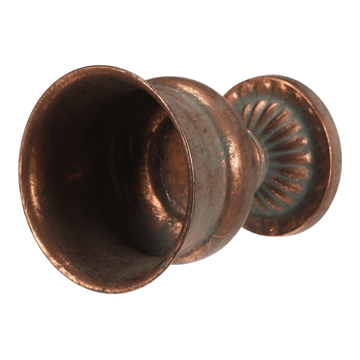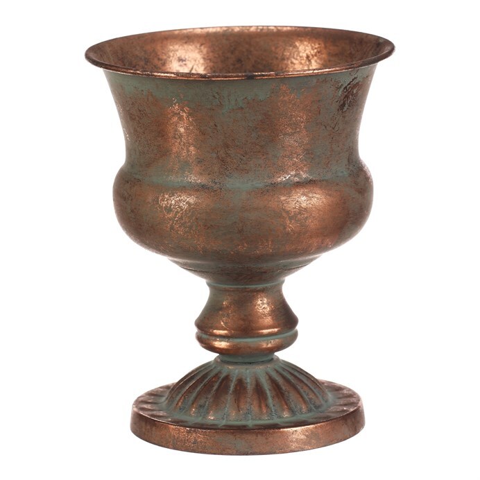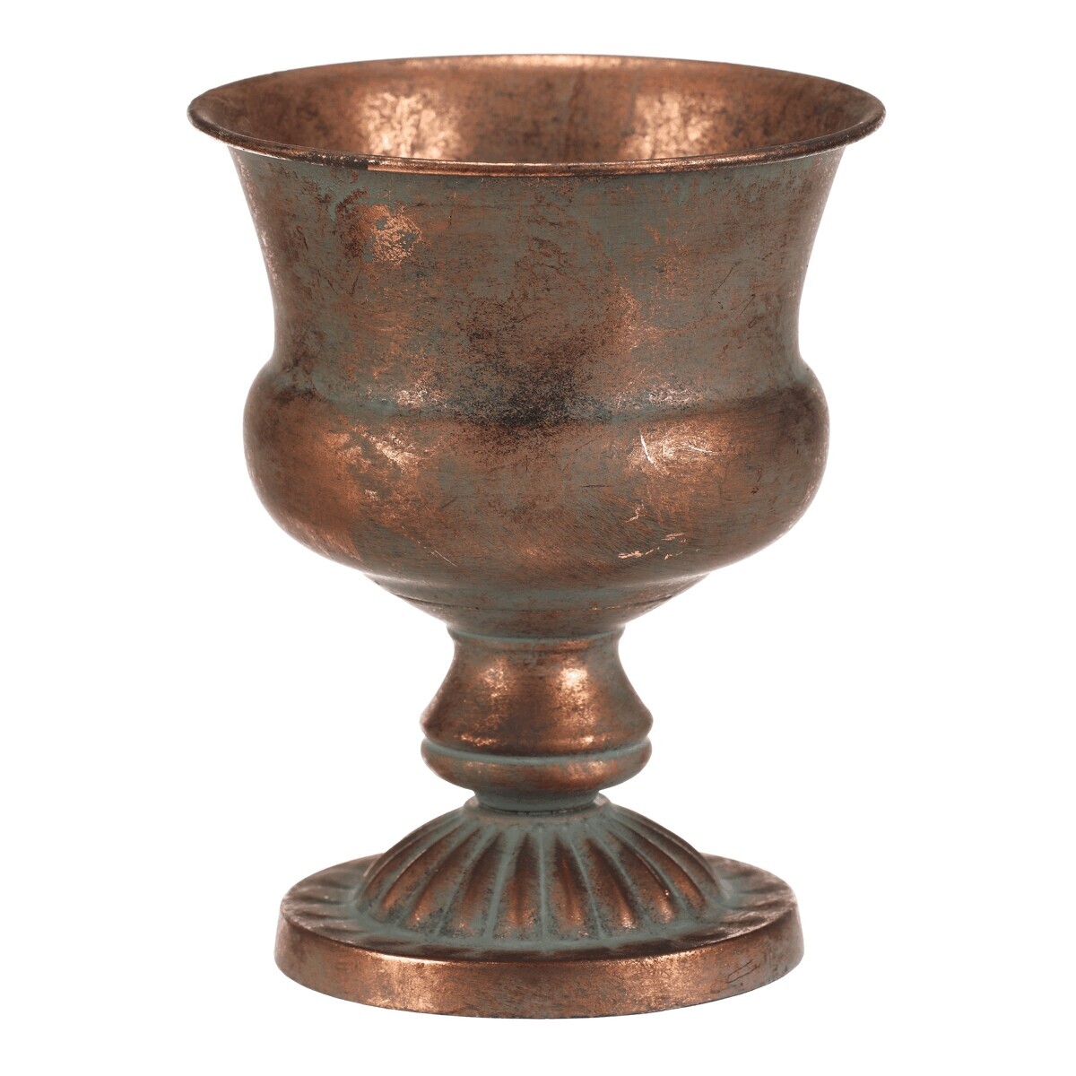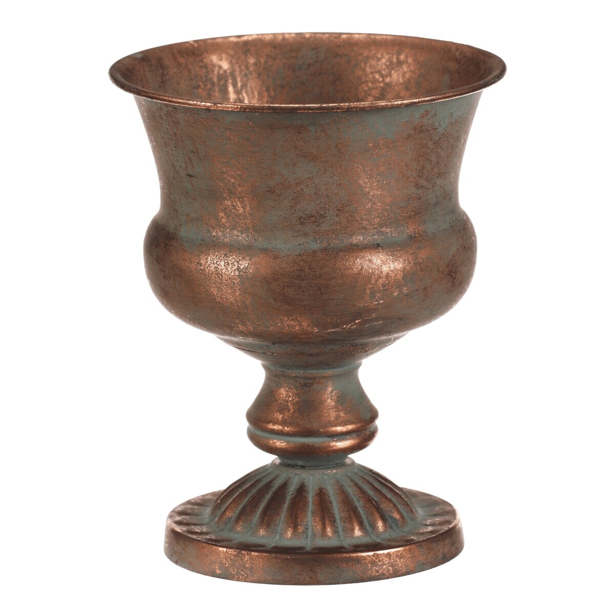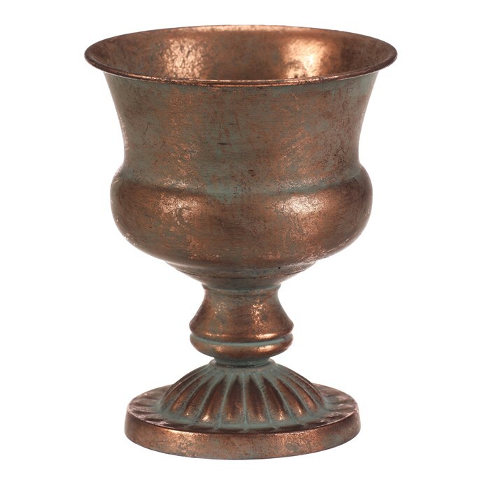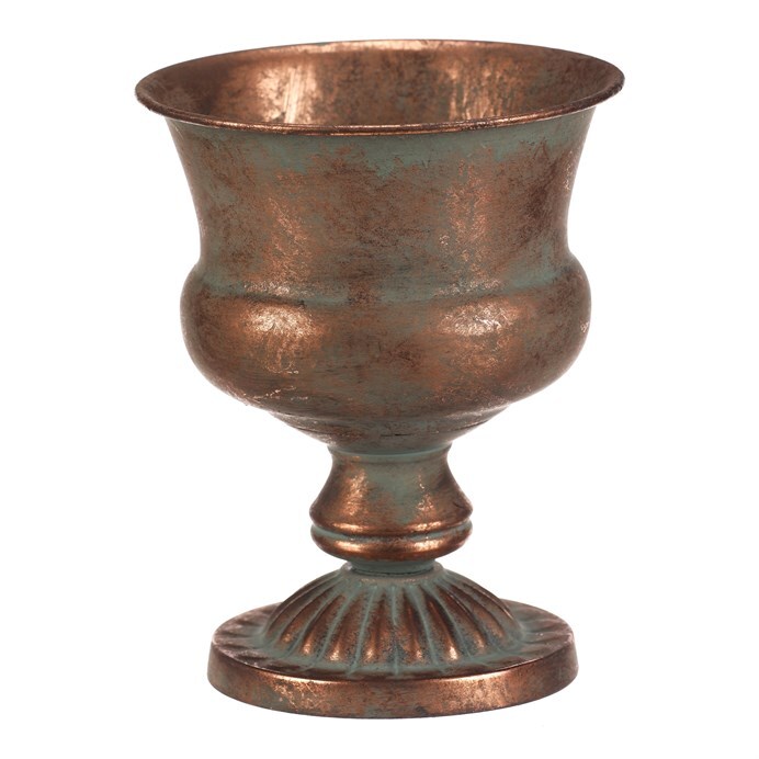 Kovová číše v měděném odstínu představuje stylový aranžovací doplněk vhodný pro různé dekorace. Její tvar s rozšířeným horním okrajem a zdobenou základnou vytváří výrazný vizuální efekt, který podtrhuje industriální i vintage atmosféru interiéru. Díky pevné kovové konstrukci je stabilní a navržena pro dlouhou životnost. Číše o výšce 20 cm je ideální pro aranžování sušených květin, svíček nebo jiných dekorativních prvků.